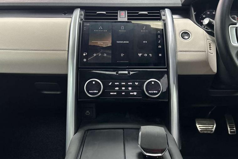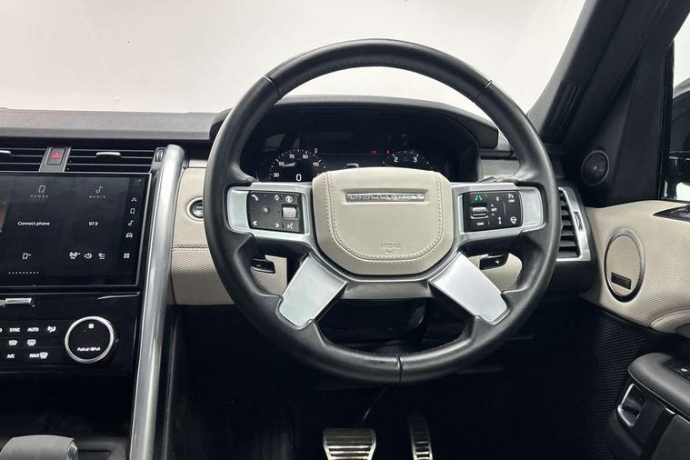 11.4" touchscreen, 3D surround camera, Adaptive cruise control, Android Auto, Apple car play, Blind spot assist, Driver condition monitor, Electric power assisted steering (EPAS), Emergency services call system, Front and rear parking aid, Interactive driver display, Lane keep assist, Power inner tailgate, Power tailgate/boot lid, Push button start, Rear collision monitor, Rear traffic monitor, Remote, Remote boot release, Service interval indicator, Speed proportional steering, Sportshift selector, Stop/start system, Traffic sign recognition with adaptive speed limiter, Trip computer, Wade Sensing, Adaptive dynamics, Dynamic stability control, Electronic air suspension, Front axle open differential, Digital Audio Broadcast radio-DAB, Dynamic volume control, Pivi pro connected, USB/aux input socket, Acoustic laminated windscreen, Animated directional indicators, Auto dimming interior rear view mirror, Automatic headlight levelling, Automatic headlights, Body colour bumpers, Body colour door handles, Centre high mounted stop light, D300 badge, Electric heated/power fold memory door mirrors with approach lights and auto dimming driver side, Electric windows with one touch open/close and anti-trap, Heated rear window, Heated windscreen, LED darkend tail lights, Matrix LED headlights with signature DRL, Narvik black Discovery script, Privacy glass, Puddle lights, Rain sensing windscreen wipers, Rear fog lights, Rear side wing doors, Rear wash/wipe, Trailer stability assist, Variable intermittent wiper, 12V power sockets, 12V USB charging socket in loadspace, 2 seat bench in 3rd row, 3 seat bench in 2nd row, 60/40 electric heated folding rear seats with manual slide and powered recline, centre headrest and armrest, Central hinged twin lidded storage, Configurable cabin lighting, Ebony morzine headlining, Electric adjustable steering column, First and second row door bins, Footwell lights, Front and rear 12V with front USB, Front passenger seat isofix location point, In-facia storage, Isofix child seat preparation for front passenger seat, Leather steering wheel, Loadspace cover, Loadspace Hook, Loadspace light, Lockable glovebox, Lower centre console storage, Luggage tie downs in loadspace, Multi function steering wheel, Overhead lighting console, Premium carpet mats, Rear ISOFIX, Shopping bag hook, Single front passenger seat, Storage glovebox, Sunvisors with illuminated vanity mirrors, Third row storage, Treadplates with metal inserts, Twin front cupholders with cover, USB with 12V socket in centre console, Black exterior pack - Discovery Dynamic SE/HSE, Online pack with data plan - Discovery, 3x3 point rear seatbelts, Anti-lock braking system (ABS), Brake pre-fill technology, Cornering brake control, Curtain airbags, Customer configurable autolock, Driver and passenger airbags, EBD - Electronic brakeforce distribution, Electronic traction control, Emergency brake assist, Emergency braking, ESP, Front side airbags, Gradient acceleration control, Hill descent control, Hill launch assist, Power operated child locks, Rear airbags, Roll stability control, Seat belt reminder, Torque vectoring brake, Tyre pressure monitoring system, Immobiliser, Intrusion sensor, Keyless entry, Locking wheel nuts, Remote central locking, All terrain tyres,