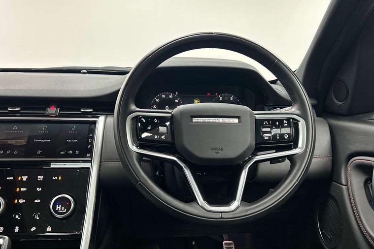 10" touch screen, Adaptive cruise control, Android Auto, Apple CarPlay, Blind spot assist, Clear exit monitor, Driver condition monitor, eCall emergency call system, Front and rear parking aid, InControl remote premium, Lane keep assist, Locking fuel flap, PAS, Pivi Pro connected navigation system with upgraded Infotainment, Powered tailgate/boot lid, Push button start, Rear collision monitor, Rear traffic monitor, Service interval indicator, Traffic sign recognition with adaptive speed limiter, Trip computer, Wade Sensing, All terrain progress control, Coil suspension system, Configurable dynamics, Diesel particulate filter, Dynamic stability control, Efficient Driveline, Terrain Response 2, Bluetooth connectivity including audio streaming, Digital Audio Broadcast radio-DAB, Steering wheel mounted audio controls, 3rd brake light, Automatic headlight levelling, Automatic headlights, Black number plate plinth, Electric front/rear windows, Electric heated/power fold door mirrors with approach lights and auto dimming driver side, Front and rear recovery eyes, Front fog lights, Heated rear window, Heated windscreen including heated washer jets, Illuminated metal front treadplates with R dynamic branding, Privacy glass, R Dynamic badge, Rain sensing windscreen wipers, Rear fog lights, Rear side wing doors, Rear wing door, Rear wiper, 2 seat bench in 3rd row, 3 seat bench in 2nd row, Bright metal pedals, Centre console with armrest, Configurable cabin lighting, Electrically adjustable steering column with memory, Footwell lights, Front and rear grab handles, Front passenger isofix child seat attachment, Front passenger seat, Heated steering wheel, Loadspace cover, Loadspace light, Manual third row seats, Overhead lighting console, Overhead stowage for sunglasses, Rear headrests, Satin chrome gearshift paddles, Sunvisors with illuminated vanity mirrors, Tilt/reach adjustable steering wheel, Black exterior pack - Discovery sport R-Dynamic SE/HSE, Online pack with data plan - Discovery, 3 point seatbelts on all seats, ABS, Brake hold function, Child locks on rear doors, Collision mitigation braking system, Cornering brake control (CBC), Driver/Front Passenger airbags, Drivers knee airbag, Electronic brake force distribution, Electronic parking brake, Emergency brake assist, ESP + traction control, Hill descent control, Hill launch assist, Pedestrian airbag system, Rear seat ISOFIX, Roll stability control, Side and curtain airbags for front and 2nd row seats, Trailer stability control, Tyre pressure monitoring system, Battery Back Up System (BBUS) with tilt sensor, Global lock and unlock switch on driver door, Intrusion sensor, Keyless entry, Locking wheel nuts, Centre stack rails in noble chrome,