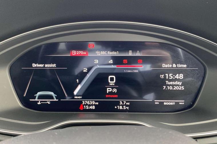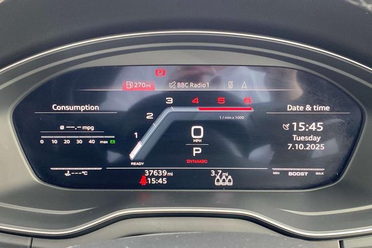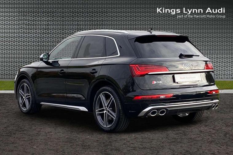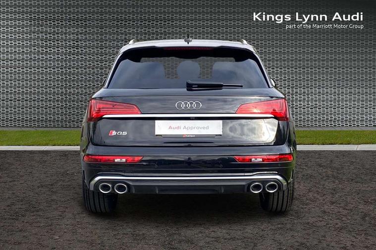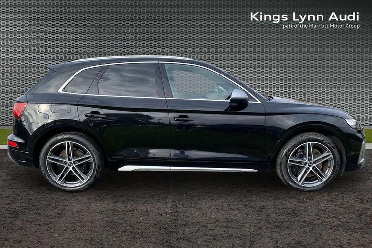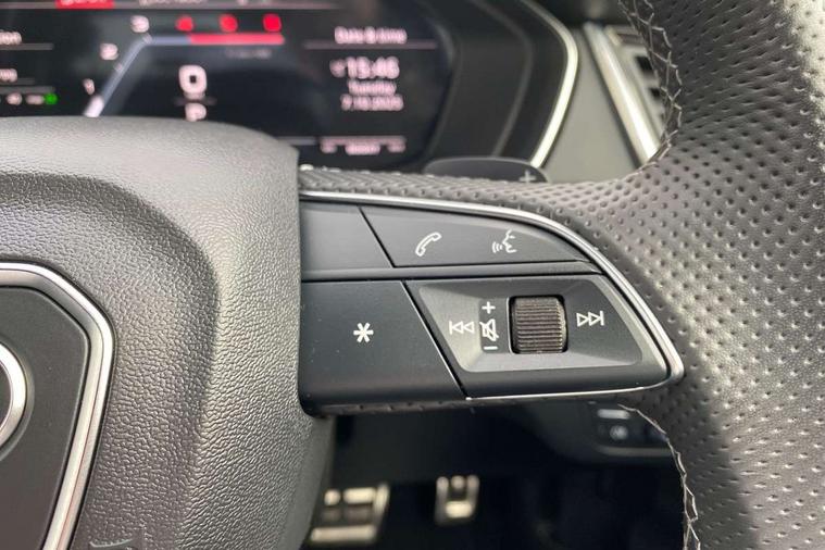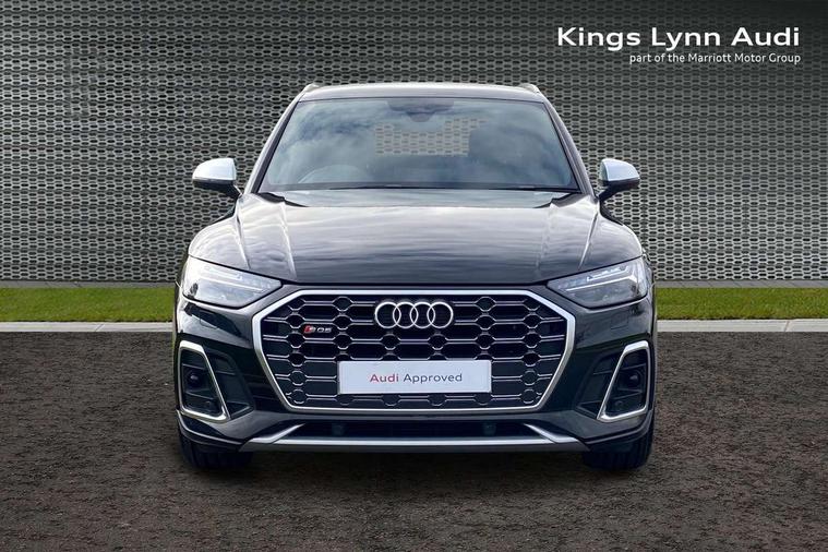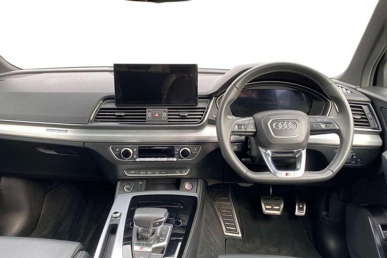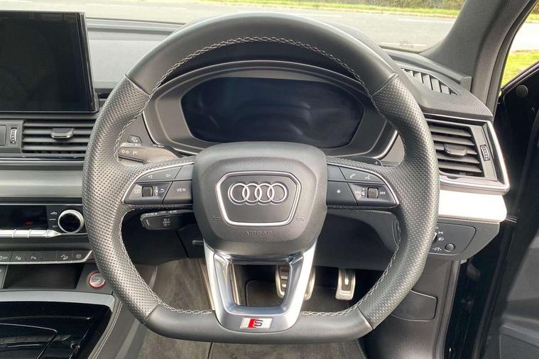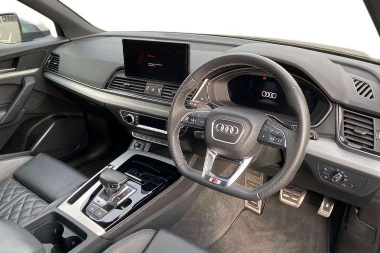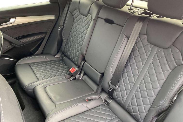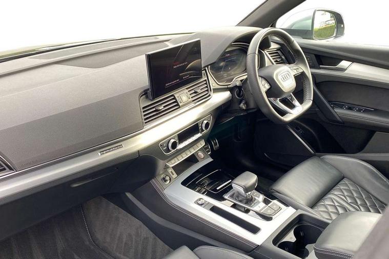Audi connect safety and service (e-call), Audi connect with Amazon Alexa Integration, Audi drive select, Audi virtual cockpit plus with 12.3" screen and three different layout designs, Audi wireless smartphone interface, Automatic start-stop system with coasting functionality and efficiency programme, Bluetooth interface, Electro - mechanical power assisted steering, MMI navigation plus with 10.1" touch screen, Power tailgate, Reversing camera, Service interval indicator, Voice control system with Audi hotword activation "Hey Audi", 70 litre fuel tank and 24 litre AdBlue tank, Diesel particulate filter, Quattro on demand, S sports suspension, 2 x USB charging port with aux input socket, Audi sound system, DAB Digital radio, Acoustic windscreen, Aluminium roof rails, Audi beam, Audi beam with Audi rings logo, Auto dimming door mirrors, Auto dimming rear view mirror, Automatic headlight adjustment, Automatic headlights and windscreen wipers, Body colour bumpers, Body colour rear diffuser with matt aluminium silver surrounds, Body colour underbody protection, Chrome plated exhaust trims, Daytime running lights, Door sills in Selenite silver, Electric adjustable/heated/folding door mirrors, Front air inlet surrounds in titanium black, Front and rear electric windows, Front radiator grille in honeycomb design, Headlight washers, High gloss black B pillar trims and triangular rear door trim, High level LED brake light, Lower bumpers painted in contrast Manhattan grey, Rear chrome trim strip below lights, Rear privacy glass and rear side windows, Rear side wing doors, Rear wiper, Roof bars, S front and rear bumpers, S Line rear spoiler, S Line side skirts, S specific rear diffuser, 3 rear headrests, 4 way electric lumbar support for driver and front passenger, 40:20:40 split folding 3 rear bench seat in 2nd row with rear centre armrest, Black cloth headlining, Comfort front centre armrest, Contrast stitching on seats, steering wheel and gear lever gaiter, Deluxe 3 zone electronic climate control, Fine Nappa leather upholstery with diamond pattern contrast stitching + front sport seats with S embossed logo, Front/rear floor mats, Fully electrically adjustable seats, Gear lever in black leather, Heated front seats, Height adjustable front head restraints, Height/reach adjustable steering column, Illuminated door sill trims with S logo, ISOFIX child seat mounting and top tether, Luggage compartment cover, Massage function for front seats, Rear seat bench plus, Removable luggage compartment floor, Single front passenger seat, Stainless steel pedals, Sunvisors with vanity mirrors, Extended interior upholstery pack - Q5, High gloss pack - Q5, LED interior light pack - Q5, 3 point seatbelts on all seats, 6 airbags - Driver, front passenger, curtain and side airbags, Electrically operated child locks on rear doors, Electromechanical parking brake, Electronic stabilisation control including ABS, ASR and EDL, Front passenger airbag deactivation, Hill descent control, Hill hold assist, Multi collision brake assist, Pop-up bonnet for pedestrian protection, Pre sense city, Seat belt force limiter, Seatbelt monitoring, Tyre pressure warning, Warning triangle and first aid kit, Anti theft alarm, Anti-theft wheel bolts, Keyless Go access/ignition system, Remote central locking,