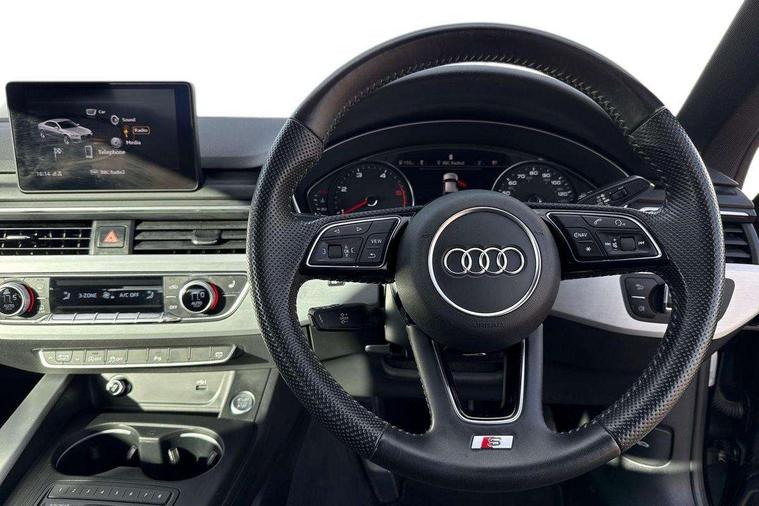 7" Colour driver information system, Audi connect, Audi drive select, Audi parking system plus with front and rear sensors, Audi smartphone interface, Automatic start-stop system with coasting functionality and efficiency programme, Bluetooth interface, Electric boot release, Electro-mechanical power steering, MMI Navigation, Service interval indicator, Voice control system, Diesel particulate filter, CD player, DAB Digital radio, Two SDXC card slots, Air inlet in matt aluminium with horizontal inlay, Aluminium roof frame and window trim, Auto dimming rear view mirror, Black grained rear grille, Body colour bumpers, Body coloured door mirrors, Chrome plated exhaust pipe, Electric adjustable heated door mirrors, Electric front windows, Front fog lights, High beam assistant, High gloss black B pillar trims and triangular rear door trim, Honeycomb side air inlet in titan black, Rain and light sensors, Rear diffuser in Twilight grey matt with honeycomb grille, S line badges on front wings, S Line body styling, S Line front and rear bumpers, S Line side skirts in black, S line sill plates, Twilight grey matt radiator grille in matt aluminium inlay, Windscreen with acoustic glazing, 2 x USB charging port with aux input socket, 40/20/40 split folding 2 seater rear seat bench with rear centre armrest, Adjustable steering column, Black headlining, Black perforated leather gearknob, Centre console with cupholders, Contrast stitching on seats, steering wheel and gear lever gaiter, Deluxe 3 zone electronic climate control, Front centre armrest, Front head restraints, Front/rear floor mats, Gearshift paddles, Illuminated door sill trim with S logo, ISOFIX child seat mounting and top tether, Jack and tool kit, Luggage compartment mat, Rear centre armrest, Rear headrests, S embossed logo on front sport seats, Stainless steel pedals and foot rest, Non Smokers pack, 6 airbags - Driver, front passenger, curtain and side airbags, Electromechanical parking brake, Electronic Stabilisation Control (ESC) including ABS, ASR and EDL, Front passenger airbag deactivation, Height adjustable front seatbelts, Hill hold function, Multi-Collision braking, Pop-up bonnet for pedestrian protection, Pre sense city, Seatbelt monitoring, Tyre pressure warning, Variable restraint system, Warning triangle and first aid kit, Anti theft alarm system, Anti theft wheel bolts, Immobiliser, Keyless Go, Remote central locking, Tyre repair kit,