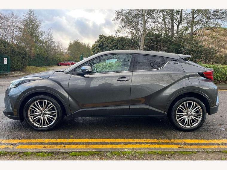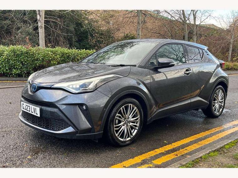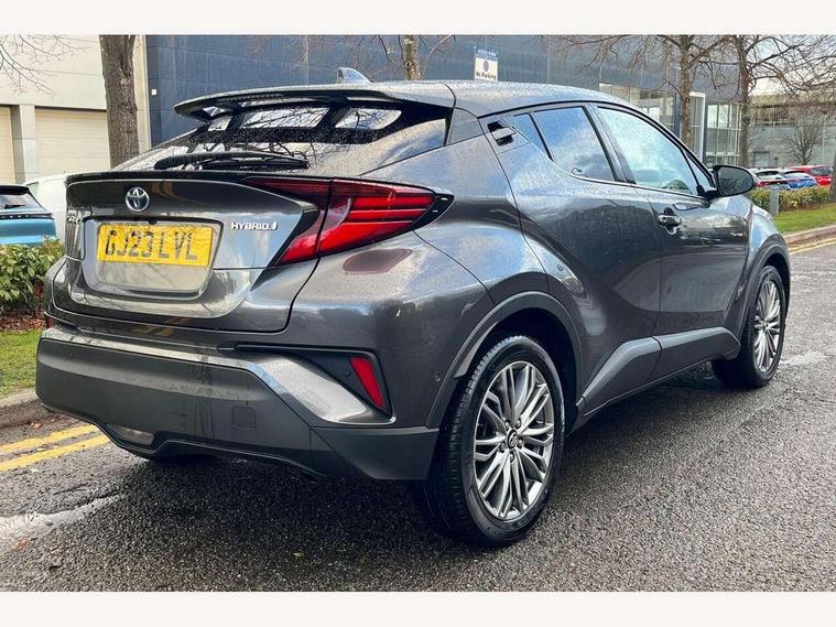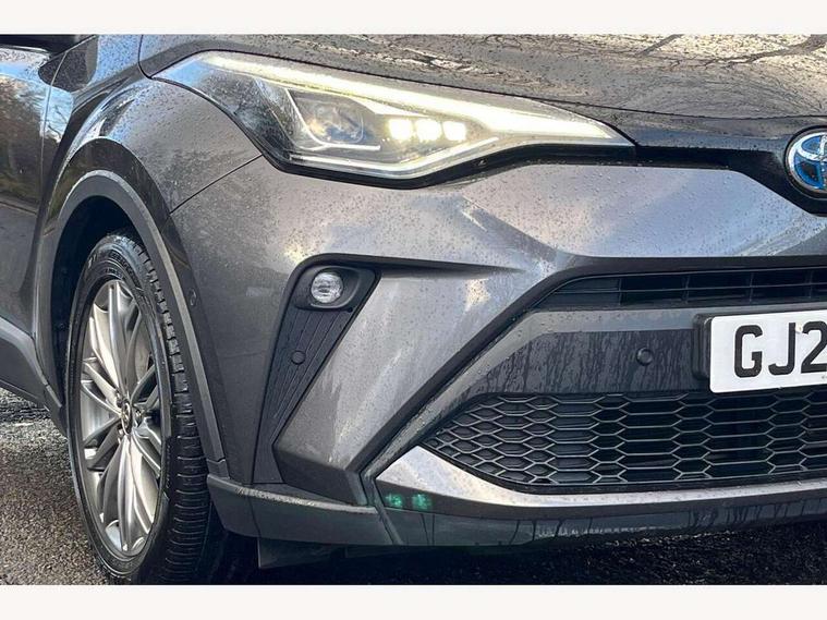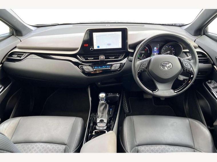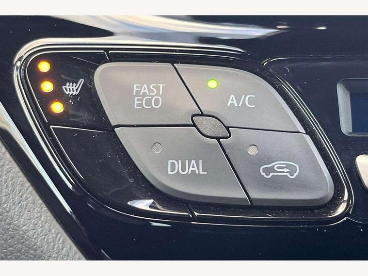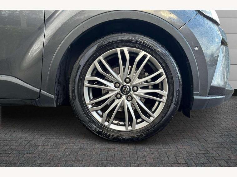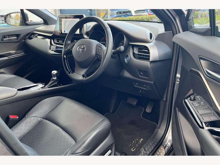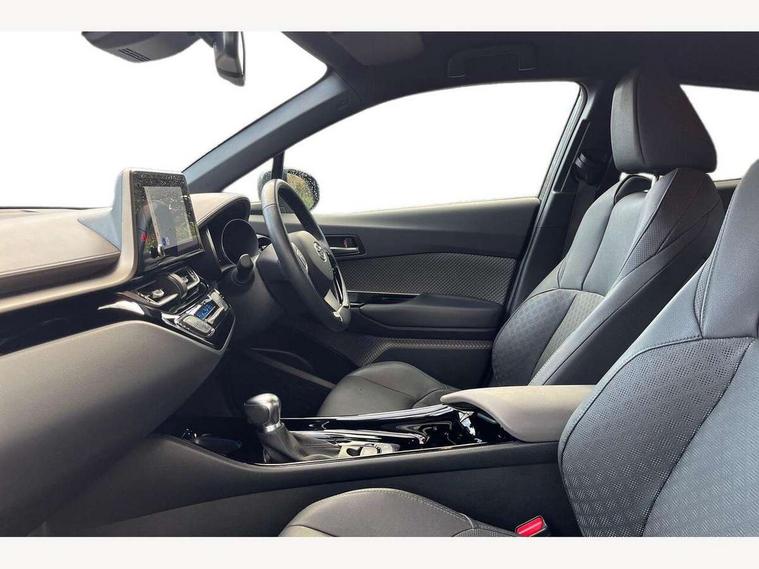 4.2" coloured TFT screen for multi-information display, Adaptive cruise control, Apple car play and Android auto, Bluetooth connectivity, E-call, Electric power steering, Hybrid system indicator, Lane departure alert with steering control, Lane trace assist, Push button tailgate release, Remote boot door release in cabin, Remote boot door release in key, Reversing camera, Road sign assist - RSA, Simple Intelligent parking assist, Smart voice assist, Touch 2 Go navigation system, Trip computer, Voice recognition, Wireless smartphone integration, Vehicle Stability Control (VSC), 6 speakers, AM/FM radio, DAB Radio (Digital Audio Broadcasting), Toyota touch 2 multimedia system with 8" display, USB connector, Wi-fi connectivity, Adaptive front light system, Adaptive LED Headlights, Anti-jam protection on power windows, Auto high beam, Auto up and down function on all power windows, Automatic headlight levelling, Automatic headlights, Automatic headlights cut-off, Black and body coloured rear bumper, Black lower front grille, Black upper front grille, Body colour door handles, Body colour door mirrors, Body colour front spoiler lip, Body coloured front bumper, Boot door release with push button, Electric heated door mirrors, Follow me home headlights, Front and rear power windows, Headlight cut off reminder, Honeycomb lower front grille, LED daytime running lights, LED fog lights, LED front light guide, LED High mounted stop light, LED rear brake lights, LED rear combination lights, Noise reduction layer on front windows and windscreen, Power adjustable door mirrors, Privacy glass, Rain sensor, Rear sequential indicators, Rear side wing doors, Rear spoiler, Rear tailgate, Rear window defogger, Rear window wiper, Shark fin antenna, UV-filter on driver and passenger windows, UV-filter on rear windows, Variable front intermittent wipers, 12v power outlet - front, 3 rear headrests, 3 seat bench in 2nd row, 3 spoke leather steering wheel, 60/40 split folding 2nd row rear seats, Adjustable rear headrests, Adjustable speed limiter switch on steering wheel, Assist grips front and centre pillar, Audio and telephone switches on steering wheel, Black front door assist grips, Blue ambient lighting on front cup holders, Blue ambient lighting on front doors, Boot light, Chrome interior door handles, Driver and front passenger personal light, Driver and front passenger Whiplash Injury Lessening seats, Driver and passenger seatback pockets, Dual zone automatic air conditioning, Floor mats, Front cupholders, Front head restraints, Front sports seats, Glovebox with internal light, Hard tonneau cover, Heated driver and front passenger seats, Heated steering wheel, Hooks for luggage holding net, Humidifying Nanoe air purifier, Illuminated entry system, Isofix attachments on outer rear seats, Leather gearshift, Light on driver sun visor, Light on passenger sun visor, Manual telescopic steering wheel, Manual tilt steering wheel, Microphone on front personal light, Mirror on driver sun visor, Mirror on passenger sun visor, Multimedia switches on steering wheel, Pollen filter, Power adjustable lumbar support on driver seat, Power tilting cushion on driver seat, Shopping bag hooks, Single front passenger seat, Slow opening on lower glovebox, Voice recognition switch on steering wheel, Leather pack - C-HR, Tech with parking sensor pack - C-HR, 16 Disk front wheel brake, 3x3 point rear seatbelts, ABS+EBD+Brake assist, Electronic parking brake, Front and rear seatbelt reminder, Front passenger airbag on/off switch, Hill start assist control (HAC), Pre collision system with pedestrian detection, Pre-tensioners and force limiters, Rear door child safety locks, SRS Airbags - Driver + Front passenger, front side, front and rear curtain and driver's knee airbags, Toyota safety sense, Tyre pressure monitoring system, Tyre pressure warning system, Acoustic vehicle alert system (AVAS), Glass-breaking alarm sensors, Immobiliser, Intrusion alarm, Intrusion sensor, Motion sensor alarm, Power door locks, Power passenger window lock, Remote central locking, Black lower dashboard, Dark brown upper dashboard, Piano black console, Silver deco line on upper dashboard, Tyre repair kit,