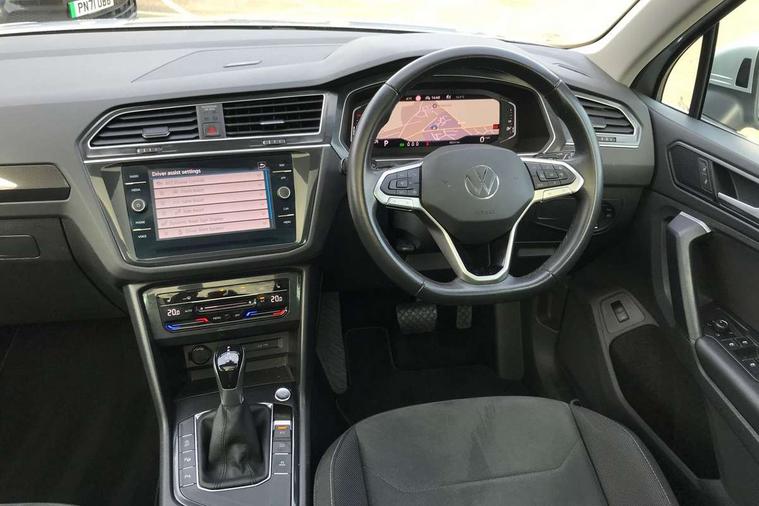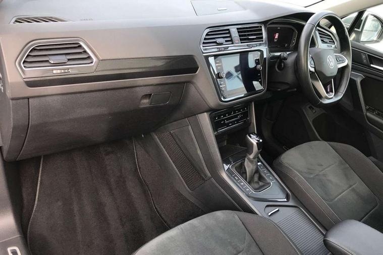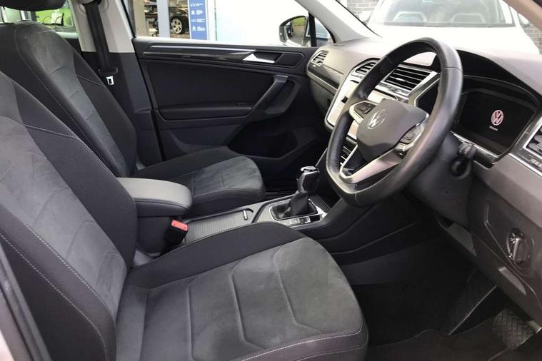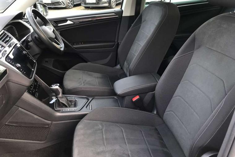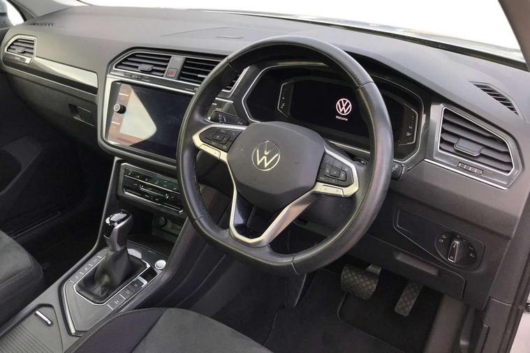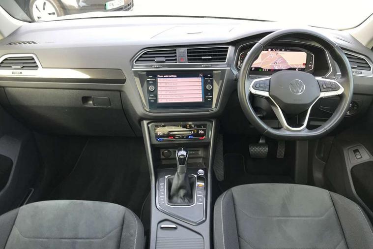 Adaptive cruise control ACC stop and go including speed limiter, App-Connect incl. App-Connect Wireless for Apple CarPlay and Android Auto, Bluetooth phone integration system, Digital Cockpit Pro - Active info display, Distance control assist, Driver alert system, Driver profile selection, Dynamic road sign display, eCall emergency call system, Electromechanical speed sensitive power steering, Engine start/stop button, Lane keeping system Lane Assist, Lights on warning, Motorised electric tailgate operated via key fob, drivers door and foot movement under tailgate, Multifunction front facing camera, Outside temperature display, Premium multifunction display with multi colour display, Remote control boot opening, Rev counter, Revision / skills operating concept travel assistant, Service interval indicator, Speed limit display, Start/stop system with regenerative braking, Tailgate/trunk lid unlocking from outside, Trip computer, Warning sound and light for doors and tailgate open, Battery regeneration during braking, XDS electronic differential lock for improved traction and handling, 2 USB-C ports in the front, 1 USB-C charging socket on the center console in the rear, Diversity antenna for FM reception, Radio, SD card slot, Simultaneous pairing of 2 compatible mobile devices, SMS functionality - read, compose and send SMS messages using touch-screen display, Title and cover art display, Aluminium door sill protectors, Auto dimming interior rear view mirror, Automatic headlight control system, Body colour door handles, Body coloured bumpers, Body coloured door mirrors with integrated indicators, Coming/leaving home lighting function, Dynamic headlight range control, Front and rear electric windows, Heated rear window, High level 3rd brake light, IQ light-Adv high beam, Dynamic light assist for LED matrix headlamp+LED separate DRL+DCL, dark red rear LED tech, Poor weather light+ cornering light, Laminated safety glass windshield, heat and sound insulating, LED rear number plate lights, Poor weather light and cornering light, Privacy glass for rear side windows and rear window, Rain sensor windscreen wipers, Rear exhaust tailpipe, Rear fog lamp, Rear side wing doors, Rear windscreen washer and wiper with interval delay, Side and rear windows in heat insulating glass, Tilting and sliding panoramic sunroof with rear panoramic sunroof, Trailer Stability Programme, Windscreen wipers/ intermittent wipe + 4 position delay, 12V outlet in center console rear and in luggage compartment, 12V outlet in front and tray, 2 cup holders in front, 2 LED front reading lights, 2 LED rear reading lights, 3 bench rear seats in 2nd row, 3 rear headrests, 4 load lashing points, 40:20:40 split folding rear seats, Air Care Climatronic 3 zone automatic climate control with enhanced air filter and controls in the rear, Backrest release for left front seat, Climate control unit rear with touch function, Door and side trim panel in foam film and woven fabric, Front + rear carpet mats, Front centre armrest, Front footwell illumination, Front seats head restraints (x-adjustment), Height adjustable front seats, Height/reach adjust steering wheel, Instrument lighting white adjustable panel illumination, Interior light with delay, Isofix Preparation 2 Rear child seats, Leather gear knob, Lockable cooled glovebox, Luggage compartment lighting, Luggage net, Rear bench seat asymetrically split folding, longitudinally movable and folding with load-through hatch and center armrest, Remote unlocking for rear seat backrest, Removable luggage cover, Removable rear headrests, Safety optimised front head restraints, Single front passenger seat, Sliding/reclining rear seats, Standard rear seat release, Storage compartment in driver's door, Storage compartment in passenger's door, Storage compartment in rear doors, Storage compartments in luggage area left and right, Storage tray on dashboard, Sun visors with illuminated vanity mirrors, Top front comfort seats, Variable boot floor, height adjustable and removable, Ambience pack - Tiguan, Chrome pack - Tiguan, Easy open and close pack with safelock - Tiguan, 3 point seat belt for centre rear seats, 3 point seat belts with seat belt pretensioners for the outer rear seats, Active bonnet, Curtain airbags for front and rear passengers, Driver/Front Passenger airbags, Drivers knee airbag, Electronic parking brake with auto hold, Electronic Stability Control with driver steering recommendation, ABS, ASR, EDL, EDTC and trailer stabilization, Front assist with autonomous emergency braking (for Adaptive Cruise Control ACC up to 130 mph), Front disc brakes, Front passenger airbag deactivation, Front side airbags, Height adjustable front 3 point seatbelts + pretensioners, Hill hold control, Manual child proof rear door locks, Pedestrian monitoring system, Power assisted brakes, Proactive passenger protection system in combination with front assist, Rear disc brakes, Rigid safety cell with front and rear crumple zones, Two tone horn, Warning sound and light for front seat belts if unfastened, Anti theft alarm system with interior monitoring, backup horn and towing protection, Anti theft wheel bolts, Central locking system with safelock radio remote control and 2 remote control folding keys, Electronic engine immobiliser, Tool kit,