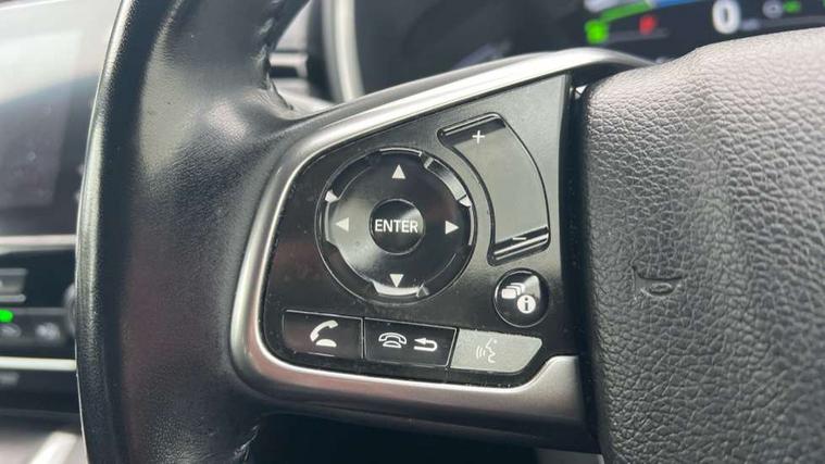 Adaptive cruise control, Agile handling assist, Bluetooth hands free telephone connection, E-call, Economy mode, Electric power steering, Emergency stop signalling system, Forward collision warning, Front parking sensors, Honda CONNECT with GARMIN Navigation + 7" touchscreen, DAB radio, Apple CarPlay, Android Auto, Aha app integration and internet browsing, Intelligent multi info display, Lane departure warning system, Lane keep assist system, Low speed following, Rear parking sensors, Rear view camera, Road departure mitigation, Speed limiter, Traffic sign recognition, Vehicle stability assist, 2 USB sockets in rear, 2x USB sockets in front, 9 speakers, DAB Digital radio, Dashboard centre speaker, Front tweeters, Steering wheel mounted controls, Subwoofer, Aspheric door mirrors, Auto dimming rear view mirror, Automatic headlights with dusk sensor, Body colour bumpers, Body colour door handles, Door mirrors tilt when reversing, Electric front windows/one touch facility, Electric rear windows + one touch facility, Electrically adjustable and heated door mirrors, Electrically retractable door mirrors, High beam assist, LED daytime running lights, LED front fog lights, LED Headlights, LED rear lights, Rain sensor, Rear privacy glass, Rear side wing doors, Rear wiper, Shark fin roof aerial, Third brake light, Welcome home function, 3 seat bench in 2nd row, 60/40 split folding rear seat, Accessory sockets, AWD emblem rear, Cargo hooks, Courtesy lights, Driver's electric adjustable lumbar support, Driver/passenger front seatback pockets, Driver/passenger sunvisors with illuminated vanity mirrors, Dual zone automatic climate control, Front centre armrest, Front map lights, Height adjustable driver's seat, Hybrid emblem, Illuminated glovebox, Instrument panel with garnish wood film, Isofix child seat preparation, Leather steering wheel, Paddle shift controls, Rear air vents, Rear centre armrest, Rear headrests, Rear reading lights, Rear seat conversation mirror, Silver interior door handles, Single front passenger seat, Sunglasses holder with mirror, Tilt/telescopic adjustable steering wheel, Tonneau cover, Trunk light, 5 x 3 point seatbelts, ABS/EBD, Anti-whiplash front headrests, Brake assist function, Collision mitigation braking system, Deflation detection system, Driver airbag, Electronic parking brake with auto hold, Front and rear curtain airbags, Front and rear seat belts with emergency locking retractor (ELR), Front side airbags, Hill start assist, Manual child lock in rear doors, Passenger airbag deactivate switch, Honda super locks, Immobiliser, Security alarm, Smart entry + Smart start, Ultrasonic security sensor, Tyre repair kit,