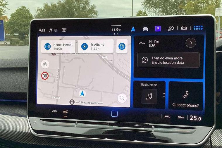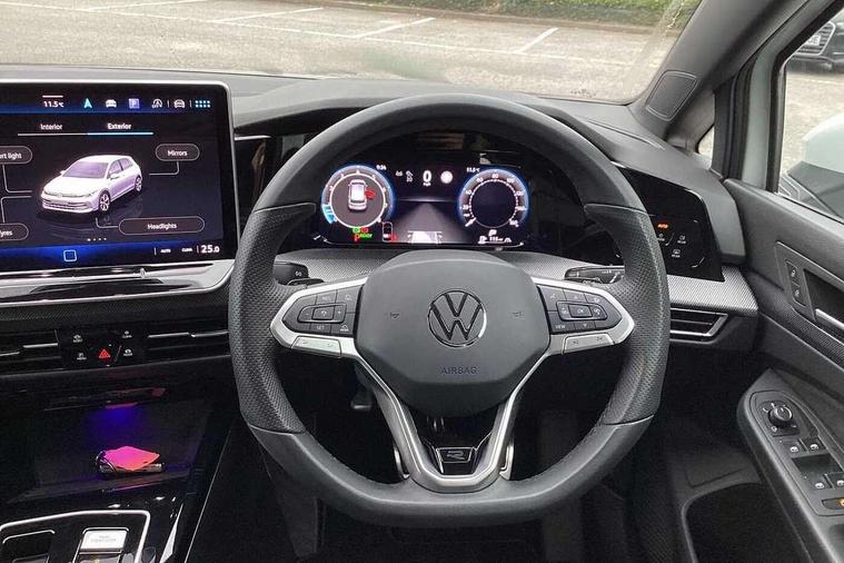 Activated carbon canister, Adaptive cruise control (ACC) with speed limiter and front assist (reacting to vehicles pedestrians and cyclists), Advanced driver attention and drowsiness monitor, Driver alert system, Dynamic road sign display, Dynamic steering, E-Sim card for online connectivity, eCall emergency call system, Front and rear parking sensors, Lane keeping system, Multi-color Digital cockpit pro, selection of different info profile possible, Multifunction camera for distance control, Navigation system, Oncoming vehicle braking when turning including swerve support, Power assisted speed sensitive steering, Preparation for light assist system, Speedo, rev counter, electronic odometer, trip, service interval display, exterior temperature and fuel gauge, Voice assistant and voice enhancer with chat GPT, Warning signal and warning light for front and rear seatbelts not fastened, We connect plus preparation, We connect preparation, Wireless app connect, Hybrid propulsion system, Petrol Particulate Filter, Start-stop system with battery regeneration (recuperation - energy recovery during braking), XDS electronic differential lock for improved traction and handling, Comfort telephony + wireless charging, without wireless aerial connection, Digital radio reception (DAB), Diversity antenna for FM reception, Infotainment system with 12.9" display, 3rd brake light, Auto headlights, Automatic headlamp activation with Coming home and Leaving home feature, Body colored bumpers in R-Line style, Body colour door handles, Chrome plated radiator grille inserts and light switch surrounds, Exterior mirrors convex on the left and aspherical on the right, Front and rear electric windows, Heat insulating windshield made of laminated glass, LED daytime running lights, Rear exhaust tailpipe, Rear fog light on one side and reversing lights on both sides, Rear side wing doors, Rear windscreen washer and wiper with interval delay, Remote electrically foldable door mirrors, puddle lights and reverse activated passenger's door mirror, Welcome light with surround lighting, 12V socket in front centre console, 12V socket in luggage compartment, 2 USB C ports in front, 2 USB charging sockets on the centre console in the rear charging capacity upto 45W, 3 rear head restraints, 3 seat bench in 2nd row, Ambient lighting with 30 colour incl. LED light unit in front footwell with selectable light colour, Brushed stainless steel pedals, Carpet mats, front and rear, Door insert, side trim panel and arm support in leatherette, Front centre armrest, Front passenger seat, Front seat lumbar support adjuster, Front sports seats, Integrated front head restraints, ISOFIX anchors for child seats on outer rear bench seats and on front passanger seat compatible for i-Size, Luggage compartment lighting, Manual height adjustable front seats, Plastic gear knob, Rear cupholder and loadthough, Sardegna cloth upholstery with front and outer rear seats Art Velour inner sides of bolsters, Soul black instrument panel, Split folding backrest with centre armrest and unsplit rear seat bench, Storm grey roof lining, Sun visors with illuminated vanity mirrors, 3 point height adj front seatbelts + pretensioners, 3 rear three point seatbelts, ABS, Autonomous emergency braking front assist with pedestrian and cyclist monitoring, Child locks on rear doors, Driver and front passenger airbag with front passenger airbag deactivation, Electronic parking brake with auto hold, ESC (Electronic Stability Control), Extended pedestrian protection measures, Hill start assist, Rear disc brakes, Two tone horn, Tyre pressure monitoring system, Volkswagen roadside assistance, Alarm with interior protection, Anti theft wheel bolts, Preparation for alcohol interlock, Decorative inserts carbon grey for dashboard and front door trim panels,