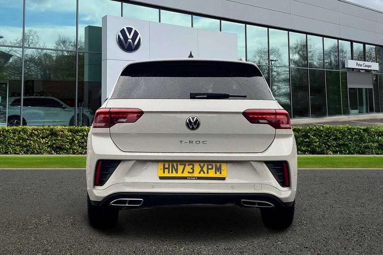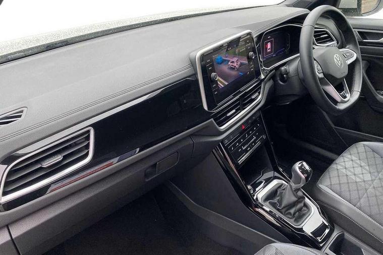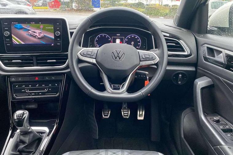 10.25" Digital cockpit pro, Advanced driver attention and drowsiness monitor, Bluetooth mobile phone interface, Driver tips and journey analysis, Emergency call service, Lane keeping system Lane Assist, Modified key software - reduce switch off time for key status change to Long no motion, Online services, Park assist including front and rear parking sensors, Service interval indicator, Tailgate/trunk lid release from outside, Think blue trainer driver tips and journey analysis, Warning sound and light for front seatbelts unfastened, Wireless app connect, Battery regeneration during braking, Start/stop function with battery regeneration, Diversity antenna for FM reception, Music playback - MP3, WMA and AAC files, Premium USB cable in choice of either Apple or Android smartphone compatibility, SD card slot, Simultaneous pairing of 2 compatible mobile devices, Title and cover art display, We Connect and We Connect Plus functionality, 3rd brake light, Auto dimming interior rear view mirror, Automatic hazard lights activation under emergency braking, Automatic headlight control with LED separate daytime running lights with coming/leaving home function, Extended roof spoiler, Exterior mirrors aspherical on driver side, convex on front passenger side, External USB type C socket and charging sockets, Front windscreen wiper with intermittent wipe and 4 position delay, Heated rear window, LED rear combination lamps, LED rear number plate lights, LED tail lamp rear comination lamps, Power windows with comfort operation and circuit breaker, R-Line design body coloured bumpers, Rain sensor, Rear exhaust tailpipe, Rear fog light on one side and reversing lights on both sides, Rear side wing doors, Rear wash/wipe with intermittent wipe setting, Remote electrically foldable door mirrors, puddle lights and reverse activated passenger's door mirror, 12V power socket in centre console, 3 rear head restraints, 3 seat bench in 2nd row, 4 load lashing points in luggage compartment, Air care climatronic air conditoning system with active combination filter and 2-zone temperature control, Black roof lining, Chrome plated radiator grille inserts, air vent surrounds and light switch surrounds, Door and side trim panel with leatherette insert, Front + rear carpet mats, Front centre armrest, Front cupholders x 2, Front footwell illumination, Front reading light, Front scuff plates with R logo, Instrument lighting, white adjustable panel illumination, Interior ambient lighting and surround lighting, Interior light delay, Isofix child seat preparation, Leather gearshift handle, Load-through provision with cup holder when folded down ('Unsplit rear seat bench, split folding backrest, with centre armrest), Luggage compartment lighting, Single front passenger seat, Stainless steel pedals, Storage compartment in left and right luggage area, Storage compartment in rear doors, Storage compartments in driver and front passenger doors, Sunvisors with illuminated vanity mirrors, Variable boot floor, height adjustable and removable, Driver assistance pack without proactive passenger protection - T-Roc, 3 point height adj front seatbelts + pretensioners, 3 point seatbelts in outer rear with ECE label, ABS, Child locks on rear doors, Driver and front passenger airbag with front passenger airbag deactivation, Driver and front passenger safety-optimised head restraints, Drivers seatbelt reminder, Electronic parking brake, Electronic Stability Control (ESC) inc EDL (Electronic Differential Lock) and ASR (Traction Control), Front and rear passengers curtain airbag system including front side airbags, Front assist with city emergency braking and pedestrian monitoring, Front seat side impact airbags, Hill start assist, Predictive pedestrian protection, Rear disc brakes, Two tone horn, Tyre pressure loss indicator, Volkswagen roadside assistance, Anti-theft alarm system with interior monitoring, backup horn, and towing protection, Remote central locking with SAFELOCK, radio remote control with 2 remote control folding keys, Trims for alloy wheels,