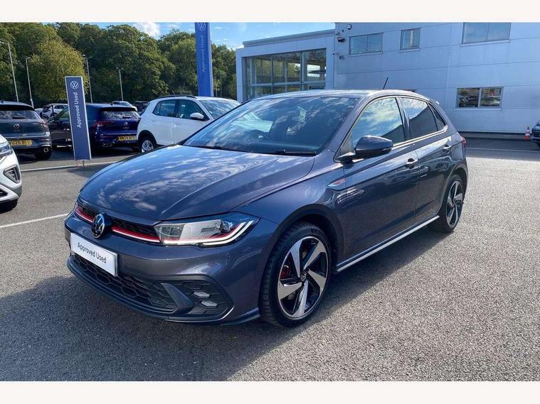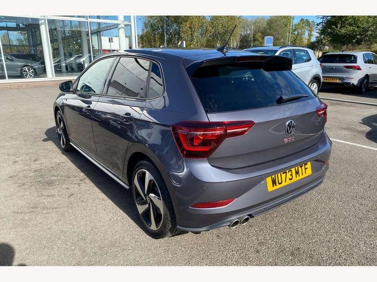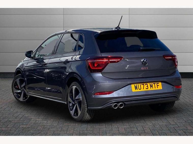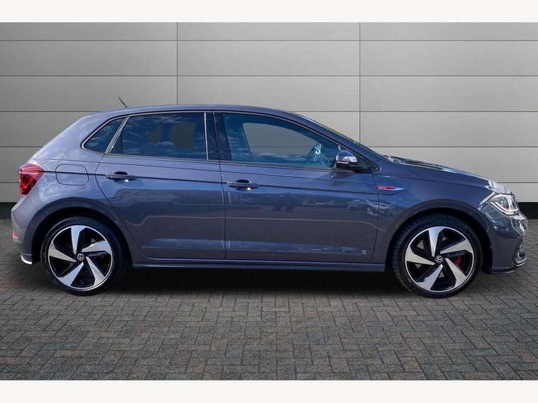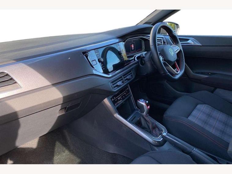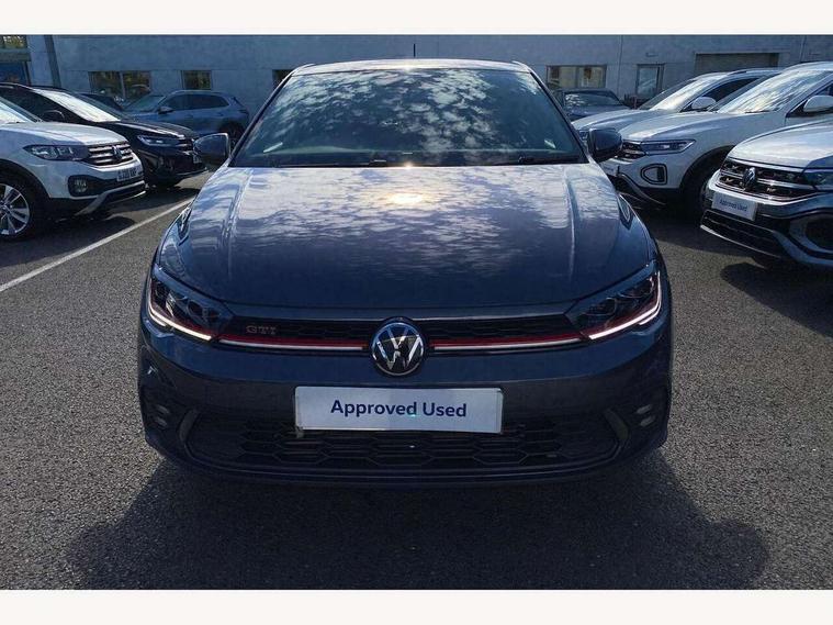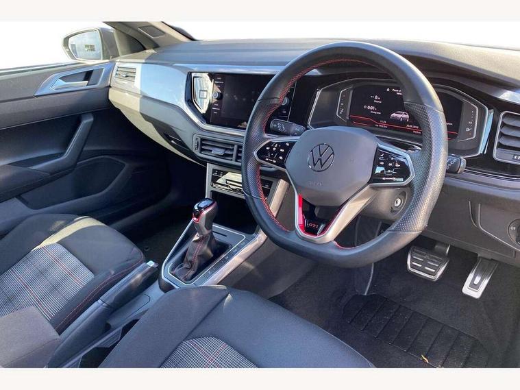 Adaptive cruise control with follow-to-stop and speed limiter, Bluetooth mobile phone interface, Digital Cockpit Pro with 10.25" Display, Driver alert system, Dynamic road sign display, Eco mode, Emergency call service, Power assisted speed sensitive steering, Preparation for We connect and We connect plus, Speedo and rev counter, electronic odometer, trip, service interval display and fuel gauge, Travel Assist - Lane keeping system and traffic jam assist, Travel assist including emergency assist, Trip computer, Warning signal and warning light for front and rear seatbelts not fastened, Washer fluid level indicator, Wireless app connect, Adaptive chassis control, Front wheel drive, Heavy duty rear axle, Rear shock absorpion sports version, Sports select suspension lowered by 15mm, Start-stop system with battery regeneration (recuperation - energy recovery during braking), DAB Digital radio, Diversity antenna for FM reception, Front and rear 6 speakers, Body colour bumpers, Body colour door handles, Electric front windows, Front scuff plates in aluminium with GTI logo, Heat insulating darkened glass in side and rear windows, Heat insulating glass windscreen, Power folding adjustable/heated exterior mirrors and front passenger exterior mirror lowering function, Rain sensor, Rear electric windows, Rear fog light, Rear side wing doors, Rear windscreen washer and wiper with interval delay, Sport bumpers with air intakes with honeycomb structure, Third brake light, Twin chrome exhaust tailpipes, 12V power socket in centre console, 2 USB-C ports in the front, 2 USB-C charging sockets on the center console in the rear, 3 rear head restraints, 60/40 split folding rear seat and rear seat bench not split, Air care climatronic air conditoning system with active combination filter and 2-zone temperature control, Black roof lining, Chrome plated radiator grille inserts, air vent surrounds and light switch surrounds, Door and side trim panel, Driver and front passenger seat height adjustment, Driver/passenger sunvisors with illuminated vanity mirrors, Front + rear carpet mats in recycled material, Front centre armrest, Front footwell illumination, Front seat backrest storage pockets, GTI sports gearshift knob in aluminium leather, Handbrake lever handle in leather, Headliner in recycled material, Isofix child seat preparation easy-fit (for two outer rear seats, and front passenger seat) compatible with I-size, LED interior light with switch off delay and dimmer, 2 reading lights front and rear, Luggage compartment cover, Luggage compartment floor, Luggage compartment lighting, Single front passenger seat, Stainless steel pedals, Standard pedal cluster, Three spoke leather wrapped multifunction sports steering wheel with shifting paddles, IQ LED matrix headlights pack - Polo, Light and sight pack - Polo GTI, 3 point height adj front seatbelts + pretensioners, 3x3 point rear seatbelts, ABS, Driver and front passenger airbag with front passenger airbag deactivation, Drivers and front passengers safety optimised head restraints, ESC (Electronic stability control) + EDL (Electronic Differntial lock) and ASR (Traction control), Extended and predictive pedestrian/ cyclist protection, Front and rear disc brakes with red brake calipers, Front curtain and side airbags with center airbag, Hill hold control, Manual child lock in rear doors, Two tone horn, Tyre pressure loss indicator, Alarm with interior protection, Anti-theft alarm system with interior monitoring, backup horn, and towing protection, Anti-theft wheel bolts, Electronic engine immobiliser, Chrome applications on rotary light, mirror adjustment, window regulator switches, outlet with frame in black, Low rolling resistance tyres,