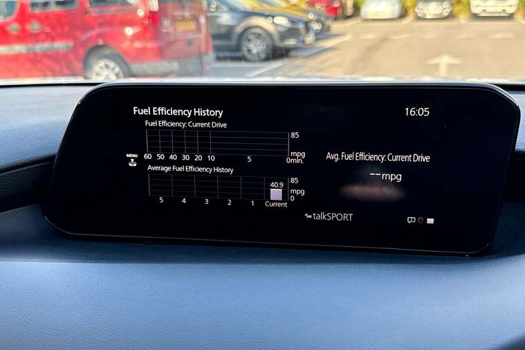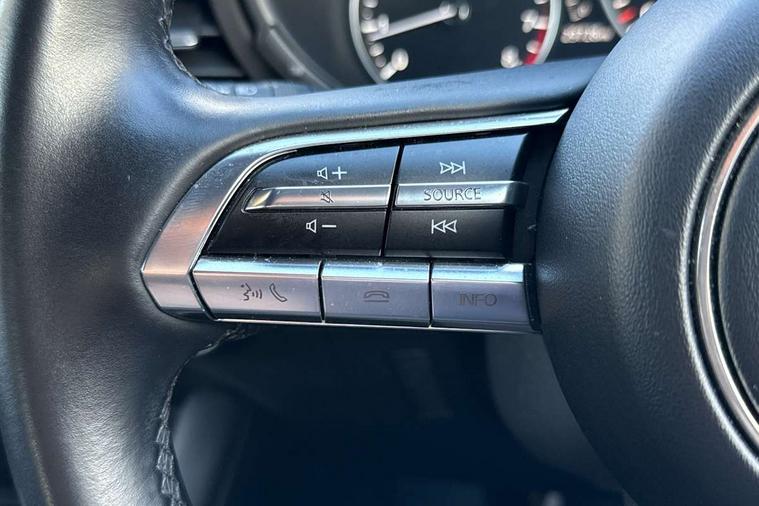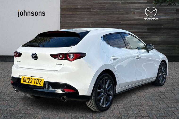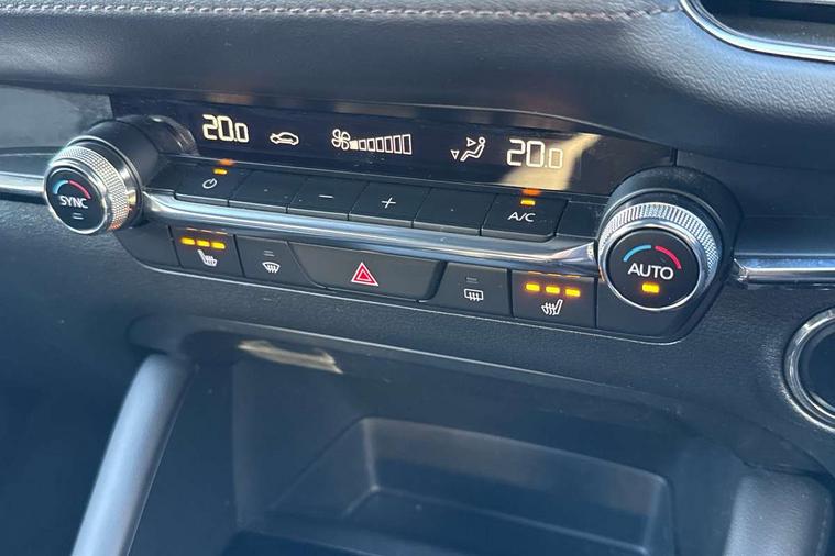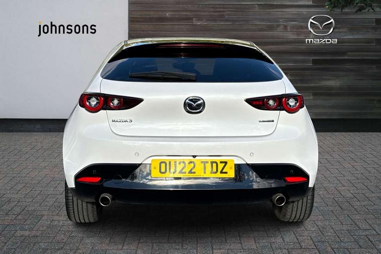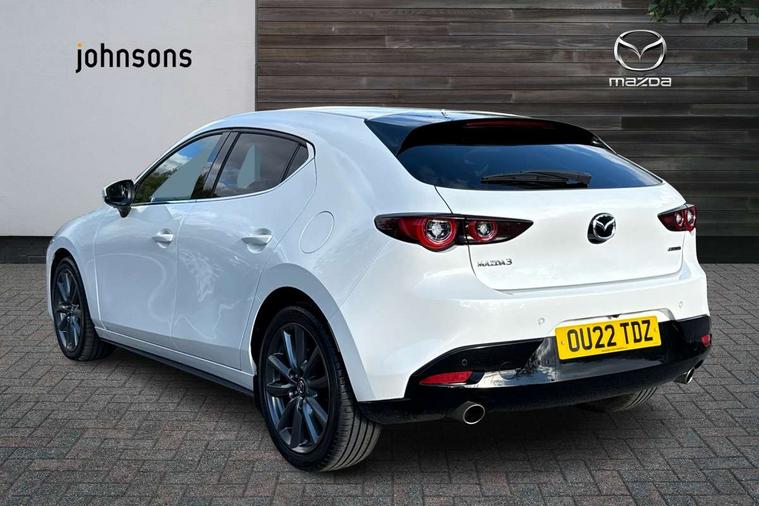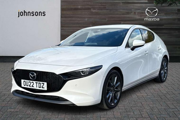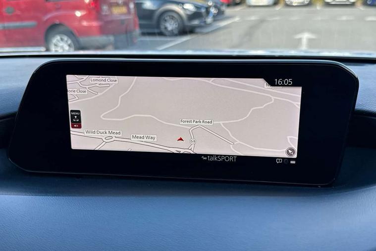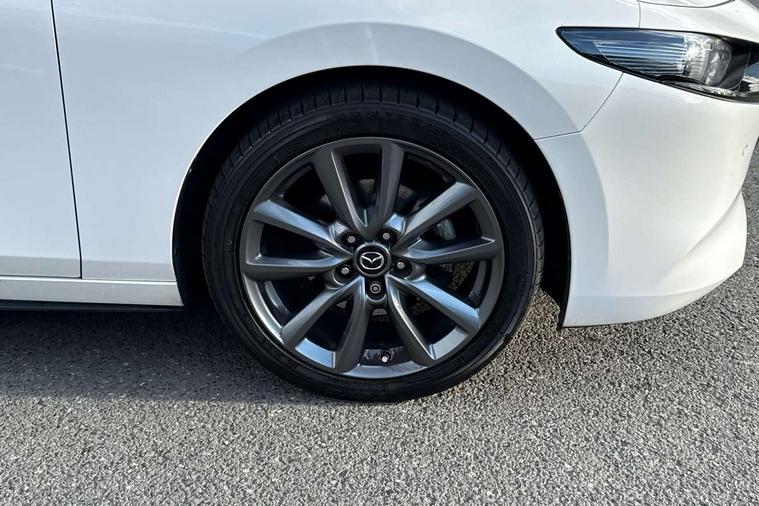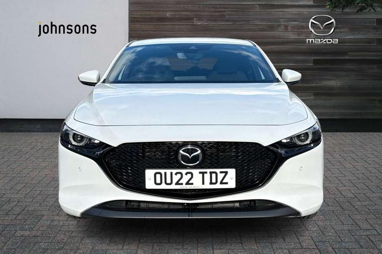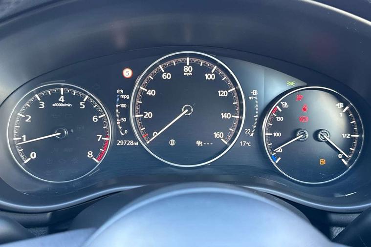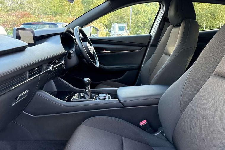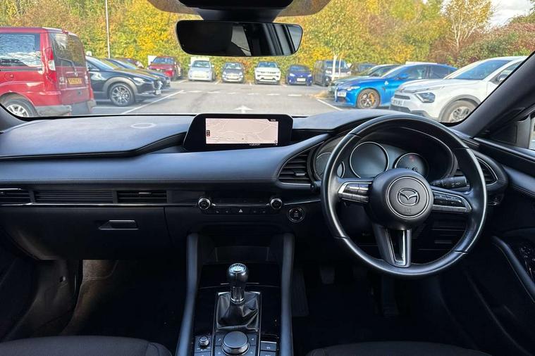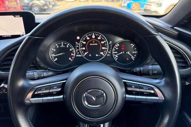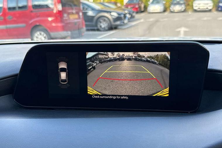 7" colour TFT display, 8.8" Colour centre touch screen display with Mazda Connect infotainment, Apple car play/Android Auto, Audio transfer from bluetooth devices, Blind spot monitoring with rear cross traffic alert, Colour active driving display inc Windscreen projected, Traffic Sign Recognition, turn-by- turn navigation and Mazda Radar Cruise Control information, Digital instrument cluster, Driver attention alert system, E-call with GPS, Emergency stop signalling system, Engine start/stop button, Front and rear parking sensor with audible and visual warning, Head up Display, Integrated bluetooth with steering wheel mounted controls, Intelligent speed assist, Lane keep assist system (LAS) with Lane departure warning system (LDWS), Mazda connected services, Mazda Navigation System with european mapping, Mazda Radar Cruise Control, Mobile App interface, Multimedia Commander, PAS, Reversing camera, Service indicator, Traffic sign recognition (TSR), Trip computer, Cylinder Deactivation, i-stop, Mazda Multimedia System with AM / FM / DAB radio with 8 speakers, Adaptive LED Headlights, Auto dimming driver's door mirrors, B-pillar garnish in piano black, Body coloured, electrically adjustable, heated auto power folding door mirrors with integrated indicators, Coming/leaving home lighting function, Dark metallic finish signature wing, Dual chrome tailpipes tip, Dusk sensing headlights, Electric front/rear windows with one touch/auto up/down, Frameless auto dimming interior rear view mirror, Front body coloured bumper with black lower bezel, Front kodo turn signal, Gloss black finish front grille, Gloss black rear roof spoiler, LED indicator lights, LED third brake light, Privacy glass with dark tinting on rear side windows and rear window, Rain sensing front wipers with adjustable sensitivity and speed, Rear colour coded bumper with gloss black lower moulding, Rear fog lights, Rear side wing doors, Signature LED daytime running lights, Signature LED rear combination lights, Speed adjustable rear wash wiper with intermittent wipe, 12v electrical power outlet, 3 seat bench in 2nd row, 60/40 split fold down rear seats, Black cloth door panel inserts, Cloth upholstery, Dark roof headlining, ceiling and pillars, Driver, front passenger and two rear door pockets, Driver, Front passenger and two rear grab handles with coathooks, Driver/passenger sunvisors + vanity mirrors (drivers side with ticket holder), Drivers seat manual slide recline and height adjustment, Dual zone climate control air conditioning, Folding rear centre armrest with two cup holders, Front and rear courtesy lamps, Front armrest, Front centre storage with two cupholders, Front head restraints, Front passenger seatback pocket, Front passengers seat manual slide, recline and height adjustment, Gear shift indicator, Heated front seats with 3 stage setting, Illuminated glovebox, Interior colouration dashboard and doorcards in black with dark stitching, ISOFIX child seat anchorage points attached on outer rear seats, Leather wrapped gear shift knob, Leather wrapped steering wheel, LED interior light, Luggage compartment light, Power outlet in luggage compartment, Roof mounted sunglasses holder, Single front passenger seat, Three height adjustable rear head restraints, Tilt/height adjustable steering wheel, USB input, 3 point ELR front seatbelts with pretensioners, 3 rear 3 point seatbelts with ELR, Anti-lock braking system (ABS), Drivers knee airbag, DSC - Dynamic Stability Control, Dual stage driver and single stage passenger airbags, EBD - Electronic brakeforce distribution, Electronic parking brake with auto disengage function and auto hold function, Front and rear curtain airbags, Front passenger airbag cut-off switch, Front side airbags, Front smart city brake support, G-Vectoring control plus, Hill launch assist, Intelligent Traction Control system, Manual child lock in rear doors, Mild Hybrid system with regenerative braking, Seatbelt reminder for driver/front passenger and rear seats, Tyre pressure monitoring system (TPMS), Auto door lock when driving, Remote central locking + deadlocks, Smart keyless entry, Thatcham accredited alarm and immobiliser, 18" Grey alloy wheels, Emergency tyre repair kit,