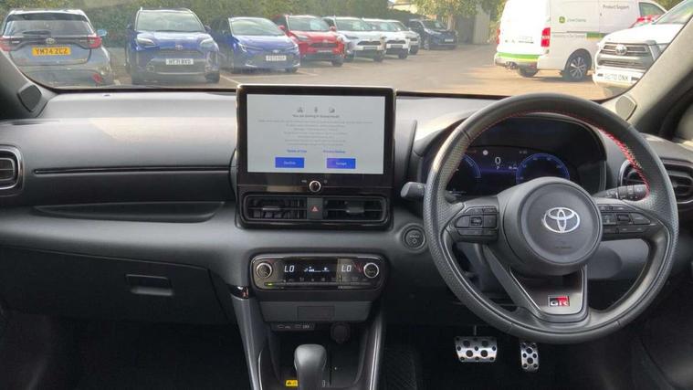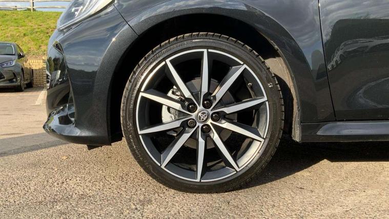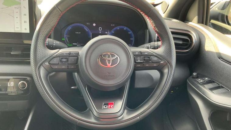 12.3" Digital Combimeter, Adaptive cruise control, Adjustable speed limit with speed warning, Bluetooth connectivity, Colour binocular inspired displays with digital speedometer, E-call, Electric power steering, Hybrid energy display, Lane trace assist, Multi information display switches on steering wheel, Pre-collision system (PCS), Reversing camera, Tailgate, Voice recognition, Wireless charger, Vehicle Stability Control (VSC), 10.5" Toyota smart connect multimedia with wireless smartphone integration incl apple car play and cloud Navigation, 6 speakers, Toyota Touch 3 system with DAB radio, USB connection, Acoustic windscreen glass, Auto high beam assist, Auto windscreen wipers, Automatic headlights, Dark chrome lower front grille, Electric adjustable heated door mirrors, Follow me home headlights, Front auto power windows with anti jam protection, LED daytime running lights, LED front fog lights, LED front light guide, LED Headlights, LED High mounted stop lamp, LED Indicators, LED rear light guide, Manual headlight levelling, Painted chequered front grille with hot stamp in mesh design, Rain sensor, Rear auto power windows with anti jam protection, Rear privacy glass, Rear roof spoiler, Rear side wing doors, Rear wiper, Shark fin antenna, Turning signal integrated indicators in door mirrors, Variable front intermittent wipers, 3 adjustable rear headrests, 3 seat bench in 2nd row, 3 spoke leather steering wheel, 60/40 split folding rear seat, Active headrests, Adjustable boot height, Ambient lighting, Black roof lining, Coat hooks in rear grab handles, Cup holders (2 front & door), Data Communication Module (DCM) connected services, Dual zone automatic air conditioning, Front armrest, Front sport seats, Glovebox, GR embossed in headrests, Height adjustable driver's seat, Height adjustable passenger seat, Isofix seat fixing, Leather gearshift, Map pockets on the backs of the front seats, Pollen filter, Shopping bag hooks, Single front passenger seat, Suede upholstery, Tilt/telescopic steering column, 3 point seatbelts on all rear seats, ABS+EBD+Brake assist, Electronic parking brake, Emergency brake light system (EBS), Front passenger airbag on/off switch, Front seatbelt reminder, Hill start assist control (HAC), Rear child proof door locks, Rear seat belt reminder, Supplemental Restraint System (SRS) 8 airbags: Driver & passenger's airbags, dual side curtain airbags, side impact airbags, front centre airbag, Toyota Safety Sense 3 with over the air updates, Tyre pressure warning system, 2x Master key, Alarm/immobiliser, Keyless smart entry with push button start, Remote AC via MyT, Remote locking via MyT, Remote powered central double locking doors, GR Sport interior styling with accents and exterior styling, Piano black interior trim, Soft touch instrument panel, 18" Black Machined-face, 10 spoke alloys wheels, Space saver spare wheel,