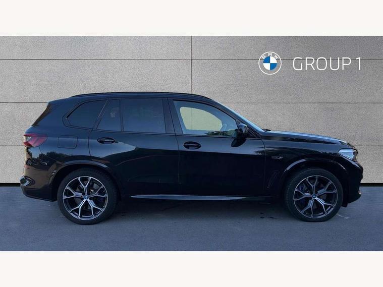 20GB hard disc drive (HDD) memory, Active guard plus, Attentiveness assist, Automatic tailgate with top hinged section open and manual bottom hinged section, BMW ConnectedDrive online services, BMW digital live cockpit professional - 12.3" digital instrument panel and 12.3" CID, with touch/voice command, BMW legal emergency call, BMW Teleservices, Brake force display, Brake pad wear indicator warning light, Cruise control with brake assist, eDrive button to select between AUTO eDrive, MAX eDrive and SAVE Battery settings, Front/rear park distance control, Lights on warning, Oil sensor for level and grade, On board computer inc. average speed, fuel consumption, liquid crystal Info display, journey computer, outside temperature display, personal profile, Service interval indicator, Speed limit info display, Speed limiting function, 5 metre AC Fast charge cable, Adaptive 2-axle air suspension, Double VANOS, Double wishbone front axle, Drive performance control with ECO PRO comfort + sport mode, eDrive exterior sound, Eight speed steptronic sport automatic transmission and gearshift paddles on the steering wheel, High precision injection, Petrol Particulate Filter, Safety battery terminal clamp, Standard Charging cable (Mode 2) for home socket, Twin scroll turbocharger with Valvetronic, DAB Tuner enables digital radio reception, Favourite buttons, USB connection, USB type A 1.5A in cupholder, USB Type C 3A in centre armrest, Active Air Stream kidney grille with high-gloss chrome, Adaptive air flap control bar in high-gloss black, Automatically dimming rear view mirror, BMW Individual high gloss black shadow line roof rails, Body colour bumpers, Body colour door handles, Dynamic brake lights with LED technology, Exhaust tailpipes - single, left and right with Chrome finisher, Follow me home headlight function, Front and rear electric windows with open and close fingertip control, anti trap facility and comfort closing, Heated windscreen washer jets, High beam assistant, High gloss black outer and central air intakes on front bumper with pearlescent chrome finish, High gloss black Side elements, LED daytime running lights, LED rear lights, Left charging flap on the front side, M aerodynamic body styling, M designation on left and right front side panels, Pearlescent chrome front grille bars, Rain sensor with automatic headlight activation and windscreen wiper control, Rear side wing doors, Satin aluminium side window graphic, Third brake light in rear spoiler, Variable intermittent rear wash/wipe, Welcome light carpet, X5 on left tailgate, xDrive designation on right tailgate, 12V - Power sockets with 2x centre console and 1x luggage compartment, 3 seat bench in 2nd row, 40:20:40 split folding rear seats, Ambient interior lighting with 6 pre-designed selectable lights including dynamic function, Centre and rear interior light, Child seat ISOFIX attachment with rear outer seats includes top tether, Compartment in front of cupholder, Electric front seat adjustment with driver and front passenger memory function, Electrical steering column with adjustable height and length with activation and control on the steering column, Foldable rear centre armrest with 2 cupholders and storage compartment, Front and rear cupholders x 2, Front and rear door pockets, Front and rear door sill inlays with illuminated BMW M designation, Front and rear side armrest integrated into door trim, Front footwell lights, Front reading lights, Light inside glove compartment, Lockable glove compartment, Luggage compartment floor panel with integral storage tray, Luggage compartment lighting, M leather steering wheel, M specific key, M specific pedals, M specific steering wheel, M specific velour floor mats, Make-up mirror lights, Multifunction controls for leather steering wheel, Multifunctional hooks, Rear head restraints, Seat back with flap pocket, Securing rings in luggage compartment, Storage bins on all doors, Storage tray and compartment with cover in centre console, Sunvisors with illuminated vanity mirrors, Toolkit located in luggage compartment, Connected Package Professional - X5 xDrive45e, Expanded exterior mirror pack - X5/X5 M, Non-smokers pack - X5, Airbags - driver/front passenger, rear and side, first and second row seats head airbags, front passenger seat airbag deactivation + knee airbag, Anti-lock braking system (ABS), Automatic Stability Control (ASC), Brake drying, Brake energy regeneration, Brake fade compensation, Braking pre-tensioning, Child proof locking system in rear door, Cornering brake control (CBC), Crash sensor activating central locking release, hazard warning lights, fuel cut off, interior lighting + activation of safety battery terminal clamp, Deformation zones - front and rear with door reinforcements and bumpers up to 2.5 mph, DSC - Dynamic Stability Control, Dynamic brake control, Dynamic Traction Control - DTC, Electromechanical parking brake with automatic drive away release and auto hold function, Electronic brake force distribution, Front and rear seatbelts with seatbelt stopper, seatbelt tensioner for front and outer rear seats and belt force limiter, Front head restraints with anti-whiplash, Height adjustable front seatbelts, Hill start assistant, Integrated brake system, M Sport braking system in blue high gloss + blue painted brake calipers with M designation, Mechanical child proof lock on rear doors, Passive protection for pedestrians, Seat occupancy detection for driver and passenger side, Side impact protection, Three 3 point inertia reel seatbelts, Two tone horn, Tyre pressure monitoring system, Ventilated front and rear disc brakes, Warning triangle and first aid kit, Closing system with central locking, Driver and front passenger door centre lock switch, Locking wheel bolts, Thatcham 1 alarm system with remote control and engine immobiliser, Start/stop toggle diamond shaped trim finisher in pearl chrome,
