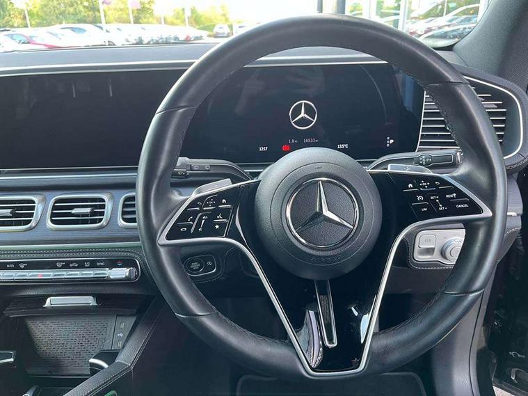 12.3 High resolution wide screen cockpit display with choice of three display styles Classic, Progressive or Sport and unique ambient lighting setting, 360 degree camera, Active lane keeping assist, Active parking assist with PARKTRONIC, Attention assist, Blind spot assist, Brake wear warning display, Direct steer speed sensitive steering, DYNAMIC SELECT with a choice of driving modes (ECO, Comfort, Sport and Individual), Easy-pack tailgate - Powered opening/closing automatically, ECO start/stop function, Geofencing, Hard-disk navigation, MBUX augmented reality for navigation and live traffic, MBUX voice control activated by keywords "Hey Mercedes", Mercedes Benz emergency call system, Mercedes me connect - vehicle set up and monitoring, Outside temperature display, Pre-installation for digital key transfer, Remote boot release, Service indicator (ASSYST), Smartphone integration with Apple CarPlay and Android auto, Speedtronic cruise control with speed limiter, Status display for rear seat belts in instrument cluster, Traffic sign assist, Trip computer in multifunction display showing current fuel consumption, Wireless charging, 85 litre fuel tank, 9G TRONIC 9 speed automatic transmission, Airmatic air suspension with adaptive damping system, Diesel particulate filter (DPF), Mild Hybrid starter alternator, Additional USB connection, Bluetooth interface for hands free and audio streaming, Burmester surround sound system, DAB digital radio tuner, Front and rear USB ports, Sound personalisation, Adaptive brake lights, Aluminium look, illuminated running boards with rubber studs, AMG bodystyling front and rear aprons, Auto headlights, Automatically dimming rear view mirror, Body colour door mirrors, Body coloured bumpers, Electric windows with one touch opening/closing and obstruction sensors, Electrically adjustable, heated, folding exterior mirrors, Exterior styling - front bumper, radiator grille and front air intakes, Heat insulating dark tinted glass, LED 3rd brake light, LED daytime running light signet, LED rear lights, Multibeam LED headlights with adaptive highbeam assist plus, Radio aerial integrated into rear window, Rain sensing windscreen wipers, Rear side wing doors, Rear wiper, Roof rail system, Top surround of side windows in polished aluminium, Transparent Bonnet, Visible twin pipe exhaust system integrated into bumper, Waistline in polished aluminium, 3 spoke nappa leather multifunction sports steering wheel, 3rd row of seats for 2 people, 4 way adjustable front head restraints and 2 way rear head restraints, 40:20:40 split folding rear seats, AMG floor mats with AMG lettering, Automatic child seat recognition sensor, Black fabric roof liner, Electric height/reach adjustable steering column, Electrically adjustable rear seats, Front centre armrest with stowage compartment and illuminated grab handles, Gearshift paddles on steering wheel, Glove compartment - lockable, air conditioned and illuminated, Heated front seats, Illuminated door sill with Mercedes Benz lettering, Interior lighting - 64 colour Ambient lighting, Leather upholstery, Luggage compartment cover, Seat occupancy sensor for front passenger seat, Second row three seats, Single front passenger seat, Sports pedals in brushed stainless steel with rubber studs, Sunvisors with illuminated vanity mirrors, THERMATIC 2 zone automatic climate control, Touchpad, Keyless go comfort package with comfort opening - GLE, Memory package with 4 way lumbar support - GLE, Active bonnet, Active brake assist with HOLD function and brake e-drying function, Airbags - driver and front passenger, front sidebag, pelvis bag and window airbags, Anti-lock braking system (ABS), Black seat belts, Childproof locks manually operated for rear doors and electrically operated for rear power windows, Drivers knee airbag, Electronic parking brake, Electronic Stability Programme (ESP), ISOFIX child seat points with automatic child seat recognition, Perforated front brake discs and brake calipers with Mercedes-Benz lettering, Pre safe impulse side, Three point rear seat belts, Tyre pressure monitoring system, Warning triangle and first aid kit, Alarm system/interior protection/immobiliser, Central locking with interior switch, automatic locking and crash sensor with emergency opening function, Chrome surround electric key, Dashcam, Guard 360 degree vehicle protection plus, Dashboard and door beltlines in ARTICO man made leather, Trim - Centre console, anthracite open pore oak wood trim, 20" AMG 5 twin spoke light alloy wheels, TIREFIT with tyre inflation compressor,