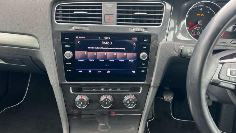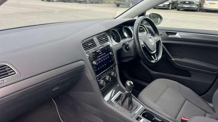 'Lights On' Reminder warning buzzer, ACC - Adaptive cruise control with front assist, forward collision warning, distance monitoring, city emergency brake and speed limiter, Bluetooth telephone and audio connection for compatible devices, Brake pad wear indicator warning light, Driver alert system, Driver profile selection, Driving Mode Selection with four preset modes - Eco, normal, sport or individual modes, Instrument cluster in white, Multifunction computer with visual gear change recommendation for fuel consumption, Power assisted speed sensitive electro-mechanical steering, Push tank flap, Speed limit display, Speedo, rev counter, electronic odometer, trip, service interval display, exterior temperature and fuel gauge, Stop/start system, Warning buzzer and light for front seatbelts unfastened, Battery regeneration during braking, XDS electronic differential lock, Composition media system, DAB Digital radio receiver, Driver Personalisation profile selection, MP3/WMA compatability, Multi device interface (MDI) with USB connection, Personalisation 1.1 profile for media, Premium USB cable in choice of either Apple or Android smartphone compatibility, SD card slot, SMS Functionality, USB and SD card connectivity, Black front air intake and radiator grille with chrome insert, Black rear diffuser, Body colour bumpers, Body colour door handles, Body colour door mirrors with integrated indicators, Dusk sensor + automatic driving lights, Electric front windows, Electric rear windows, Electrically adjustable and heated door mirrors, Fully galvanised body, Heated rear windscreen, Hidden exhaust pipe, High level 3rd brake light incorporating LED Technology, LED daytime running lights, LED front fog lights with static cornering light function, Rear fog lamp, Rear tinted glass 65% light absorbing from B pillar backwards, Rear window aerial, Rear window wash/wipe with intermittent wipe, Reflectors in all doors, Tailgate with integrated rear roof spoiler, Windscreen wipers/ intermittent wipe + 4 position delay, 12V socket in luggage compartment, 3 rear headrests, 4 load lashing points in luggage compartment, 60/40 split folding rear seat backrest, Auto fold down lever in rear seat backrest, Bag hook in luggage compartment x 2, Cooled glovebox, Cupholder cover, Dust/pollen filter, Front and rear reading lights incorporating LED technology, Front centre armrest with storage compartment and two rear air vents, Front seat back storage pockets, Grab handles front x 2, rear x 2 with integrated coat hooks, Height and reach adjustable steering wheel, Illuminated vanity mirrors, Instrument lighting white adjustable panel illumination, Interior light delay, Isofix preparation for 2 rear child seats, Load through provision with rear centre armrest and cupholders x2, Luggage compartment lighting, Overhead storage box, Passenger underseat drawer, Pearl grey headlining, Storage box in luggage compartment, Storage compartment in roof console with cover, Storage compartments in centre console, Storage compartments in front doors, Storage compartments in rear doors, Stowable luggage compartment cover, Sun visors, Variable boot floor, height adjustable and removable, Convenience Pack - Golf, Light and Sight pack - Golf, Mirror pack - Golf, 3 rear three point seatbelts, Airbags - Driver's and front passenger's, curtain airbag, Driver's knee, front side impact and passenger's airbag deactivation switch, Anti-lock Braking System (ABS) with Hydraulic Brake Assist (HBA), Automatic post collision braking system, Child locks on rear doors, Driver/Passenger optimised head restraints, Electronic parking brake with auto hold, Electronic stability control (ESC) including Electronic differential lock (EDL) and ASR (Traction control) with deactivation via infotainment system, Front ventilated disc brakes and rear disc brakes, Pre crash preventive occupant protection, Three point height adjustable front seatbelts with tensioners, Tyre pressure loss indicator, Alarm with interior protection and deactivation via infotainment system, Electronic engine immobiliser, Remote central locking with 2 remote folding keys, Brushed dark silver decorative inserts in dash and door panels, Chrome plated air vent surround, Chrome plated electric mirror adjustment light switch surround, Polar night black centre console, Steel space saver spare wheel,
