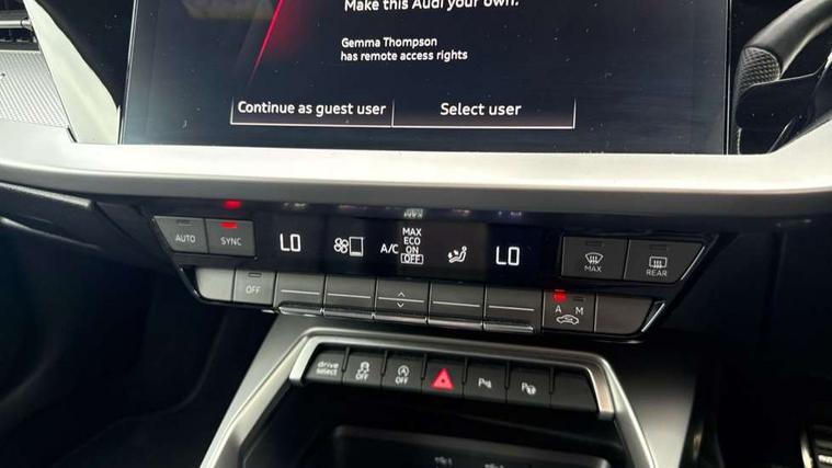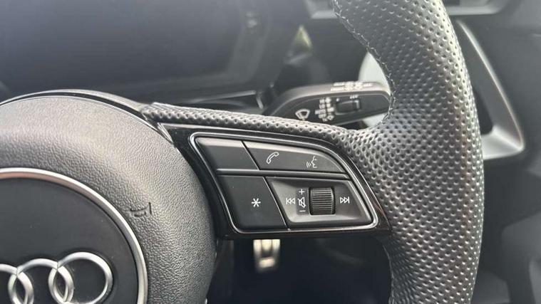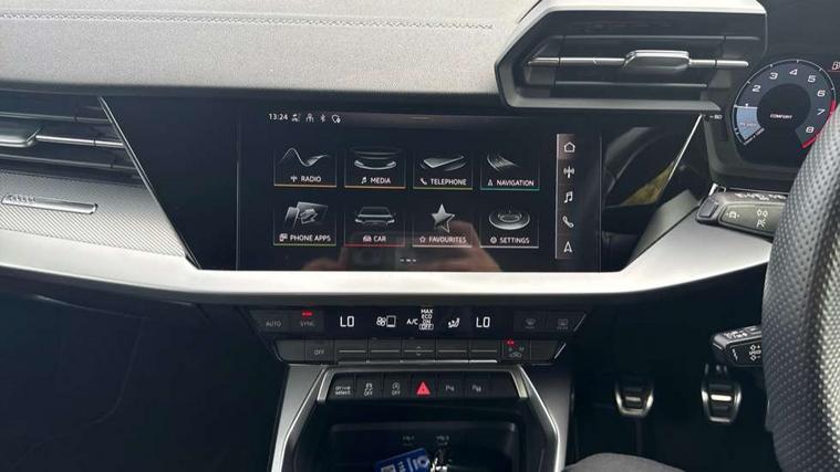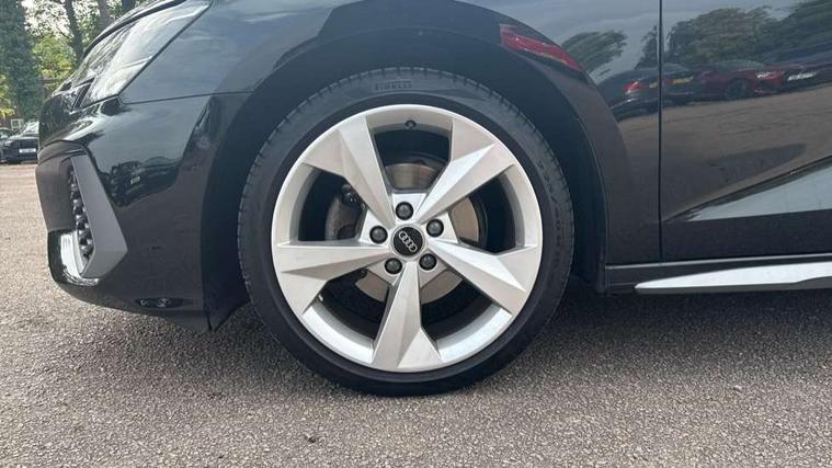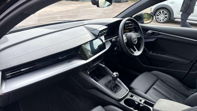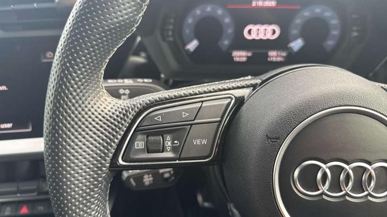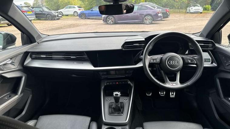 Audi drive select (Auto, Comfort, Dynamic and Individual), Audi smartphone interface, Audi Virtual Cockpit - 10.25" digital and colour instrument cluster, Automatic start/stop system with recuperation, Bluetooth interface, Collision avoidance assistant, Cruise control, e-Call (emergency call), Electromechanical power speed sensitive steering, Lane departure warning system, MMI Navigation Plus with high resolution 10.1" colour touch screen display, Rear parking sensors, Service indicator, Trip computer, Voice control system with natural language interaction, 2xUSB-C connection with data and charging functions, 6 passive loudspeakers, DAB Digital radio, 3rd brake light, Acoustic glass windscreen, Aluminium window trim, Auto dimming frameless rear view mirror, Electrically adjustable/heated/folding/dimming door mirrors with kerb view includes integrated LED indications + kerb view function for passenger side, Front electric windows, Illuminated aluminium inserts front door sills with S logo, LED daytime running lights, LED headlights with LED rear lights and dynamic rear indicators, Light and rain sensors, Privacy glass - dark tinted rear window, rear door and side windows, Rear electric windows, Rear side air outlets in grained matt black, Rear side wing doors, Rear wiper, S line bumpers, S roof spoiler, 12V socket and storage compartment in front centre console, 3 seat bench in 2nd row, 40/20/40 split folding rear seat bench with cupholder, Black cloth headlining, Dual zone electronic climate control, Front and rear centre armrest in leather, Front and rear headrests, Front/rear floor mats, Height and reach adjustable steering wheel, Illuminated vanity mirror, Interior lighting - glove compartment light and right hand side, Luggage compartment floor covering, Manual boot compartment lid, Manually adjustable front seats, Seat side bolsters, Single front passenger seat, Stainless steel pedals and front footrest in black, Twin leather upholstery with front sports seats S embossed logo, Aluminium interior elements pack - A3 Sportback, LED interior lighting pack - A3 Sportback, S line styling pack - A3 Sportback, 3x3 point rear seat belts, Audi pre sense front, Driver and front passenger airbag with passenger airbag deactivation, Electronic Stabilisation Control (ESC) including ABS, ASR and EDL, First aid kit with warning triangle and 2 safety vests, Front side airbags with head airbags and interaction airbag, Pre-sense front with pedestrian and cyclist detection, Seatbelt monitoring, Tyre pressure loss indicator, Anti theft alarm, Anti-theft wheel bolts, Electronically operated child lock, Immobiliser, Remote control central locking, Accent surfaces in the dashboard and centre console in platinum grey silk effect paint finish, Dark spectrum aluminium inlays,