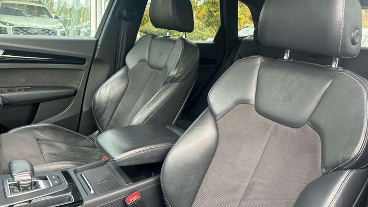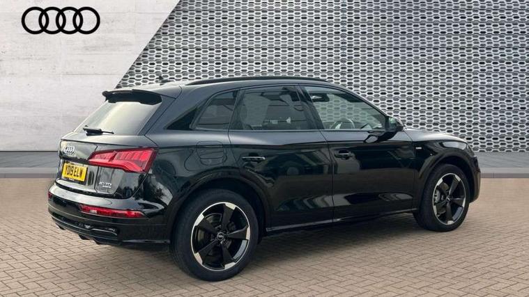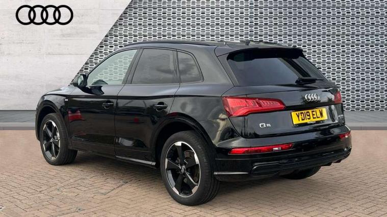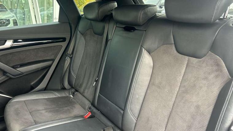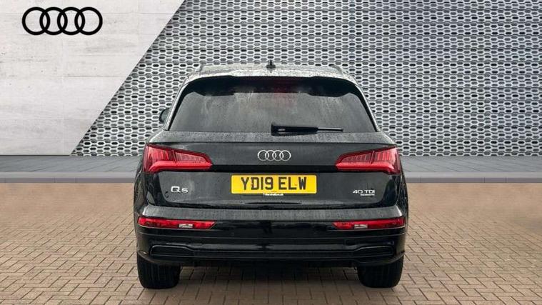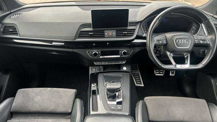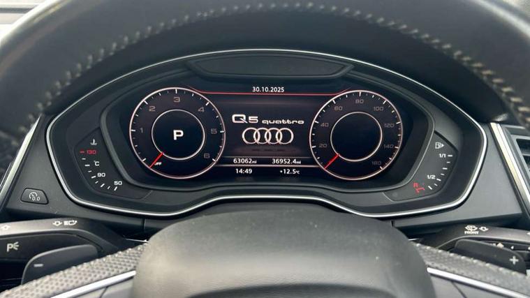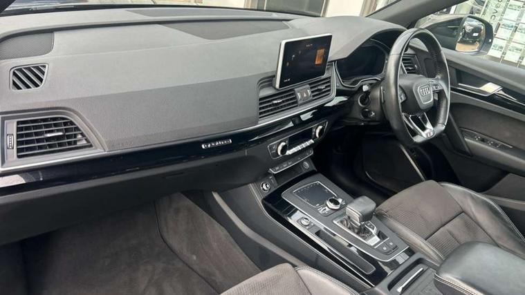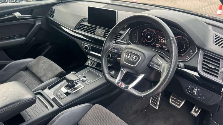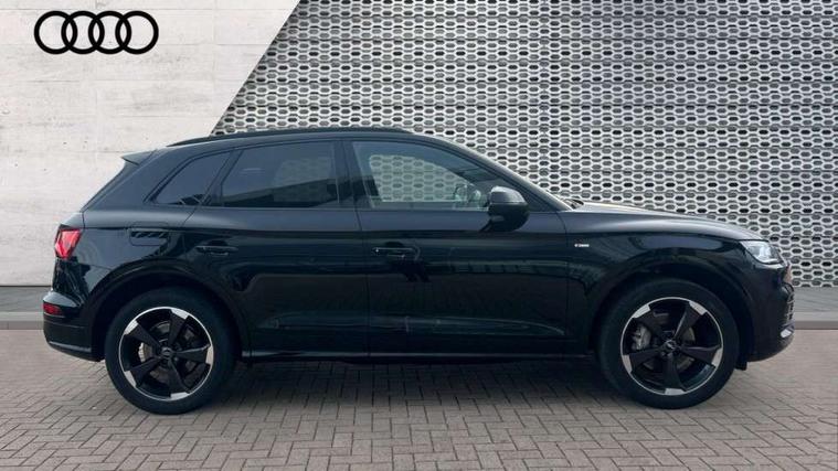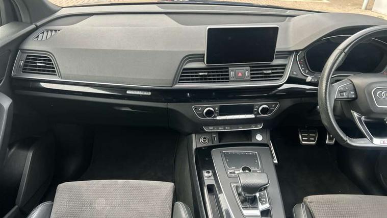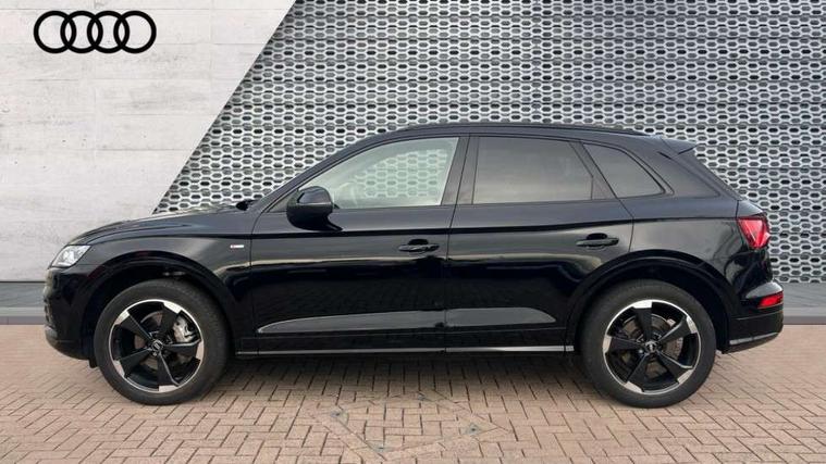 7" Colour driver information system, Audi drive select, Audi parking system plus with front and rear sensors, Audi smartphone interface, Electro - mechanical power assisted steering, MMI Navigation, Mobile telephone preparation - bluetooth interface, Power tailgate, Service interval indicator, Voice control system, Diesel particulate filter, 2 x USB charging port with aux input socket, 2x SD card slot, CD player, DAB Digital radio, MMI radio plus with 7" colour MMI screen and MMI controller, Acoustic windscreen, Air inlets in matt titanium black with blades in matt aluminium silver, Auto dimming rear view mirror, Automatic headlight levelling, Black roof rails, Body colour bumpers, Body colour rear diffuser with matt aluminium silver surrounds, Body colour underbody protection, Chrome exhaust tailpipe, Front and rear electric windows, High beam assistant, Light and rain sensor for auto activation of lights and windscreen wipers, Loading sill protector in stainless steel, Privacy glass with front acoustic glazing, Rear wiper, Titanium black door mirror housings, 3 rear headrests, 3 zone climate control, 40:20:40 split folding rear seat with rear centre armrest, Black cloth headlining, Contrast stitching on seats, steering wheel and gear lever gaiter, Front centre armrest, Front sports seats, Front/rear floor mats, Height adjustable front head restraints, ISOFIX child seat mounting and top tether, Luggage compartment carpet, Perforated leather gearknob, Removable luggage compartment floor, Stainless steel pedals, Sunvisors with vanity mirrors, Trunk roller cover, Non Smokers pack, Titanium black styling pack - Q5, 3 point seatbelts on all seats, 6 airbags - Driver, front passenger, curtain and side airbags, Electromechanical parking brake, Electronic stabilisation control including ABS, ASR and EDL, Front passenger airbag deactivation, Hill descent control, Hill hold assist, Multi collision brake assist, Pop-up bonnet for pedestrian protection, Pre sense city, Seat belt force limiter, Seatbelt monitoring, Tyre pressure warning, Warning triangle and first aid kit, Anti theft alarm, Anti-theft wheel bolts, Keyless Go access/ignition system, Remote central locking, Black piano finish inlays, 20" 5 arm rotor design sport alloy wheels in gloss anthracite black, diamond cut finish, Tool kit,