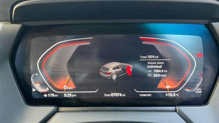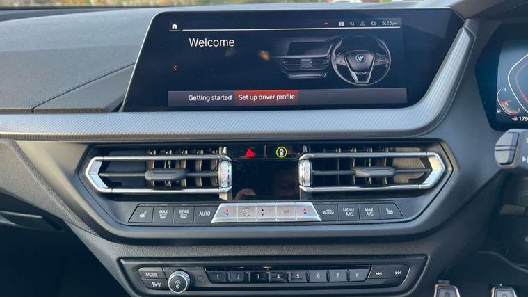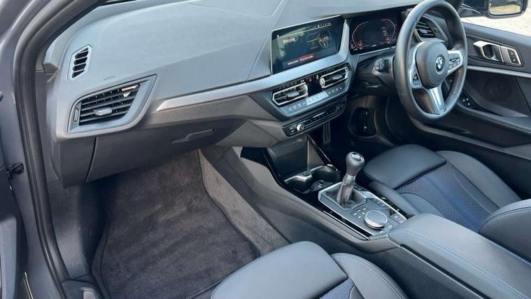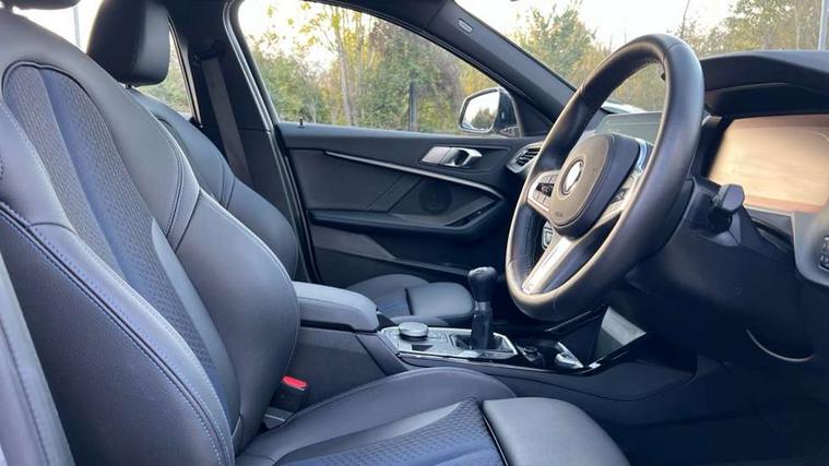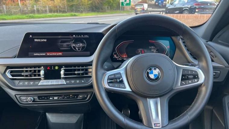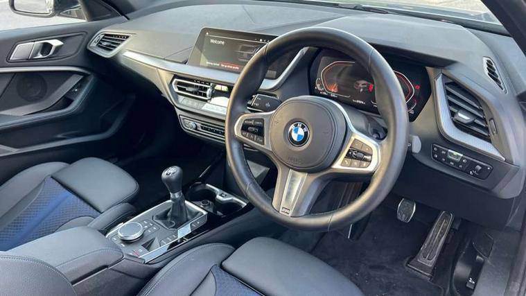 Active guard plus, Attentiveness assist, BMW ConnectedDrive online services, BMW Teleservices, Check Control warning system for monitoring of lights and door/luggage compartment open warning, Cruise control with brake assist, Eco pro mode, Front axle single joint with specific axle kinematics to minimise drive influences on steering + provide increased rigidity agile driving behaviour, Integrated owners handbook, Lane departure warning system, Oil sensor for level and grade, On board computer, Optimum shift indicator, Personal Profile, Pull away assistant, Rigidly mounted rear subframe - Multi link construction with separate spring / damper configuration and excellent driving characteristics, Speed limit Info including no-overtaking indicator, Speed limiter, Aluminium lightweight construction, Anti roll bar front and rear, Balancer shaft, Double VANOS twin scroll turbocharging system, Drive Performance Control, Electronic differential lock, High precision injection, M sport suspension, Petrol Particulate Filter, Twin tube gas filled shock absorbers with degressive characteristic curve, VALVETRONIC engine management, DAB Digital radio, Auto dimming rear view mirror, Automatic headlight beam throw control, Automatic windscreen wipers and automatic headlight, Body colour door handles, Body colour mirror caps, Body colour roof trims, Chrome 'M' logo side designation, Chrome exhaust twin tailpipes round 90mm in left, Chrome kidney grille frame with Satin Aluminium struts, Direction indicator side lights in exterior mirrors, Fading support, Folding side mirrors with auto dimming/folding wing mirrors with auto dimming, Follow me home headlights, Front and rear bumper system with replaceable deformation elements, Front and rear electric windows with open and close fingertip control, anti trap facility and comfort closing, Front door sill finishers in black plastic with M designation in metallic look, Green tinted heat protection glazing, Heated, electrically adjustable exterior mirror aspheric on driver side, convex on passenger side, High gloss shadowline window frame, Recess cover mirror frames and B/C pillar embelisher trim, High level third brake light, Integrated front windscreen with washer jets, LED daytime running lights, LED eyebrow turn indicators, LED front fog lights, LED Headlights, Lightweight engineering, Matt black air guide grilles, Matt black wheel arch trim, Model designation on electric bootlid, Nearside reverse light in rear light cluster, Preparation for high beam assistant, Rear fog lights, Rear side wing doors, Rear window wiper, Shark fin antenna, Trailer stabilisation logic, Visible VIN plate, Welcome lighting, 12V power socket in front centre console with blanking plug, 3 rear seat head restraints, 3 seat bench in 2nd row, 3 spoke sports leather steering wheel in black leather with black stitching and decorative finisher in pearl chrome, specific M badge + leather knob, Anthracite headlining, Black boot net with lashing eyes, Cargo function on 2nd seat row, Child seat ISOFIX attachment for two outer rear seats and front passenger seat with anchorage points, Conditioned based service, Driver and front passenger seat heating, Folding rear clothes hook, Four grab handles integrated in roof lining, Front and rear door pockets with bottle holders, Front and rear side armrest integrated into door trim, Front armrest, Front sports seats, Gearshift lever with M designation, Glove compartment, Height adjustable front head restraints, Luggage compartment for bag hooks on left and right, foldable luggage compartment liner and four lashing eyelets, Manual adjust steering wheel, Multi-function controls for steering wheel, Single front passenger seat, Storage compartment in centre console, Sun visors with vanity mirrors and insert tab, Two front centre console cupholders, Two zone automatic air conditioning, Velour floor mats, Additional interior lighting pack - 1 Series, BMW live cockpit professional pack- 1 Series, Connected pack professional - 1 Series, Interior lights pack - 1 Series, M Sport exterior styling aerodynamics pack - 1 Series, 2 tone horn, 3 point seatbelts on all seats, front pyrotechnic belt tensioners, stopper and belt force limiters, rear coded belt buckles, Airbags - Front driver/passenger, front and rear curtain head protection, front side, manual deactivation of front passenger airbag, Anti lock braking system (ABS) with brake assist, BMW emergency call, Brake drying, Braking readiness, Child proof locking system in rear door, City braking function, Comfort modes, Cornering brake control, Crash sensor activating central locking release, hazard warning lights, fuel cut off, interior lighting + activation of safety battery terminal clamp, Driver and front passenger seat belt security check, Dynamic stability control + (DSC+), Dynamic Traction Control - DTC, Electrically operated hand brake, Front and rear disc brakes, Seatbelt warning, Side impact protection, Tyre pressure monitoring system, Warning triangle and first aid kit, Central locking switch for all doors, fuel filler cap and luggage compartment, Deadlocking function system to all doors, Drive away locking system on all doors and luggage compartment with de-activated in iDrive settings, Locking wheel bolts, Remote control with integrated key with High-gloss Black inlay and M designation and 1 button for open/ close lock, window, open luggage compartment, Start/stop button illuminated in centre console with keyless engine start and auto start stop deactivation button, Thatcham Cat.1 alarm and immobiliser, Wheel slip limitation close to the actuator (ARB), Contrast stitching on instrument panel, Electrically powered 12V compressor, Reduced rolling resistance tyres,