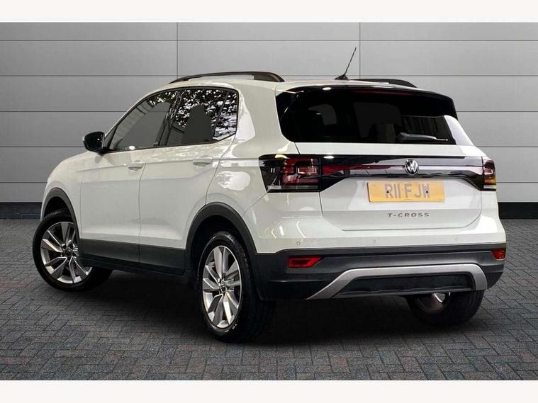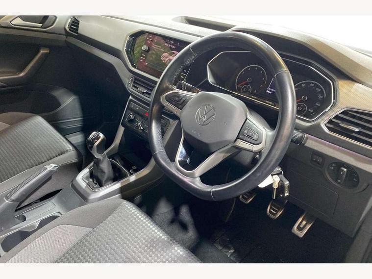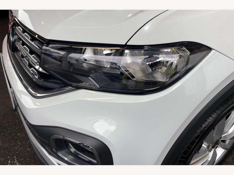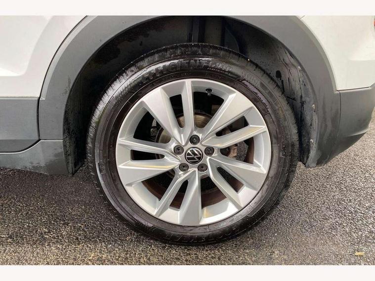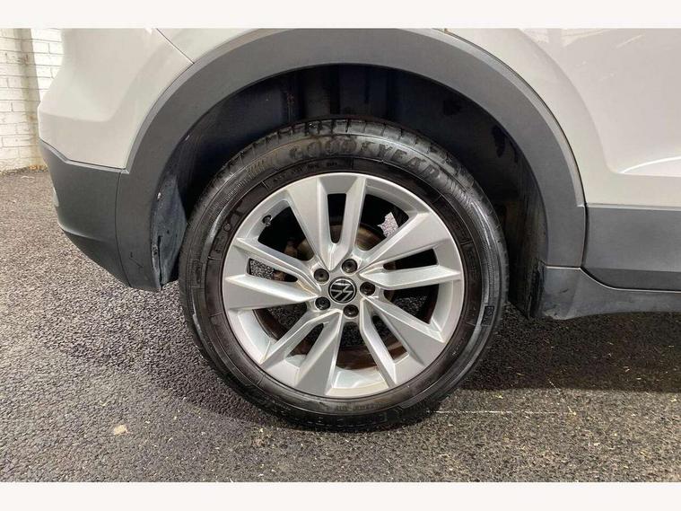 'Lights On' Reminder warning buzzer, Adaptive cruise control including front assist, forward collision warning, autonomous emergency braking, speed limiter, Blind spot monitoring, Bluetooth telephone and audio connection for compatible devices, Car information display, Driver alert system, eCall emergency call system, Lane assist, Low washer fluid warning light, Multifunction computer with visual gear change recommendation for fuel consumption, Operating permit alteration, Power assisted speed sensitive steering, Speedo, rev counter, electronic odometer, trip, service interval display, exterior temperature and fuel gauge, Stop/start system, Warning sound and light for doors and tailgate open, Warning sound and light for front seatbelts unfastened, We Connect Go Dongle, Wireless Car net app connect with Apple CarPlay, combined functionality of Apple CarPlay/Android Auto and MirrorLink, Battery regeneration during braking, Misfuel prevention device, 2x USB connection with USB charging sockets and in rear centre console, DAB Digital radio receiver, Diversity antenna for FM reception, Multi device interface (MDI) with USB connection, Music playback - MP3, WMA and AAC files, Premium USB cable for Apple or Android smartphone compatibility, Simultaneous pairing of 2 compatible mobile devices, Title and cover art display, 3D active badge on B-pillar, Active door sills, Active sill panel trims, Automatic hazard lights activation under emergency braking, Black roof rails, Body colour door handles, Body coloured bumpers, Dusk sensor + automatic driving lights, Electrically foldable, adjustable and heated door mirrors with reverse activated kerb view adjustment on passenger's side, Front and rear electric windows, Front fog lights with static cornering function, Galvanised body, Heated rear window, High level 3rd brake light, Lower door sills and door pillars in black, Radiator grille with high gloss surface and chrome strip, Rear fog light on one side, reversing light on both sides, Rear lights incorporating LED technology, Rear side wing doors, Rear tinted glass 65% approx light absorbing from B pillar backwards, Rear window aerial, Rear windscreen washer and wiper with interval delay, Reflectors in all doors, Tailgate with integrated roof spoiler, Windscreen wipers/ intermittent wipe + 4 position delay, 12V Accessory socket in centre console, 3 rear head restraints and 3 rear three point seat belts with ECE label, 3 seat bench in 2nd row, 60/40 split folding rear seat backrest, Ambient lighting and sourround lighting, Brushed stainless steel pedals, Drawer under drivers seat, Driver and front passenger sunvisor with vanity mirror, Driver's sunvisor with ticket holder, Dust and pollen filter, Front + rear carpet mats, Front and rear reading lights X 2, Front centre armrest with storage compartment, Front seat back storage pockets, Front seats with adj lumbar support, Glovebox, Heating and fresh air system with 4 stage blower, Height/reach adjust steering wheel, Instrument lighting white adjustable panel illumination, Interior light with delay, Isofix child seat preparation for 2 rear child seats, Luggage compartment cover, Luggage compartment lighting, Moveable and foldable Rear bench seat, Single front passenger seat, Storage compartment in drivers and front passengers door, Three spoke multi-function leather trimmed steering wheel and gearknob, Trapeze cloth upholstery, Variable boot floor, Winter pack - T-cross, Anti-lock Braking System (ABS) with Hydraulic Brake Assist (HBA), Automatic post collision braking system, Driver and front passenger safety-optimised head restraints, Drivers and Front Passengers airbags with front passengers airbag deactivation switch, ESC with EDL, ASR, EDTC and trailer stabilisation function, Extended and proactive pedestrian protection, Front and rear curtain airbags, Front seat side impact airbags, Height adjustable 3 point automatic front seatbelts with pretensioners, Hill start assist, Pre crash preventive occupant protection, Rear door child safety locks, Rigid safety cell with front and rear crumple zones, Single torn horn, Tyre pressure loss indicator, Volkswagen roadside assistance, Alarm with interior protection and deactivation via infotainment system, Child security locks in rear doors, Electronic engine immobiliser, Remote tailgate unlocking using key fob, Decorative strips in doors in matt silver/ center console, 17" Clayton alloy wheels + anti theft wheel bolts, Breakdown kit,