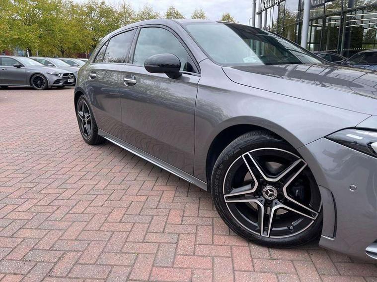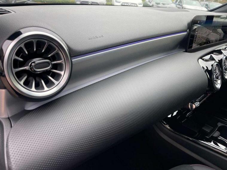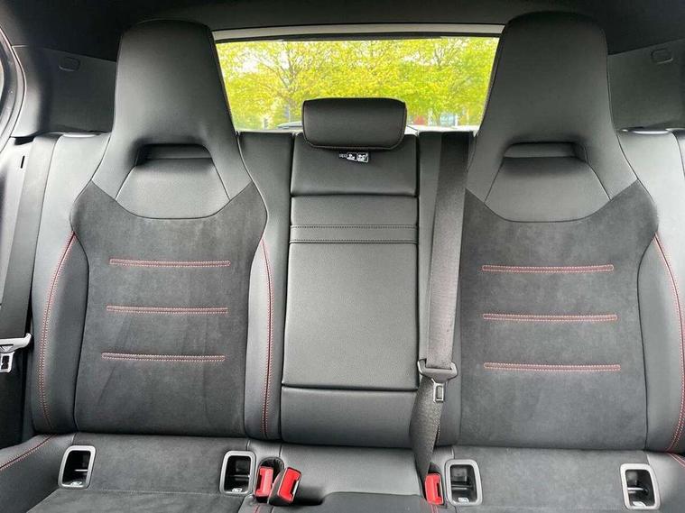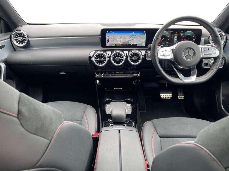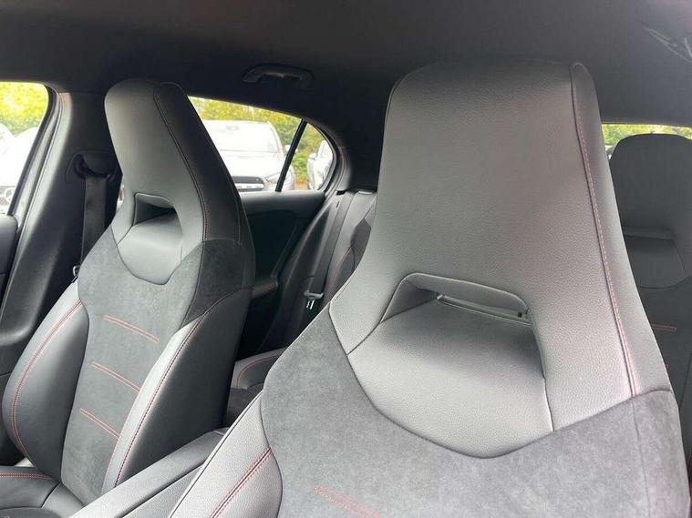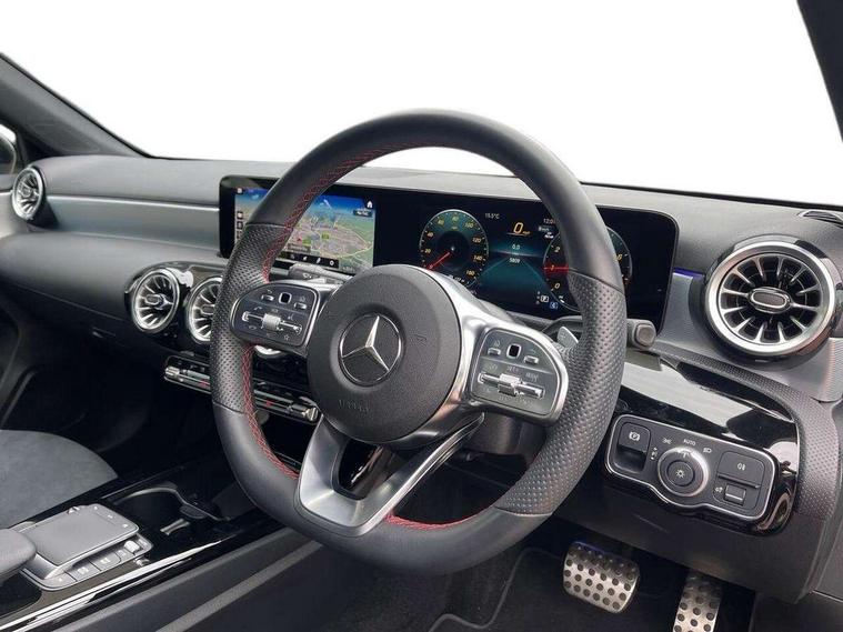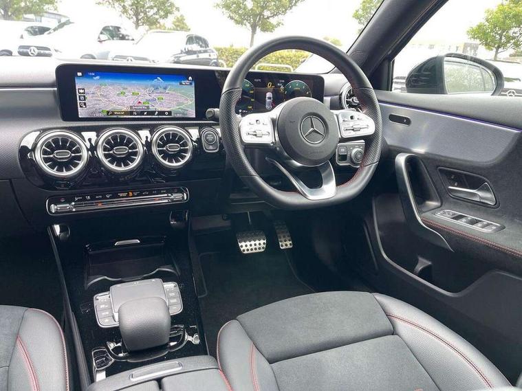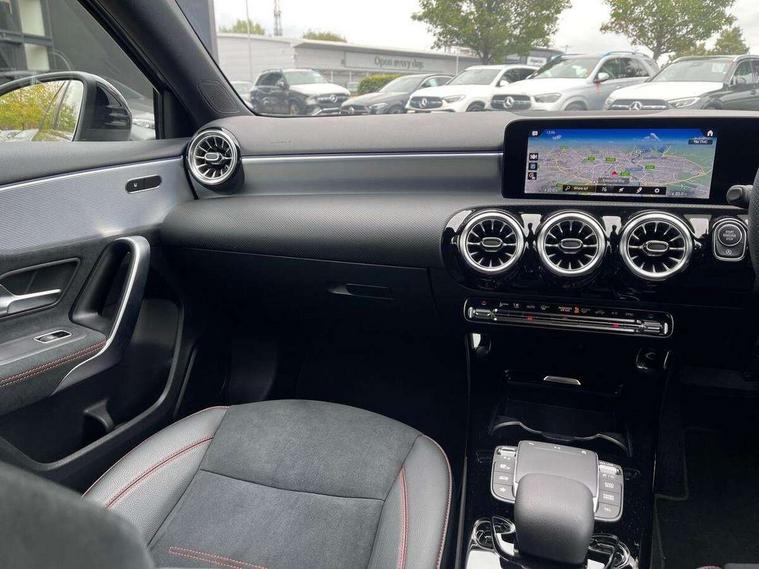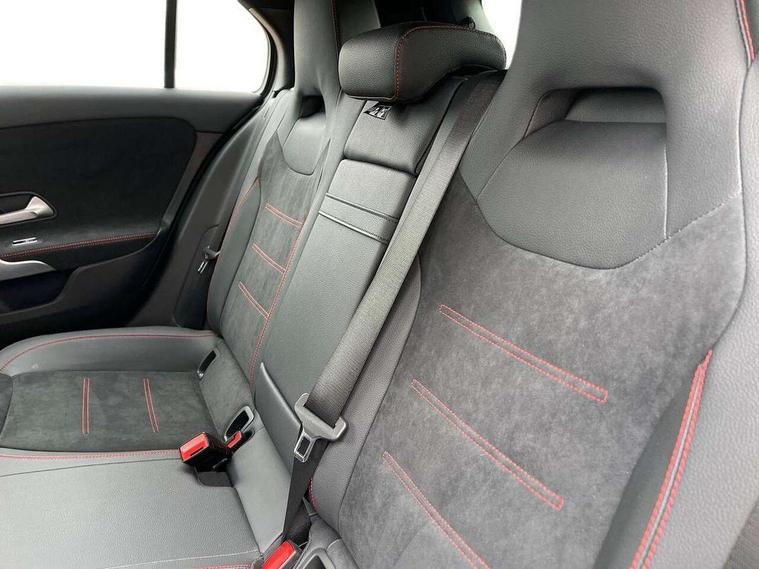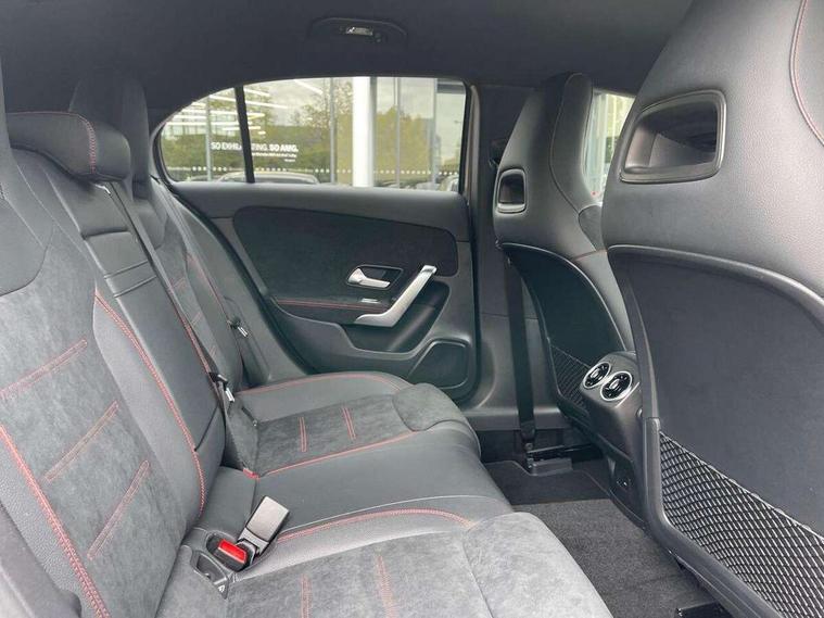 10.25" Digital instrument cluster display screen, 10.25" media display, 180 degree rear view camera with parking guidelines, Active parking assist with visual and audible warning of detected obstacles, Attention assist, Brake pad wear indicator warning light, Car wash mode, Cruise control + speed limiter, Direct steering, Dual bluetooth interfaces, DYNAMIC SELECT with a choice of driving modes (ECO, Comfort, Sport and Individual), ECO start/stop function, Fluid level warning indicator for fuel, oil, coolant and washer fluid, Hard-disk navigation, Hey Mercedes Voice activation, Lamp failure indicator, Lane keeping system, Mercedes me connect including emergency call system, accident recovery, breakdown and maintenance management, Mercedes me remote services, Outside temperature gauge, Owners manual in English, Pre-installation for private car sharing, Preinstallation for Mercedes Benz link, Service indicator (ASSYST), Smartphone integration with Apple CarPlay and Android auto, Speed limit assist, Speed sensitive power steering, Trip computer, Ultrasonic sensors positioned in the front and rear bumpers, Lowered comfort suspension, Rear axle torsion beam, 2 USB ports (type C) in rear stowage compartment and one in front of center console, 6 speakers, DAB Digital radio, MBUX multimedia system with DAB digital radio and touchpad including satellite navigation, Mercedes-Benz sound system - 100W, 4 Electric Front and Rear windows, Adaptive brake lights, AMG bodystyling - Front apron with splitter in chrome, rear apron with chrome trim and chrome visible trim elements in tailpipe, Automatic headlights, Black weather strip, Body colour bumpers, Body colour door handles with chrome inserts, Body colour side skirt, Electric adjustable and heated door mirrors with integrated LED side indicators, Exclusive diamond radiator grille, Exhaust system - Twin visible tailpipes in polished stainless steel, Headlamp assist automatic headlamp activation, Heated glass rear windscreen + timer control, LED High level third brake light, LED high performance headlamps with integrated LED daytime running lights, LED tail lamp, Privacy glass, Radio aerial, Rain sensing windscreen wipers with two sensitivity settings, Rear fog lights, Rear side wing doors, Rear wiper, 3 seat bench in 2nd row, 3 Spoke flat bottom leather multi function steering wheel with perforated leather in grip area, 40:20:40 split folding rear seats, Artico man-made leather/Microfibre Dinamica upholstery with red contrast stitching, Auto Mercedes-Benz child seat recognition sensor, Black air vents with surround in silver chrome, Black roof lining, Brushed stainless steel sports pedals with rubber studs, Controller on centre console with chrome surround, Floor mats with AMG lettering, Front centre armrest with storage compartment, Front seat backs luggage nets, Galvanished gear shift paddles on steering wheel, Heated front seats, Height/reach adjustable steering column, Illuminated Mercedes Benz lettering front door sills with changeable cover, Interior lighting - 64 colour Ambient lighting, Interior mirror with reading lamps in black and frameless, Manual height adjustable front seats, Rear armrest with 2 cupholders, Rear head restraints, Seat occupancy sensor for front passenger seat, Single front passenger seat, Sports seats with integrated headrests, Stowage compartment in centre console with retractable cover, Sunvisors with illuminated vanity mirrors, Touchpad on center console, Twin front cupholders, Two zone thermotronic luxury automatic climate control, Light and sight pack - A Class, Mirror package - A Class, Night pack - A Class Saloon/Hatchback, Seat comfort pack - A Class, 3 rear 3 point seatbelts, ABS with Brake Assist, Active bonnet, Active brake assist includes forward collision warning system with autonomous braking, Adaptive brake assist with hold function and hill start assist, Black seatbelts, Childproof locks manually operated for rear doors and electrically operated for rear power windows, Crash responsive emergency lighting, Driver and passenger head and side airbags, Drivers knee airbag, Dual stage driver/passenger airbags, Electronic parking brake, ESP curve dynamic assist, ESP with ASR, Front and rear seatbelt reminder, Front brake callipers with Mercedes Benz lettering, ISOFIX and top tether child seat fixing points in two outer rear seats, Tyre pressure monitoring system, Warning triangle and first aid kit, Window airbags, Alarm system/interior protection/immobiliser, Keyless entry lock/unlock, Keyless Go, Remote central locking and crash sensor with emergency opening function, Urban guard vehicle protection system with immobiliser and interior protection, Matrix look light longitudinal grain aluminium trim element, 18" AMG 5 twin spoke light alloy wheels aerodynamically optimised painted in black with highsheen finish, Summer tyres, Tirefit sealant kit,