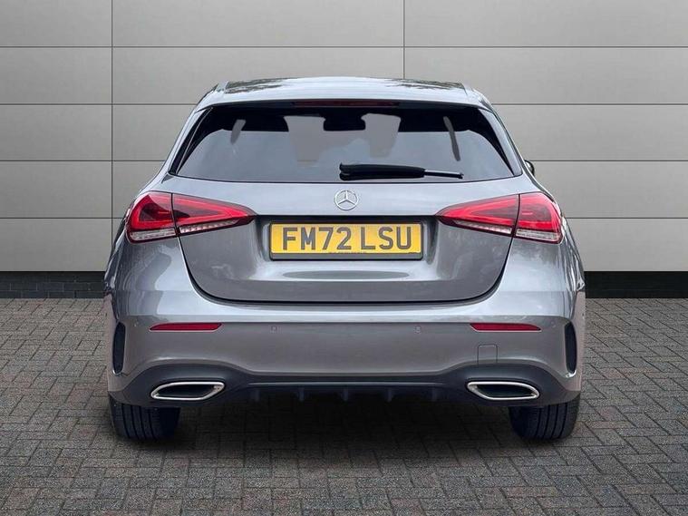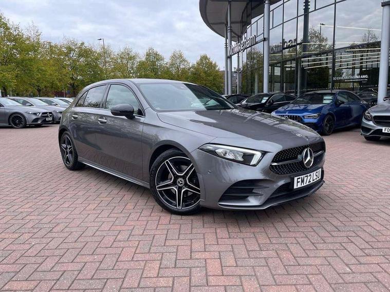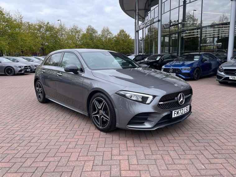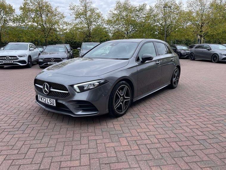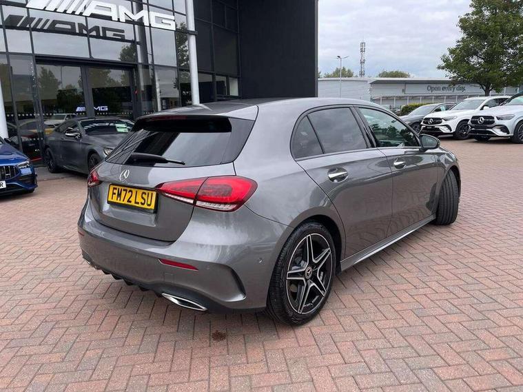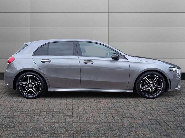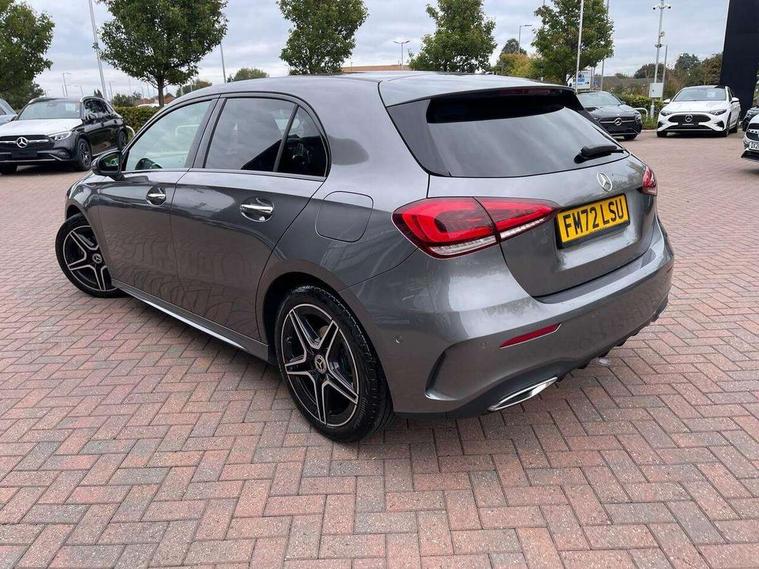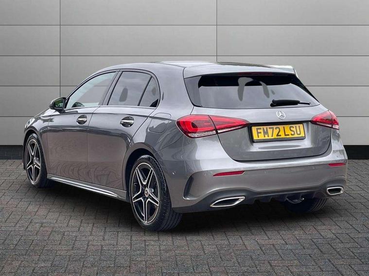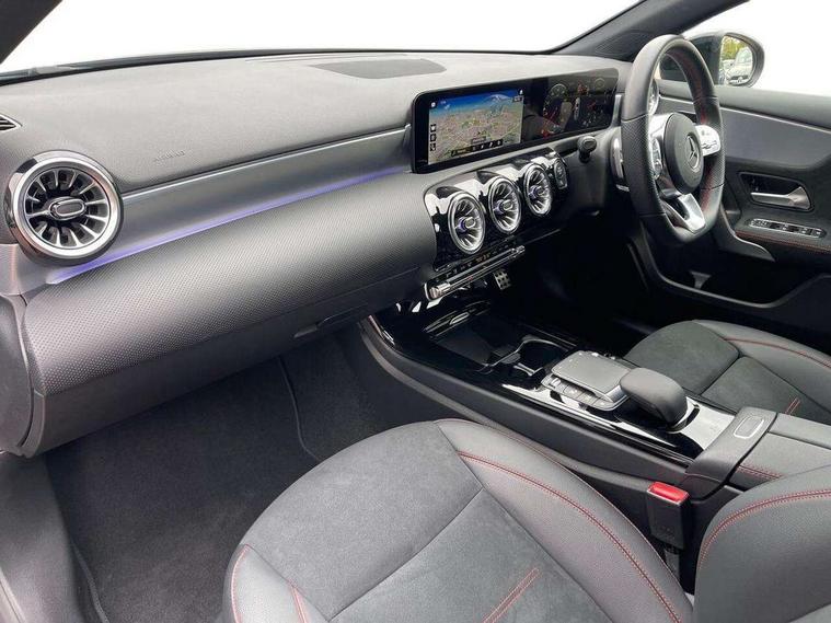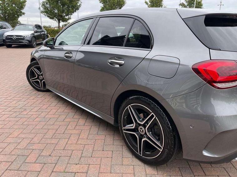 10.25" Digital instrument cluster display screen, 10.25" media display, 180 degree rear view camera with parking guidelines, Active parking assist with visual and audible warning of detected obstacles, Attention assist, Brake pad wear indicator warning light, Car wash mode, Cruise control + speed limiter, Direct steering, Dual bluetooth interfaces, DYNAMIC SELECT with a choice of driving modes (ECO, Comfort, Sport and Individual), ECO start/stop function, Fluid level warning indicator for fuel, oil, coolant and washer fluid, Hard-disk navigation, Hey Mercedes Voice activation, Lamp failure indicator, Lane keeping system, Mercedes me connect including emergency call system, accident recovery, breakdown and maintenance management, Mercedes me remote services, Outside temperature gauge, Owners manual in English, Pre-installation for private car sharing, Preinstallation for Mercedes Benz link, Service indicator (ASSYST), Smartphone integration with Apple CarPlay and Android auto, Speed limit assist, Speed sensitive power steering, Trip computer, Ultrasonic sensors positioned in the front and rear bumpers, Lowered comfort suspension, Rear axle torsion beam, 2 USB ports (type C) in rear stowage compartment and one in front of center console, 6 speakers, DAB Digital radio, MBUX multimedia system with DAB digital radio and touchpad including satellite navigation, Mercedes-Benz sound system - 100W, 4 Electric Front and Rear windows, Adaptive brake lights, AMG bodystyling - Front apron with splitter in chrome, rear apron with chrome trim and chrome visible trim elements in tailpipe, Automatic headlights, Black weather strip, Body colour bumpers, Body colour door handles with chrome inserts, Body colour side skirt, Electric adjustable and heated door mirrors with integrated LED side indicators, Exclusive diamond radiator grille, Exhaust system - Twin visible tailpipes in polished stainless steel, Headlamp assist automatic headlamp activation, Heated glass rear windscreen + timer control, LED High level third brake light, LED high performance headlamps with integrated LED daytime running lights, LED tail lamp, Privacy glass, Radio aerial, Rain sensing windscreen wipers with two sensitivity settings, Rear fog lights, Rear side wing doors, Rear wiper, 3 seat bench in 2nd row, 3 Spoke flat bottom leather multi function steering wheel with perforated leather in grip area, 40:20:40 split folding rear seats, Artico man-made leather/Microfibre Dinamica upholstery with red contrast stitching, Auto Mercedes-Benz child seat recognition sensor, Black air vents with surround in silver chrome, Black roof lining, Brushed stainless steel sports pedals with rubber studs, Controller on centre console with chrome surround, Floor mats with AMG lettering, Front centre armrest with storage compartment, Front seat backs luggage nets, Galvanished gear shift paddles on steering wheel, Heated front seats, Height/reach adjustable steering column, Illuminated Mercedes Benz lettering front door sills with changeable cover, Interior lighting - 64 colour Ambient lighting, Interior mirror with reading lamps in black and frameless, Manual height adjustable front seats, Rear armrest with 2 cupholders, Rear head restraints, Seat occupancy sensor for front passenger seat, Single front passenger seat, Sports seats with integrated headrests, Stowage compartment in centre console with retractable cover, Sunvisors with illuminated vanity mirrors, Touchpad on center console, Twin front cupholders, Two zone thermotronic luxury automatic climate control, Light and sight pack - A Class, Mirror package - A Class, Night pack - A Class Saloon/Hatchback, Seat comfort pack - A Class, 3 rear 3 point seatbelts, ABS with Brake Assist, Active bonnet, Active brake assist includes forward collision warning system with autonomous braking, Adaptive brake assist with hold function and hill start assist, Black seatbelts, Childproof locks manually operated for rear doors and electrically operated for rear power windows, Crash responsive emergency lighting, Driver and passenger head and side airbags, Drivers knee airbag, Dual stage driver/passenger airbags, Electronic parking brake, ESP curve dynamic assist, ESP with ASR, Front and rear seatbelt reminder, Front brake callipers with Mercedes Benz lettering, ISOFIX and top tether child seat fixing points in two outer rear seats, Tyre pressure monitoring system, Warning triangle and first aid kit, Window airbags, Alarm system/interior protection/immobiliser, Keyless entry lock/unlock, Keyless Go, Remote central locking and crash sensor with emergency opening function, Urban guard vehicle protection system with immobiliser and interior protection, Matrix look light longitudinal grain aluminium trim element, 18" AMG 5 twin spoke light alloy wheels aerodynamically optimised painted in black with highsheen finish, Summer tyres, Tirefit sealant kit,