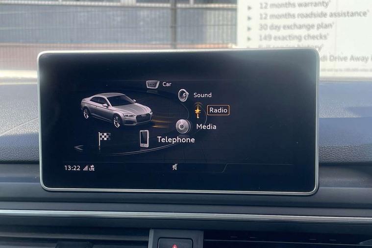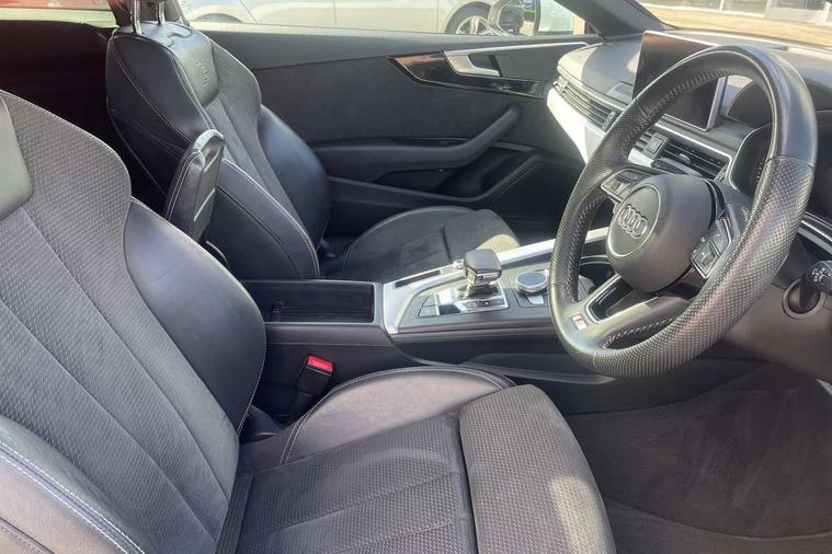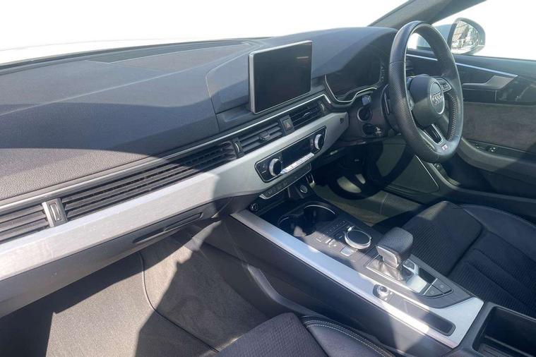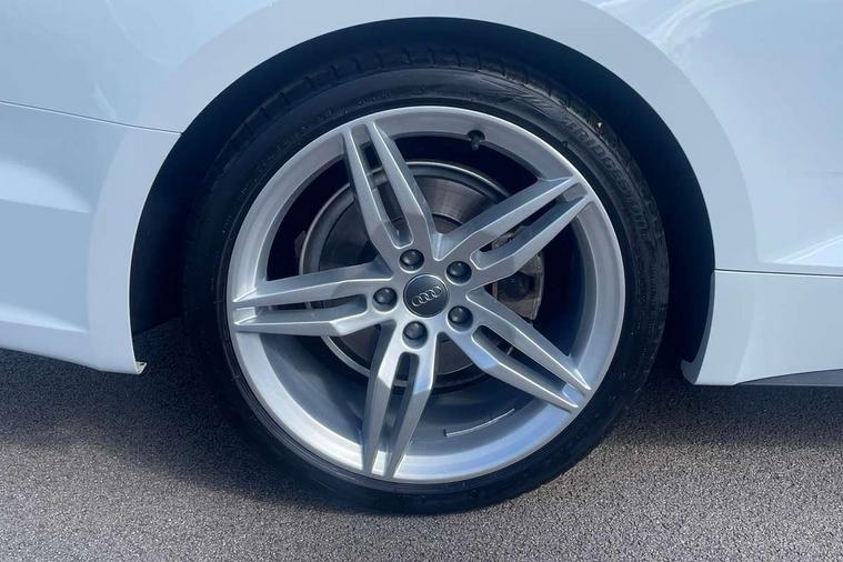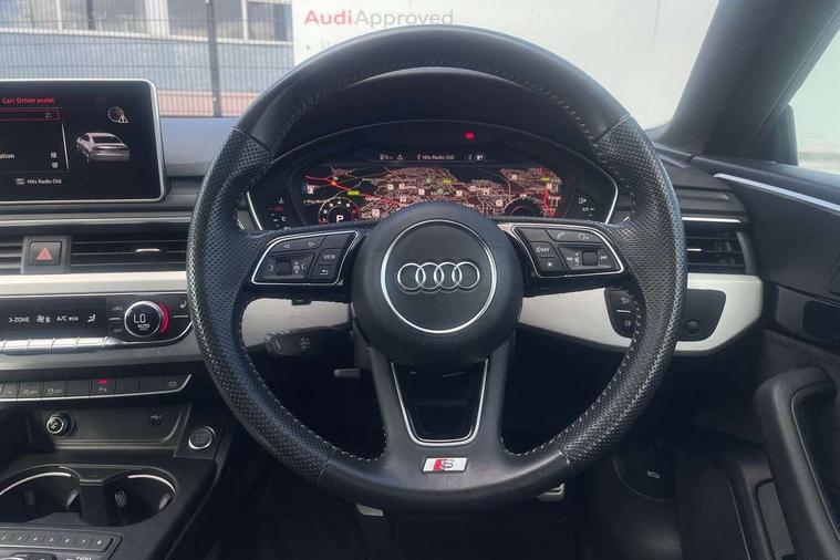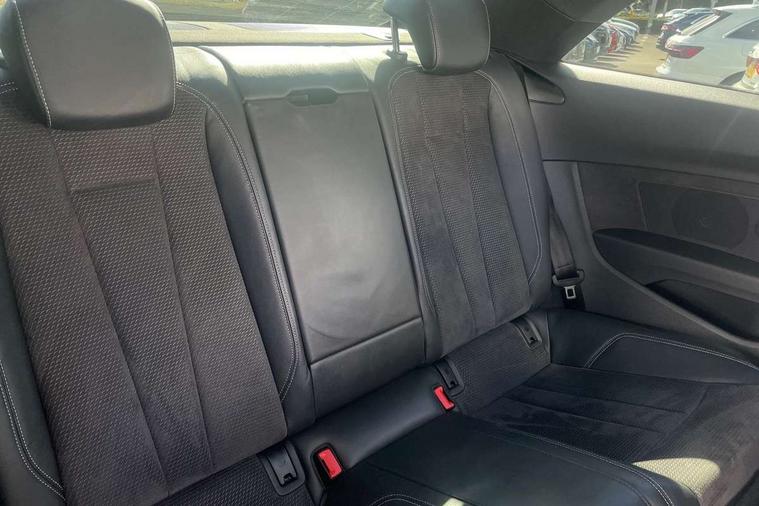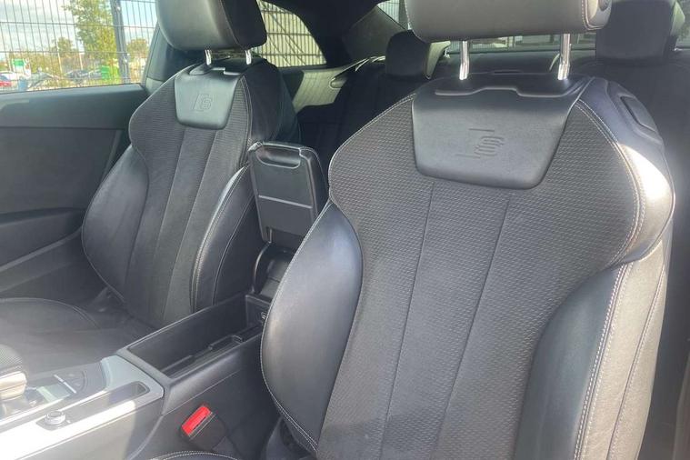 Non Smokers pack, Tyre repair kit, Anti theft alarm system, Anti theft wheel bolts, Immobiliser, Keyless Go, Remote central locking, CD player, DAB Digital radio, Two SDXC card slots, 6 airbags - Driver, front passenger, curtain and side airbags, Electromechanical parking brake, Electronic Stabilisation Control (ESC) including ABS, ASR and EDL, Front passenger airbag deactivation, Height adjustable front seatbelts, Hill hold function, Multi-Collision braking, Pop-up bonnet for pedestrian protection, Pre sense city, Seatbelt monitoring, Tyre pressure warning, Variable restraint system, Warning triangle and first aid kit, Air inlet in matt aluminium with horizontal inlay, Aluminium roof frame and window trim, Auto dimming rear view mirror, Black grained rear grille, Body colour bumpers, Body coloured door mirrors, Chrome plated exhaust pipe, Electric adjustable heated door mirrors, Electric front windows, Front fog lights, High beam assistant, High gloss black B pillar trims and triangular rear door trim, Honeycomb side air inlet in titan black, Rain and light sensors, Rear diffuser in Twilight grey matt with honeycomb grille, S line badges on front wings, S Line body styling, S Line front and rear bumpers, S Line side skirts in black, S line sill plates, Twilight grey matt radiator grille in matt aluminium inlay, Windscreen with acoustic glazing, 2 x USB charging port with aux input socket, 40/20/40 split folding 2 seater rear seat bench with rear centre armrest, Adjustable steering column, Black headlining, Black perforated leather gearknob, Centre console with cupholders, Contrast stitching on seats, steering wheel and gear lever gaiter, Deluxe 3 zone electronic climate control, Front centre armrest, Front head restraints, Front/rear floor mats, Gearshift paddles, Illuminated door sill trim with S logo, ISOFIX child seat mounting and top tether, Jack and tool kit, Luggage compartment mat, Rear centre armrest, Rear headrests, S embossed logo on front sport seats, Stainless steel pedals and foot rest, 7" Colour driver information system, Audi connect, Audi drive select, Audi parking system plus with front and rear sensors, Audi smartphone interface, Automatic start-stop system with coasting functionality and efficiency programme, Bluetooth interface, Electric boot release, Electro-mechanical power steering, MMI Navigation, Service interval indicator, Voice control system,