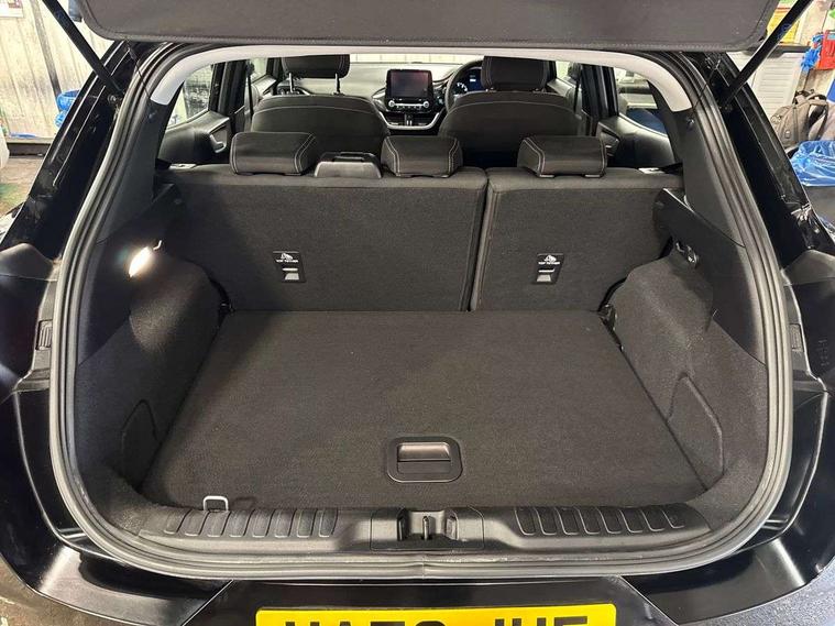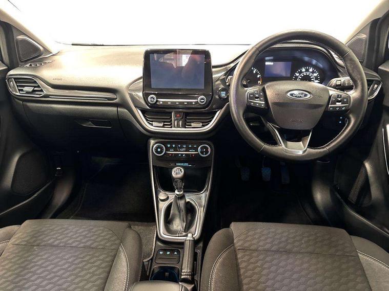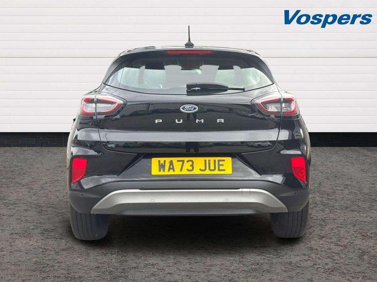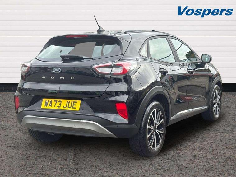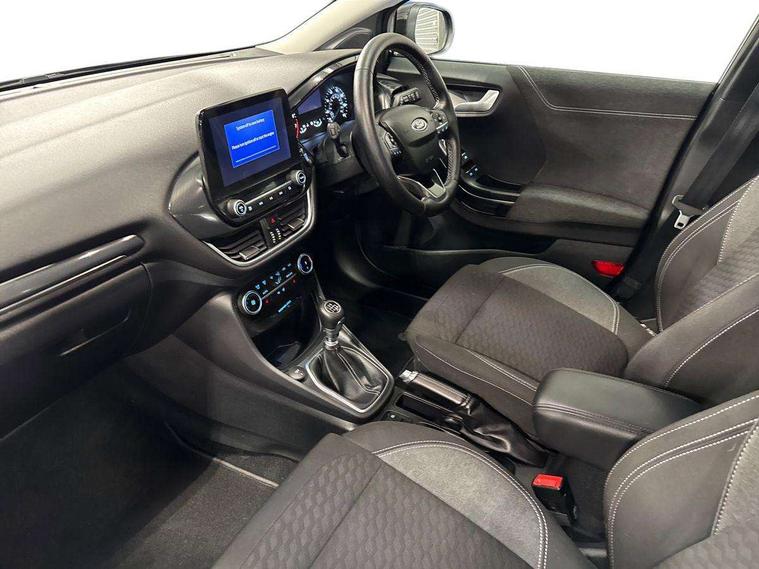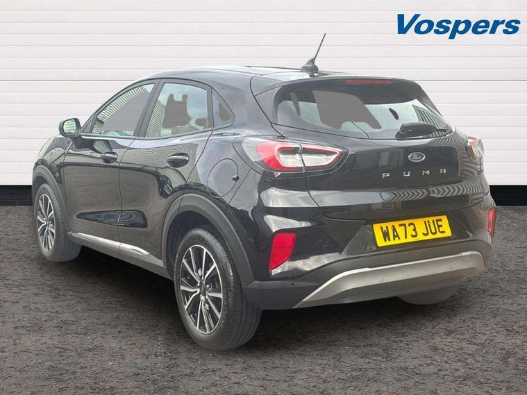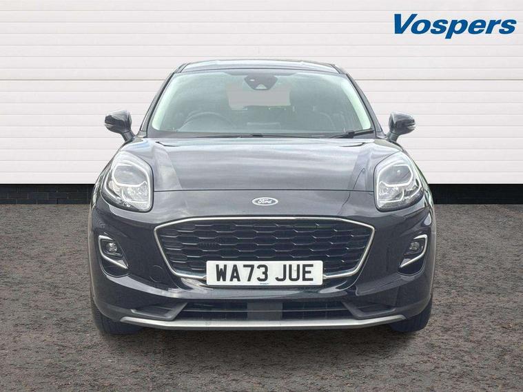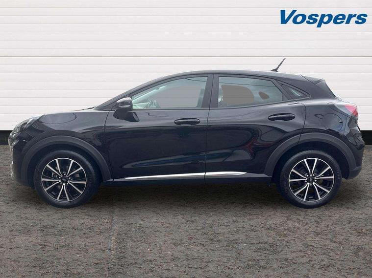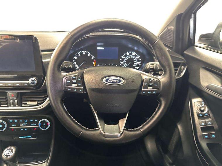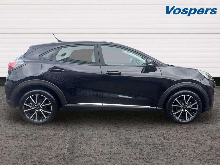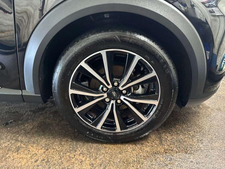 Driver impairment monitor, Emergency call service, Ford easy fuel, Lane keeping aid with lane departure warning, Power assist steering, Power start button, Rear parking sensor, Selectable drive modes(Normal, sport, Eco, trail, slippery), Speed sign recognition, Standard suspension, Automatic headlights with auto high beam, Automatic rain sensing wipers, Body colour rear spoiler, LED rear lamps, Power foldable heated door mirrors with puddle lamps, Projector headlamps with LED day time running lights and front fog lamps, Quickclear heated windscreen, Rear side wing doors, Rear wiper, Third brake light, 3 seat bench in 2nd row, Centre console with armrest and stowage, Electronic automatic temperature control (EATC), Ford megabox extended bootspace, Front and rear head restraints, Front floor mats, Manual 2 way passenger seat adjustment, Manual 4 way driver seat adjust with lumbar adjustment, Sensico leather steering wheel/gear knob/handbrake, Single front passenger seat, Titanium cloth upholstery, Ford SYNC 3 navigation pack - Puma, 3 rear seatbelts, Child safety lock, Electronic stability control (ESC) and hill start assist, Pedestrian/cyclist detection & post-collision braking, Pre collision assist system, Tyre pressure monitoring system (TPMS), Thatcham alarm, 17" 10 spoke absolute black machined finish alloy wheel,