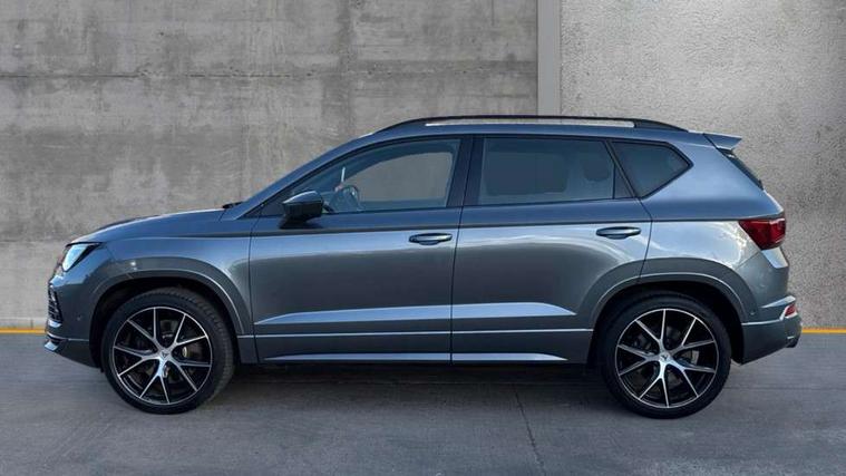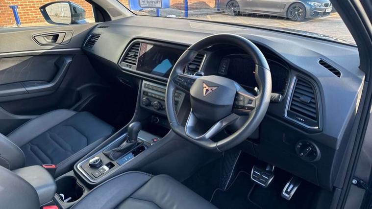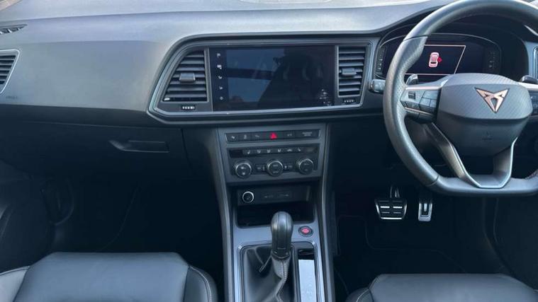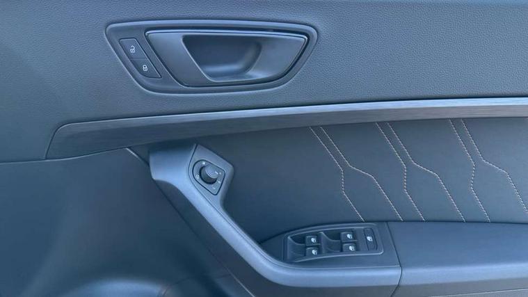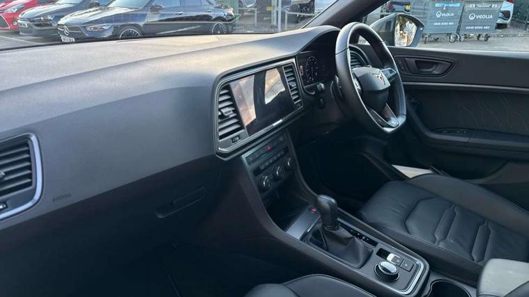 CUPRA drive profile - Normal, sport, CUPRA and individual modes and Hydraulic damper control (DCC), Digital cockpit, E-call, Electric tailgate with virtual pedal, Front and rear view camera, Outside temperature gauge, Progressive power assisted steering, Self parking functionality (includes front and rear parking sensors), Top view camera, Trip computer, wired and wireless full link smartphone integration, Wireless phone charger, CUPRA sport suspension, Steering wheel mounted audio/phone controls, Body colour bumpers with dark aluminium diffusor, Body coloured wheel arch surrounds, Dark tinted rear windows, Daytime running lights, Door mirrors with welcome CUPRA light silhouette, Dynamic headlight range control with self adjusting whilst driving, Electric adjustable/heated/folding door mirrors, Front and rear electric windows, Front grille frame in chrome, Full LED headlamps with lens and LED front fog lamps with cornering function, Gloss black door mirrors, Gloss black roof rails, Gloss black side mouldings, Gloss black side window trim, Illuminated aluminium front door sill, LED rear tail lights with dynamic indicators, Rear fog lights, Rear side wing doors, Rear spoiler, Rear wash/wipe, Specific CUPRA design front bumper, Third brake light, Visible twin black exhaust pipes in both sides, 12v socket in front, 3 seat bench in 2nd row, 60/40 split folding rear seat, Aluminium pedals, Black roof lining, Cupra steering wheel emblem, Dual zone climate control, Electric driver seat with memory function, Front and rear head restraints, Front centre armrest, Front seat back storage pockets, Heated front seats, Heated steering wheel, Height adjustable driver and passenger seat with lumbar adjustment, ISOFIX points in outer rear seats with top tether anchorage points, Leather sport bucket seats, Leather steering wheel and gear knob, Multicoloured ambient lighting with LED interior illumination, Pedal cluster, Rear armrest and easy back seat release mechanism from boot, Single front passenger seat, Sports steering wheel, Steering wheel mounted gearshift paddles, Storage compartment in roof console for sunglass, Storage compartment under driver's seat, Convenience pack - Ateca, Interior lighting pack - Ateca, Navigation system plus pack with DAB - Ateca, Safe and driving pack with High beam control - Ateca, 3x3 point rear seatbelts, ABS, Traction control system (TCS), Electronic stability control (ESC) and Electronic differential lock system (XDS), Airbags - Driver and front passenger airbag with deactivation, front side, two curtain and driver's knee airbags, Attention and drowsiness assist, Black brake callipers with CUPRA logo, Electric parking brake with auto hold function, Front and rear seatbelt reminder, Hill hold control, Manual rear child locks, Single tone horn, Tiredness recognition system, Tyre pressure monitoring system, Tyre pressure warning light, Alarm, Keyless entry, Locking wheel bolts,