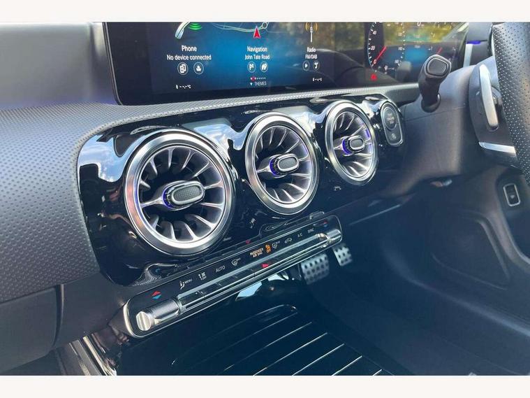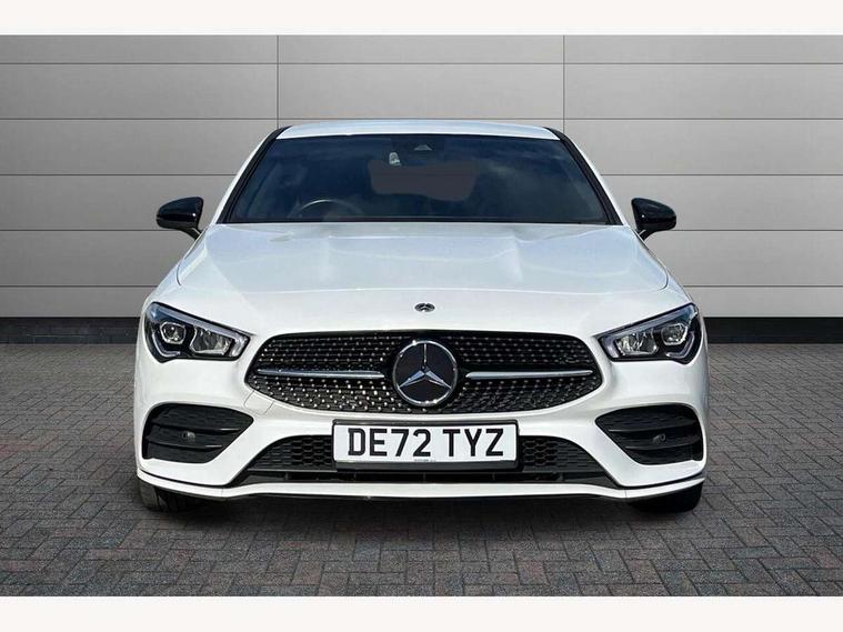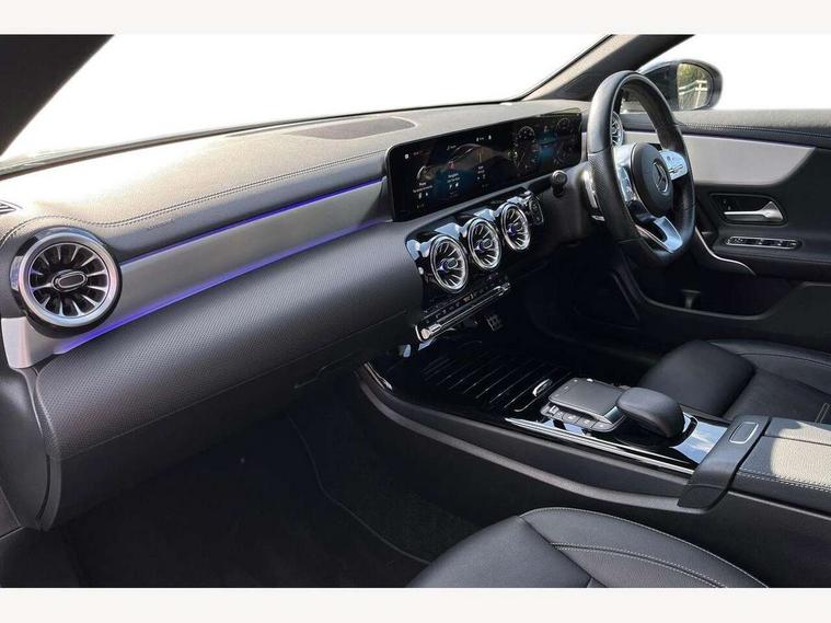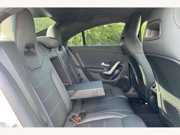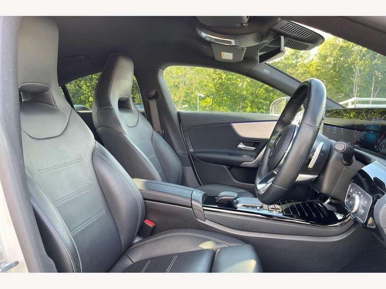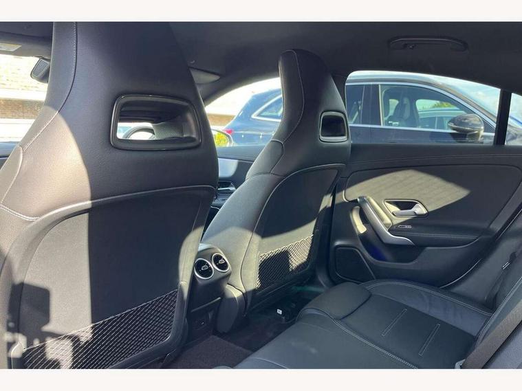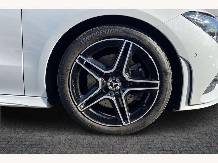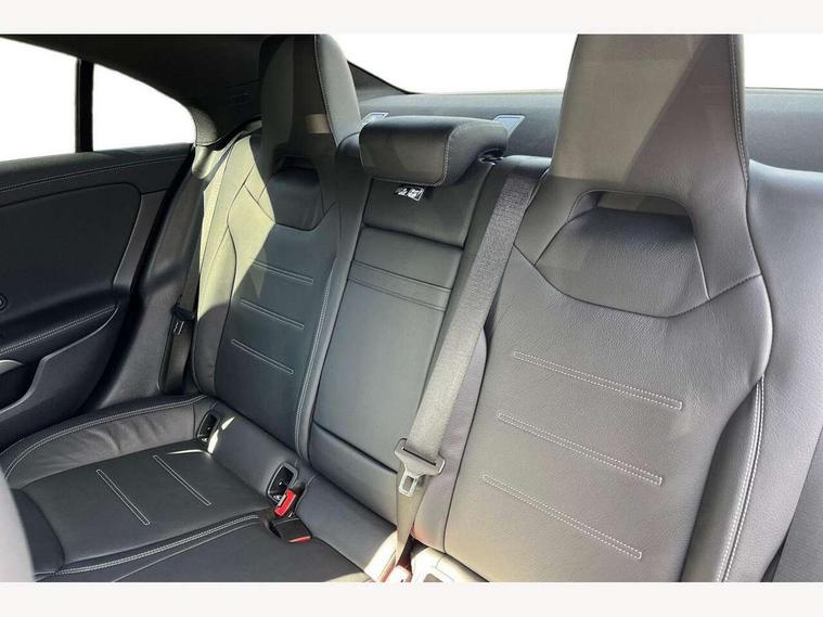 10.25 inch Instrument display with digital cockpit, 10.25 inch touchscreen central media display, Active lane keeping assist, Attention assist - Monitors steering behaviour and long journey fatigue, Bluetooth connection, Car wash mode, Cruise control with limiter, Direct steer system with speed sensitive power steering, DYNAMIC SELECT with a choice of driving modes (ECO, Comfort, Sport and Individual), ECO start/stop function, Fluid level warning indicator for fuel, oil, coolant and washer fluid, Hard-disk navigation, Hey Mercedes Voice activation, Lamp failure indicator, Mercedes me connect including emergency call system, accident recovery, breakdown and maintenance management, Mercedes me remote services, Outside temperature gauge, Owners manual and service booklet in English, Pre-installation of private car share, Preinstallation for Mercedes Benz link, Radio aerial integrated into front and rear windshields, Service indicator (ASSYST), Smartphone integration with Apple CarPlay and Android auto, Speed limit assist, Trip computer in multifunction display with current consumption indicator, Lowered comfort suspension, Rear axle multi-link, DAB digital radio tuner, MBUX multimedia system, Mid-range sound system, USB (type C) ports (2) in stowage compartment and 1 in front of centre console, Adaptive brake lights, AMG body styling with AMG front apron and rear apron and visible exhaust tailpipe in chrome trim elements, AMG bodystyling side skirts, Body colour bumpers, Body colour door handles, Chrome beltline strips, Diamond radiator grille pins in chrome, Electric windows, Electrically adjustable and heated door mirrors with integrated LED indicators, Exhaust system with 2 Visible tailpipe trim elements and rear apron with trim in chrome, Headlamp assist automatic headlamp activation, Heated glass rear windscreen + timer control, High level LED third brake light, Interior mirror with black reading lamps and frameless, LED high performance headlamps with integrated LED daytime running lights, LED tail lamp, Privacy glass with dark tinting on rear side windows and rear window, Rain sensing windscreen wipers with two sensitivity settings, Rear boot, Rear fog lamp, Rear side wing doors, Variable front intermittent wipers, Window line trim strip in chrome, 3 seat bench in 2nd row, 3 spoke flattened bottom nappa leather multifunction steering wheel with perforated leather in grip area, 40:20:40 split folding rear seat backrests, Air conditioning - Two zone thermotronic luxury automatic climate control with display, Air vents with surround in silver chrome, Artico man-made leather upholstery, Automatic child seat recognition sensor, Black roof lining, Brushed stainless steel sports pedals with rubber studs, Floor mats with stitched AMG lettering, Front centre armrest with stowage, Galvanished gear shift paddles on steering wheel, Heated front seats, Illuminated front door sills with changeable cover, Illuminated glove compartment stowage, Interior lighting - 64 colour Ambient lighting, Luggage net on driver/front passenger seat backrest, Manually adjustable front seats, Manually height and reach adjustable steering column, Rear armrest with two integral cup holders for drinks, Rear head restraints, Single front passenger seat, Sport seats with fixed head restraints, Stowage compartment in centre console with retractable cover, Sunvisors with illuminated vanity mirrors, Touchpad on center console, Twin front cupholders, Two outer rear seat isofix and top tether child seat fixing points, Keyless go comfort pack - CLA, Light and sight pack - CLA, Mirror pack - CLA, Night package - CLA, Parking package - CLA, Seat comfort pack - CLA, Active bonnet pedestrain safety measure which detects an impact and raises bonnet by 65mm, Active brake assist includes forward collision warning system with autonomous braking, Adaptive brake assist with hold function and hill start assist, Anti lock braking system (ABS) with brake assist, Black seat belts, Bonnet with power domes, Brake pad wear warning indicator, Childproof locks manually operated for rear doors and electrically operated for rear power windows, Crash responsive emergency lighting, Driver and front passenger head and sidebags, Driver and front passenger windowbags, Drivers knee airbag, Dual stage driver and front passenger airbags, Electric parking brake, Electronic stability programme with acceleration skid control, ESP curve dynamic assist, Front and rear seatbelt reminder, Front passenger seat occupancy sensor, Three point rear seat belts, Tyre pressure monitoring system, Warning triangle and first aid kit, Guard 360 degree guard vehicle protection system with immobiliser and interior protection, Remote central locking and crash sensor with emergency opening function, Light aluminium with longitudinal grain interior trim, 18" AMG 5 twin spoke light alloy wheels painted in black with high sheen finish, Summer tyres, Tirefit tyre sealant kit,