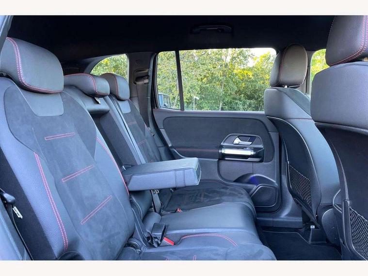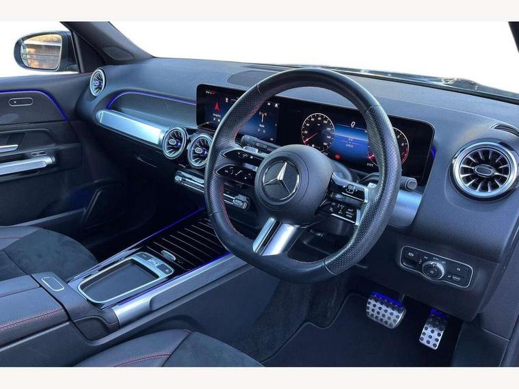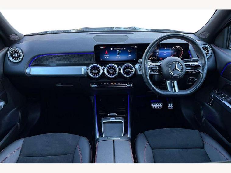 10.25 inch touchscreen central media display, 10.25" Digital instrument cluster display screen, 12 ultrasonic sensors in front and rear bumpers, 180 degree reversing camera with parking guidelines, Assisted parking: reversing backwards into perpendicular and parallel parking spaces, Attention assist - Monitors steering behaviour and long journey fatigue, Bluetooth connection, Brake pad wear indicator warning light, Car wash mode, Convenience opening and closing, Direct steering, DYNAMIC SELECT with a choice of driving modes (ECO, Comfort, Sport and Individual), ECO start/stop function, Engine start/stop button, Fluid level warning indicator for fuel, oil, coolant and washer fluid, Hard disk navigation, Hey Mercedes Voice activation, Lamp failure indicator, Lane keep assist, MBUX navigation premium, Mercedes me connect including emergency call system, accident recovery, breakdown and maintenance management, Mercedes me remote services, Outside temperature gauge, Owners manual and service booklet in English, Pre-installation of private car share, Preinstallation for parking damage notification, Radio aerial integrated into front and rear windshields, Remote boot closing, Service indicator (ASSYST), Smartphone integration with Apple CarPlay and Android auto, Speed limit assist, Tailgate, Trip computer in multifunction display with current consumption indicator, Ultrasound sensors - positioned in the handle of the tailgate, Wireless charging, Comfort suspension with ride height lowering, Rear axle multi-link, 1 USB-C port in the oddments compartment (Charge + Data transfer), 2 USB-C ports for the rear on the centre armrest (Charge only), 2 USB-C ports under the front centre armrest (Charge + Data transfer), DAB digital radio tuner, MBUX multimedia system, Mercedes Benz sound system (100 W) with 6 speakers, Pre installation for Mercedes Benz Link, Adaptive brake lights, Adaptive high beam assist, AMG front apron with front splitter in the colour of the vehicle with chrome trim element, AMG rear apron with visible tailpipe trim and chrome trim element, AMG specific/dual flow exhaust pipes in chrome (non-functional), Auto dimming rear view mirror, Beltline trim and window line trim strip in high gloss aluminium, Black grained side sill trim with chrome inlay, Body coloured door handles, Electric adjustable and heated door mirrors with integrated LED side indicators, Electric folding door mirrors, Front and rear electric windows, Headlamp assist automatic headlamp activation, Heat insulating dark-tinted glass starting from B-pillar, Heated glass rear windscreen + timer control, High level LED third brake light, Interior mirror with black reading lamps and frameless, LED high performance headlamps with integrated LED daytime running lights, LED tail lamp, Polished aluminium roof rails, Radiator grille as a diamond grille with chrome pins and central Mercedes star, Rain sensor windscreen wipers, Rear fog lamp, Rear side wing doors, Rear wiper, Single louvre in matt grey with chrome inserts and black highlights, Two visible tailpipe trim elements exhaust, Ultrasonic sensors - positioned in the front and rear bumpers, Wheel arch liners in the colour of the vehicle, 12V socket in the oddments compartment, 3 seat bench in 2nd row, 3 twin spoke flattened multifunction steering wheel in nappa leather - horizontal twin spoke in high gloss black, vertical twin spoke in silver chrome, 4 way adjustable lumbar support, 40:20:40 split folding rear seats, Air vents with silver chrome surrounds, AMG floor mats, AMG sports pedals with brushed stainless steel surfaces and black rubber studs, Automatic child seat recognition sensor, Black roof lining, Door handles with chrome inserts, Fluorescent jacket, Front and rear headrests, Front centre armrest with stowage, Galvanised steering wheel gearshift paddles in silver chrome, Handle recess lighting, Heated front seats, Height adjustable head restraints, Height/reach adjustable steering column, Interior lighting - 64 colour Ambient lighting, Luggage net on driver/front passenger seat backrest, Single front passenger seat, Sports seats, Stowage compartment with retractable cover, Sun visors with illuminated vanity mirrors, THERMATIC automatic climate control, Third row of seats for two people on rear seat, Twin front cup holders, Two outer rear seat isofix and top tether child seat fixing points, Easy pack tailgate, Interior lighting with light and sight pack - GLB, Seat comfort package - GLB, 3 rear 3 point seatbelts, Active bonnet pedestrain safety measure which detects an impact and raises bonnet by 65mm, Active brake assist includes forward collision warning system with autonomous braking, Adaptive brake assist with hold function and hill start assist, Airbags - kneebag for driver, Anti-lock braking system (ABS) with brake assist, Black seatbelts, Bonnet with power domes, Childproof locks manually operated for rear doors and electrically operated for rear power windows, Crash responsive emergency lighting, Curve dynamic assist, Driver and front passenger head and sidebags, Driver and front passenger windowbags, Dual stage driver and front passenger airbags, Electric parking brake, Electronic stability programme with acceleration skid control, Front and rear seatbelt reminder, Front brake callipers with Mercedes Benz lettering, Front passenger seat occupancy sensor, Perforated front brake discs, Tyre pressure monitoring system, Warning triangle and first aid kit, Guard 360 degree vehicle protection - Anti theft alarm system, tow away protection with visual, acoustic warning and alarm, Interior monitoring system, Keyless Go Access and drive authorisation system, KEYLESS-GO starting function, Remote central locking and crash sensor with emergency opening function, Thatcham category 1 alarm system with immobiliser and interior protection, Vehicle key with KEYLESS GO functionality, Carbon structure trim, 19" AMG 5 twin spoke light alloy wheels aerodynamically optimise