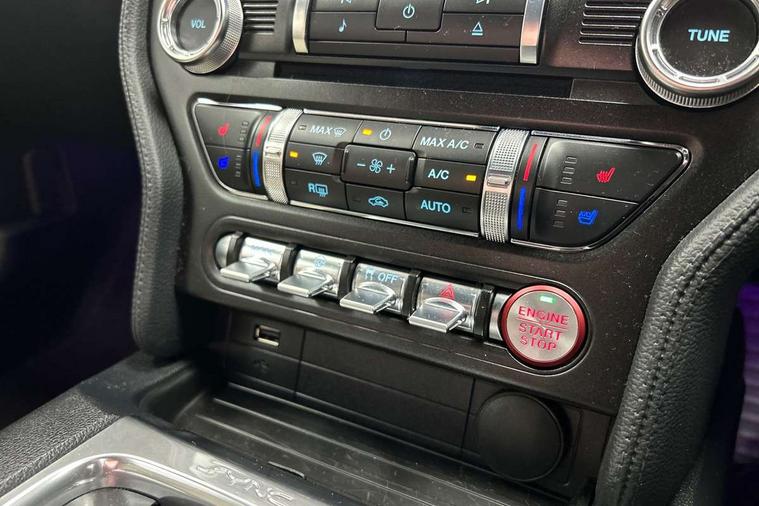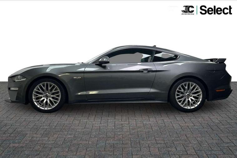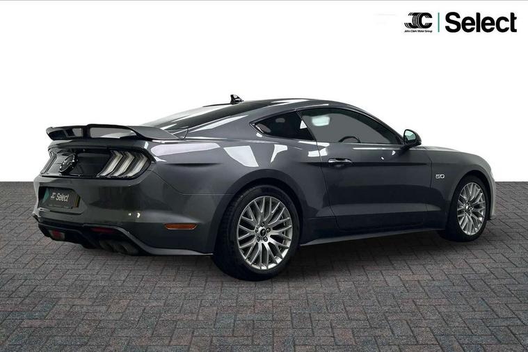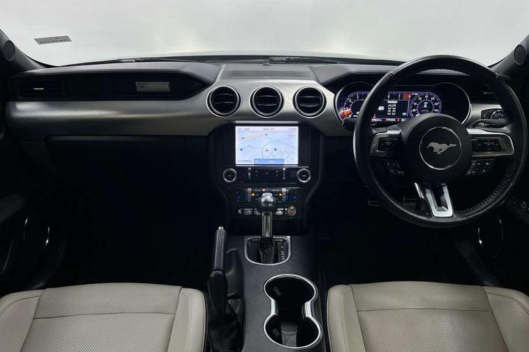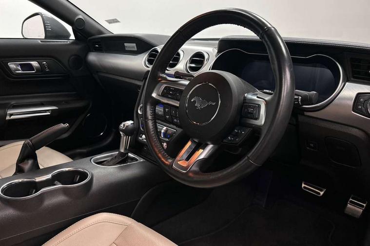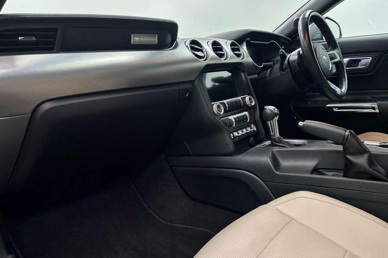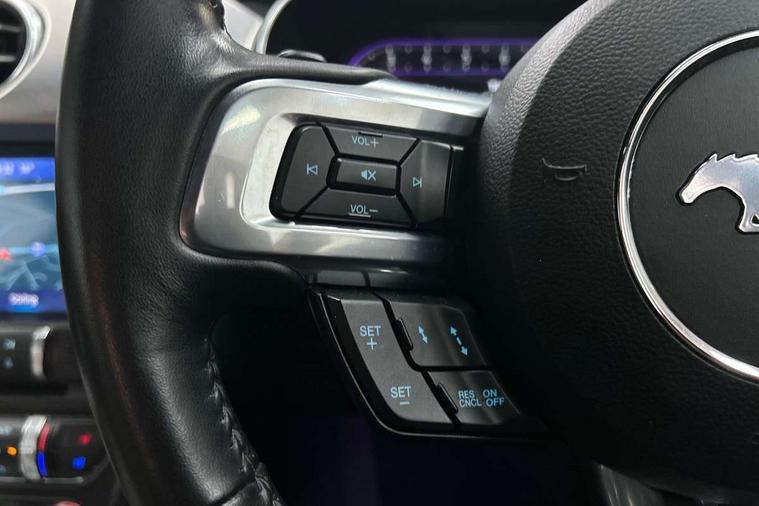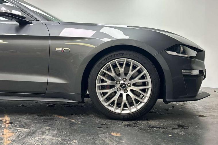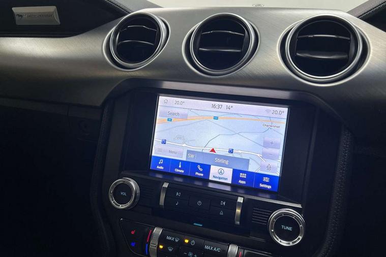 12" digital LCD instrument cluster, Adaptive cruise control, Apple car play/Android Auto, Bluetooth connectivity with voice control, Electric power steering, Ford pass connect embedded modem, Ford SYNC 3 with 8" colour touch screen, Lane departure warning with lane keeping aid, Oil pressure gauge, Rear view camera with rear parking sensors, Selectable driving modes - normal, mymode, snow/wet, sport+, track and drag mode, Service interval indicator, SYNC Emergency Assistance, Track apps with accelerometer technology, Trip computer, Adaptive damping system, Fully independent front and rear suspension, Limited slip differential, DAB Digital radio, USB connection, 5.0 Exterior badge on front wings, Active exhaust system with quad tailpipes, Auto dimming rear view mirror, Auto high beam, Automatic headlights, Automatic rain sensing wipers, Bi-Xenon headlights, Body colour bumpers, Body colour door mirrors, Bonnet air intake, Electric front windows, GT exterior badge on bootlid, GT front grille with vertical power bars, LED headlamps with daytime running lights and LED fog lamps, Magnetic blade decklid rear spoiler, Power folding door mirrors with Mustang logo projection puddle lamps, 6 way power adjustable front seats and driver seat power lumbar adjust, Ambient lighting, Cup holders, Dual electronic automatic temperature control, Front headrests, Heated steering wheel, Illuminated entry system, Individually folding rear seats, Isofix system on outer rear seats, Leather gearknob, Leather multifunction steering wheel, Leather upholstery, Reach and rake adjustable leather steering wheel with integrated controls, Rear head restraints, 4 seatbelts, ABS, Drivers knee airbag, Dual front airbags, Electronic Line Lock, Electronic Stability Control (ESC) with three settings, ESP, Front side airbags, Performance brake system with brembo 6 piston front callipers and electronic brake prefill, Pre collision assist system, Side curtain airbags, Tyre pressure monitor, Ford key free system with power starter button and keyless entry, Immobiliser, MyKey system, Thatcham Cat.1 alarm, Tyre repair kit,