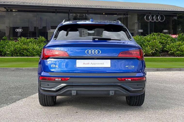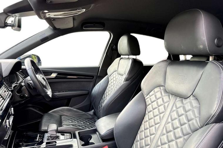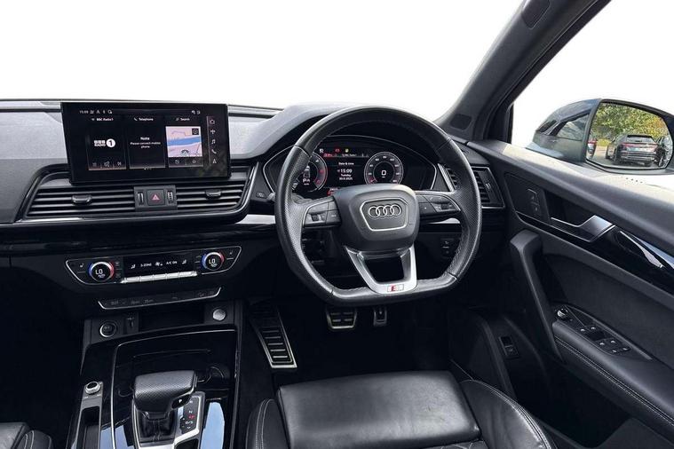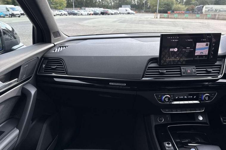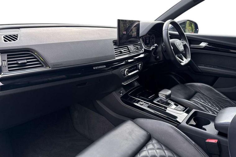 Acoustic front and rear parking sensor, Audi connect safety and service (e-call), Audi connect with Amazon Alexa Integration, Audi drive select, Audi virtual cockpit plus with 12.3" screen and three different layout designs, Audi wireless smartphone interface, Automatic start-stop system with coasting functionality and efficiency programme, Bluetooth interface, Electro - mechanical power assisted steering, MMI navigation plus with 10.1" touch screen, Power tailgate, Reversing camera, Service interval indicator, Voice control system with Audi hotword activation "Hey Audi", Diesel particulate filter, Quattro on demand, S line sports suspension, 2 x USB charging port with aux input socket, 8 loudspeakers, DAB Digital radio, Acoustic windscreen, Audi beam with Audi rings logo, Audi matrix LED headlights with dynamic front and rear indicators, Audi rings at front and rear in black, Audi rings decal on rear doors, Auto dimming door mirrors, Auto dimming frameless rear view mirror, Automatic headlight adjustment, Automatic headlights and windscreen wipers, Black roof rails, Body colour underbody protection, Chrome plated exhaust trims, Daytime running lights, Door sills in Selenite silver, Electric adjustable/heated/folding door mirrors, Front air inlet surrounds in anthracite black, Front and rear electric windows, Headlight washers, High gloss black B pillar trims and triangular rear door trim, High level LED brake light, Rear chrome trim strip below lights, Rear privacy glass and rear side windows, Rear side wing doors, Rear spoiler, Rear wiper, Roof bars, Without model and engine badging at rear, 3 rear headrests, 4 way electric lumbar support for driver and front passenger, 40:20:40 split folding 3 rear bench seat in 2nd row with rear centre armrest, Black cloth headlining, Comfort front centre armrest, Contrast stitching on seats, steering wheel and gear lever gaiter, Deluxe 3 zone electronic climate control, Electrically adjustable front seats, Fine Nappa leather upholstery with diamond pattern contrast stitching + front sport seats with S embossed logo, Front head restraints, Front/rear floor mats, Gear lever in black leather, Heated front seats, Height/reach adjustable steering column, Illuminated door sill trims with S logo, Rear seat bench plus-adjust for forwards/backwards position/backrest angle, cupholders in the armrest, load through hatch and remote backrest release, Removable luggage compartment floor, Single front passenger seat, Stainless steel pedals, Sunvisors with vanity mirrors, Trunk roller cover, Black styling package - Q5 Edition 1, Extended LED Interior multi coloured Lighting Pack - Q5, 3 point seatbelts on all seats, 6 airbags - Driver, front passenger, curtain and side airbags, Electrically operated child locks on rear doors, Electromechanical parking brake, Electronic stabilisation control including ABS, ASR and EDL, First aid kit with warning triangle and vests, Front and rear brake calipers painted in red, Front passenger airbag deactivation, Hill descent control, Hill hold assist, ISOFIX child seat mounting for front passenger seat and ISOFIX child seat mounting with Top Tether for outer rear seats, Multi collision brake assist, Pop-up bonnet for pedestrian protection, Pre sense city, Seat belt force limiter, Seatbelt monitoring, Tyre pressure warning, Anti theft alarm, Anti-theft wheel bolts, Keyless Go access/ignition system, Remote central locking, Air vents inserts and centre console in gloss black, Piano black finish inlay,