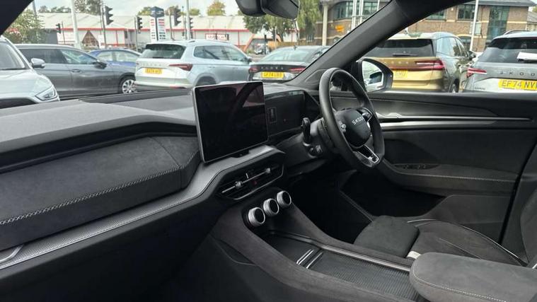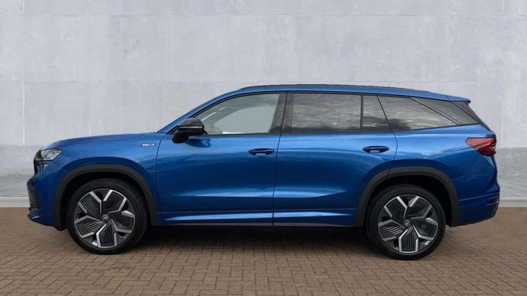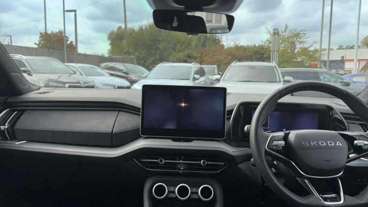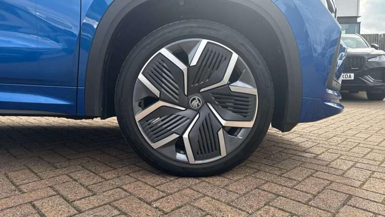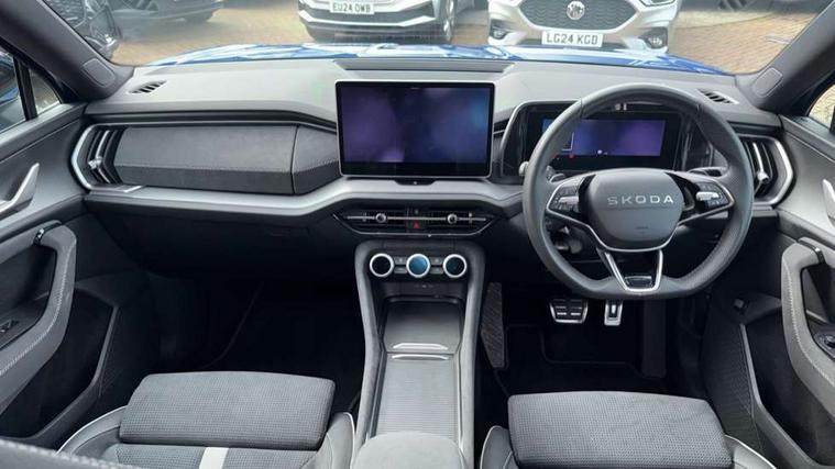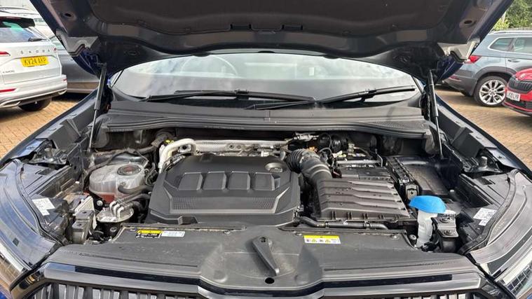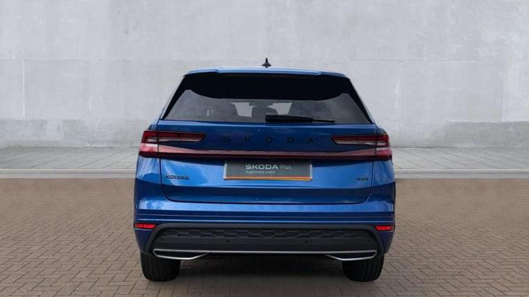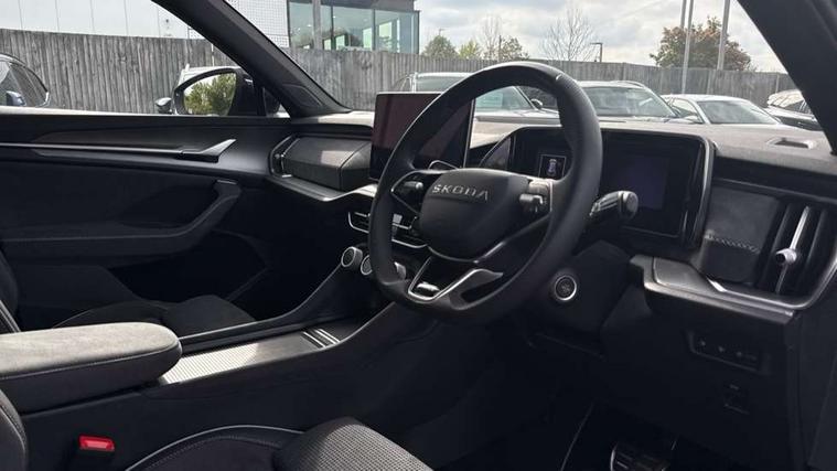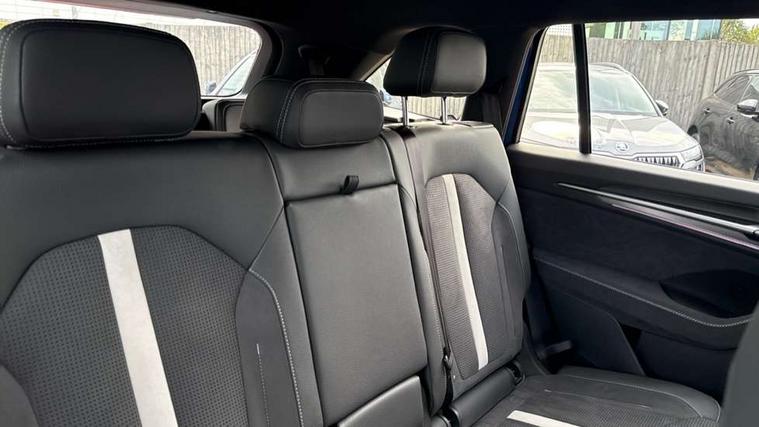 13" satellite navigation touchscreen display, Blind spot detection with door exit warning, Bluetooth system, ChatGPT functionality, Driver alert - Fatigue and drowsiness monitor, Dry display cleaner, Emergency call, Front and rear parking sensors, Front cross traffic assist, Lane assist, Off road modes, PAS, Rear traffic assist, Tailgate unlocking from outside, Traffic sign recognition, USB C Port x 2 in front centre console, Virtual Cockpit - 10.25" digital display, Voice control system, Wireless charging for two smartphones (15W) with cooling function, Wireless SmartLink for Apple CarPlay and Android Auto, Stop/start function, 2x USB-C in the rear, DAB Digital radio, Aero front windscreen wipers with intermittent function, Auto dimming rear view mirror, AWL (all weather lighting) and all weather light with cornering function, Black diffuser and decorative tailpipe with a unique dark chrome finish, Black roof rails, Black sports styling including front grille and window surrounds, Black wheel arch surrounds, Body colour door handles, Cornering light and poor weather light, Electric folding /adjustable/separted heated/folding door mirrors, auto dimming with boarding sports and memory function, Electric front and rear windows, Exterior black decorative trims, Front and rear sports bumpers including lower rear chrome strip, Gloss black door mirrors, Gloss black window frame and D pillar, Heat insulating glass in windshield, Heated rear window, Ice scraper in fuel tank cap, LED daytime running lights, LED third brake light in rear spoiler, Light assistant with automatic headlight control and coming home feature, Logo projection in door mirrors, Privacy glass, Rear roof spoiler, Rear side wing doors, Rear window wiper, Red decorative strip between rear LED lights, Safety reflectors on front and rear doors, Sportline badge on front fenders, Tailgate lettering in Black, Unique dark chrome design logo on alloy wheels, Window control switches with black trim, Windscreen wipers with rain sensor, Without engine designation, 1.5l bottle holder points in all door, 1x centre rear reading light, 2 seat bench in 3rd row, 3 configurable smart dials with 32mm coloured display, 3 seat bench in 2nd row, 4 foldable roof handles with rear coat hooks, Aluminium pedals, Ambient interior lighting - Dashboard, front-door stowage compartments, front and rear door panels and footwell lighting, Automatic gear selector on steering column, Chrome interior door handles, Driver/front passenger reading lights, Fabric headlining, Fixed bench 40:60:40 split folding backrests, Front and rear floor mats, Front centre armrest with jumbo box storage compartment, cup holder and 12V socket, Front sport seats, Height adjustable front headrests, Interior black decorative trims, Isofix child seat fittings in outer middle row rear seats and front passenger with top tether, Manually adjustable steering column, Pollen filter, Rear centre armrest with cupholders, Rear seat boot backrest release, Single front passenger seat, Skoda lettering on steering wheel, Storage pocket including mobile phone pockets on the backs of the front seats, Sunvisors with illuminated vanity mirrors, Three rear height adjustable headrests, Ticket holder on A Pillar, Tri zone climate control, Umbrella in door panel x1 made from sustainable materials, Upper and lower glovebox with card holder and coin compartment, USB C port by rear view mirror for charging only (15W), Acoustic package - Kodiaq, Performance package - Kodiaq, Sportline design selection pack - Kodiaq, Auto door release and activation of warning lights in the event of an accident, Driver and front passenger airbag with knee airbag and front passenger airbag deactivation, Electric child locks, Electronic parking brake, ESC (incl. ABS+EMD+MSR+ASR+EDL+HBA+DSR+RBS+ESBS+MCB+TSA+XDS), Front assist with braking reaction to vehicles, pedestrians and cyclists, Front disc brakes, Fuel cut off safety device, Height adjustable front 3 point seatbelts + pretensioners, Hill hold assist, Junction assist with automatic emergency braking, Rear disc brakes, Safety vest holder in door, Seat belt reminder for all seats, Three point rear seat belts, Two tone horn, Tyre pressure monitor, Alarm with interior monitoring and tilt sensor with safe function, Anti-theft wheel bolts, Immobiliser, Remote central locking with 2 keys, 20" Rila anthacite polished alloy wheel with black matte aero covers,