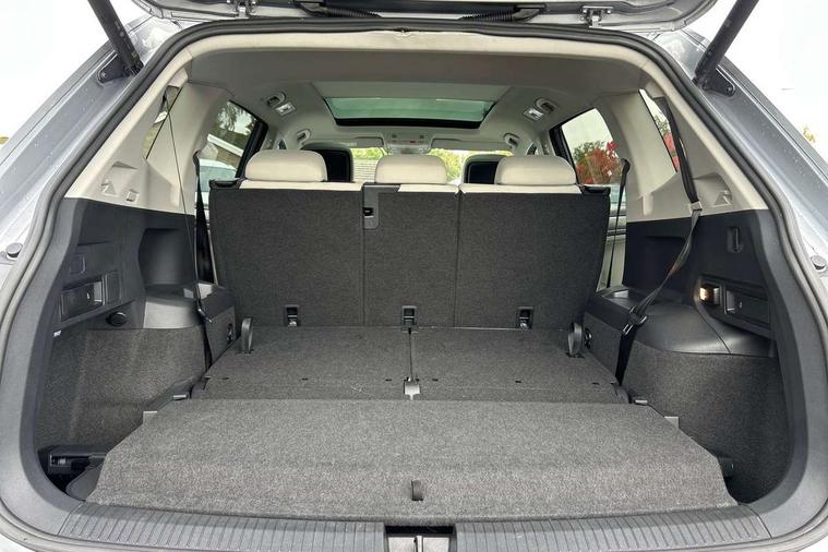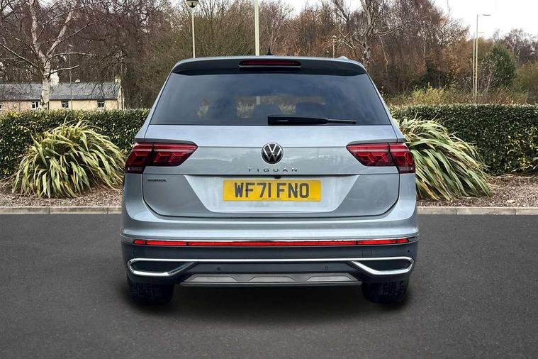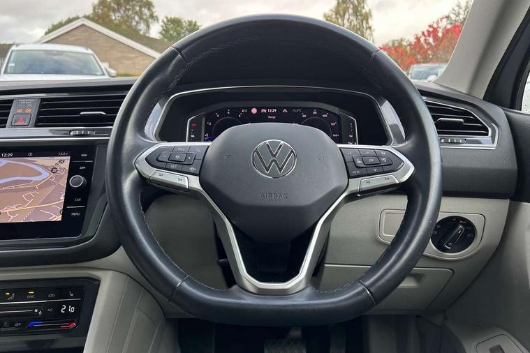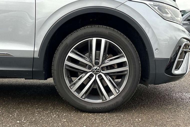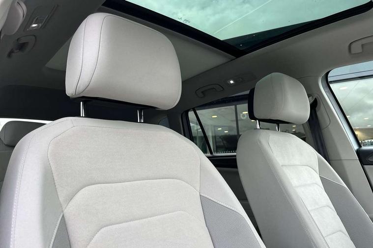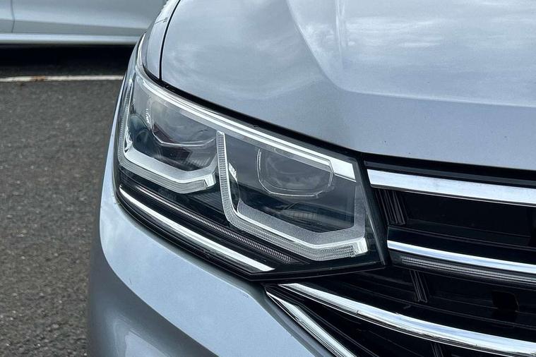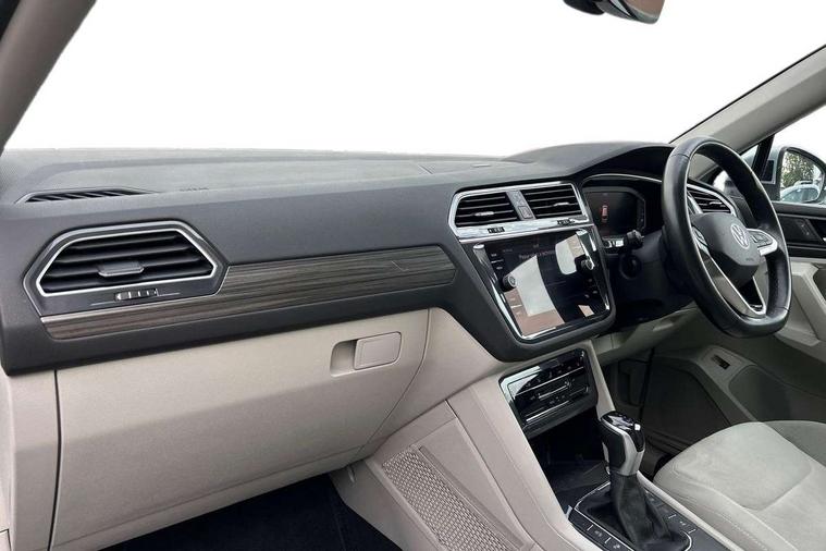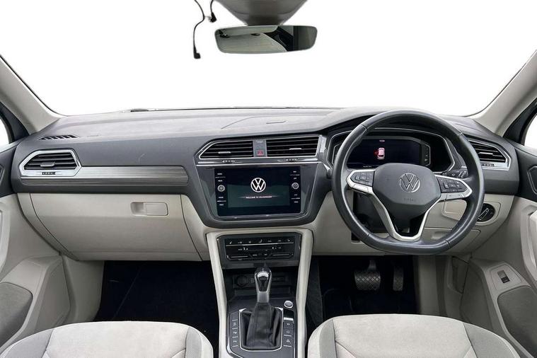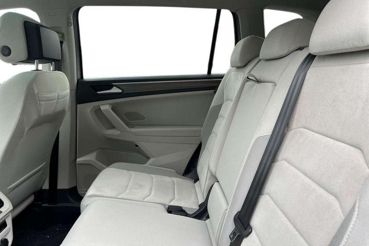 Adaptive cruise control, App-Connect, Digital cockpit pro, Driver alert system, Driver profile selection, Dynamic road sign display, eCall emergency call service, Electric boot lid, Lane change system side assist and rear traffic alert, Lane keeping system Lane Assist, Mobile phone interface comfort with inductive charging feature, Multifunction front facing camera, Power assisted speed sensitive steering, Speedo and rev counter, electronic odometer, trip, service interval display and exterior temperature gauge, Front wheel drive, Start-stop system with battery regeneration (recuperation - energy recovery during braking), 2 USB-C ports in the front, 1 USB-C charging socket on the center console in the rear, DAB Digital radio, Diversity antenna for FM reception, Radio, Auto dimming interior rear view mirror, Automatic headlight control system, Body coloured comfort bumpers, Chrome mouldings on side window, Coming/leaving home lighting function, Exterior badge deletion, Exterior mirror housings painted in silver, Heated windscreen washer jets, IQ light adv HBC, dyn light assist LED matrix headlamps, DH range, dark red LED rear combo light, poor weather, CL, LED headlamp with LED DRL and DCL - PXC, Privacy glass, Rain sensor, Rear fog light, Rear side wing doors, Rear wiper, Silver roof rails, Third brake light, Tilting and sliding panoramic sunroof, 12-volt outlet in centre console rear and luggage compartment, 12V socket in centre console, 3 head restraints in rear, 3 individual folding 2nd row seats, 3rd row 2 individual seats, Air Care Climatronic 3 zone automatic climate control with enhanced air filter and controls in the rear, Door and side trim panel, Drawers under front seats, Driver and front passenger seat height adjustment, Foldable front passenger seat backrest, Front + rear carpet mats, Front centre armrest, Front footwell illumination, Heated front seats, Illuminated scuff plates, ISOFIX anchorage points for mounting 2 child seats on rear seats and i-Size child seats, Leather gearshift handle, Leather-wrapped heated multi-function steering wheel with paddle shift, LED interior light with switch off delay/dimmer and 2 front/rear LED reading lights, Sun visors with illuminated vanity mirrors, Ambience pack - Tiguan Allspace, Easy open and close pack with safelock - Tiguan Allspace, Park assist pack - Tiguan Allspace, 3 point seat belt for centre rear seat, 3 rear three point seatbelts, ABS+EBD+Brake assist, Driver and front passenger safety-optimised head restraints, Driver's and front passenger's airbag with front passenger's airbag deactivation switch, Electronic parking brake, Electronic Stability Control (ESC) inc EDL (Electronic Differential Lock) and ASR (Traction Control), Height adjustable front 3 point seatbelts + pretensioners, Manual rear child locks, Pedestrian monitoring, PreCrash preventive occupant protection Front and rear, Rear disc brakes, Side airbag in front and rear with curtain airbag, Two tone horn, Warning buzzer for seatbelts if unfastened, Anti theft alarm system with interior monitoring, backup horn and towing protection, Anti-theft wheel bolts, Electronic steering lock, Remote central locking with 2 remote folding keys, Chequered flag tinanium decorative inserts,