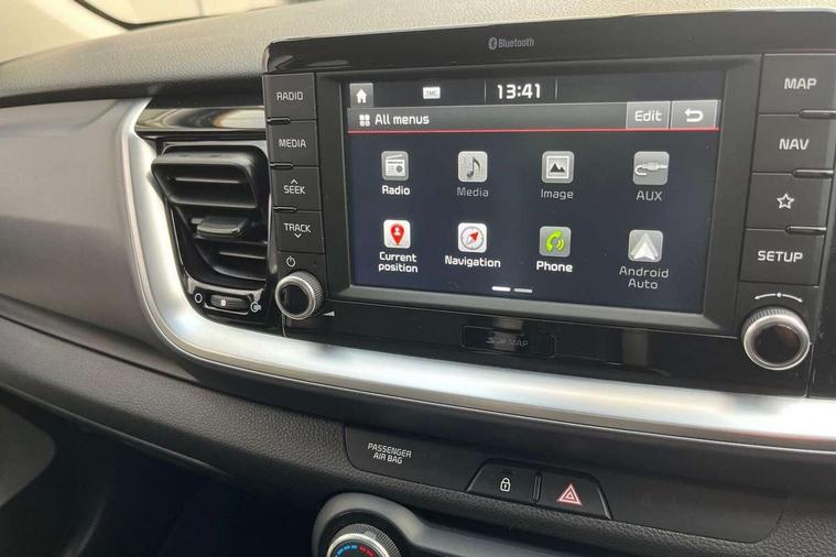 7" touch screen sat nav with TMC, Apple car play/Android Auto, Bluetooth connectivity with voice control, Cruise control + speed limiter, Driver attention warning, Electric power steering, Emergency stop signalling system, Forward Collision-Avoidance Assist (FCA) - City/Urban/Pedestrian, Gear selection indicator, Instrument cluster- 3.5" Monochrome TFT Display, Kia connected services featuring TomTom live, Lane keep assist system, Outside temperature display, Rear parking sensor with On/Off switch button, Reversing camera, Reversing camera system with dynamic guidelines (Integrated into centre fascia screen), Trip computer, Windscreen washer level indicator, Intelligent Stop and Go, 'Shark fin' mobile antenna, 6 speakers, 7" LCD screen, Bluetooth audio streaming, DAB Digital radio, RDS radio with MP3 player, Rear USB port, Steering wheel mounted audio controls, USB and auxiliary socket, Aero blade type windshield wipers, Auto dimming rear view mirror, Automatic defog system, Automatic front rain sensing wipers, Automatic lighting control, Bi-function projection headlights with static bending, Black door garnish, Black side sills, Black wheel arch extensions, Body colour bumpers, Body colour door handles, Body colour door mirrors, Electric adjustable/heated/folding door mirrors, Electric front windows + drivers one touch, Follow me home headlights, Front skid plate - silver, Headlamp levelling, Heated rear window, High beam assist, High Gloss Black and Satin Chrome Radiator Grille, High level brake light, LED daytime running lights, LED Indicators, LED rear combination lights, Matt black lower mirror housing, Projection front fog lights, Rear electric windows, Rear fog lights, Rear privacy glass, Rear skid plate - silver, Rear spoiler, Rear wash/wipe, Roof rails, Speed sensitive front wipers, Visible VIN plate, Welcome home function, 12V power point front, 3 passenger grab handles, 60/40 split/folding 2nd row of seats, Air filter, Automatic air conditioning, Centre console storage box/armrest, Centre console with cupholders, Cloth/faux leather upholstery, D-cut steering wheel, Dash illumination dimmer switch, Door pockets with bottle holder, Driver's seat height adjuster, Driver/passenger sunvisors and illuminated vanity mirrors, Front map lights, Glovebox illumination, Height adjustable headrests, Ignition key lock illumination, ISOFIX top tethers and lower anchor points, Leather trimmed gearshift, Luggage area lamp, Luggage net with hooks, Overhead console lamp, Overhead console with sunglasses holder, Passenger front seatback pockets, Rear parcel shelf, Satin chrome interior door handles, Tilt/telescopic adjustable steering wheel, Advanced driver assistance pack - Stonic, 3 point front seat belts, 3x3 point rear seatbelts, ABS/EBD, Automatic unlocking of doors in case of impact, Dual curtain airbags, Dual front airbags, Dual front side airbags, ESC + BAS + VSM + HAC, Front seatbelt pretensioners + load limiters, Height adjustable front seatbelts, Passenger airbag deactivate switch, Seatbelt warning, Traction control, Tyre pressure monitoring system, Anti theft alarm, Deadlocking system, Engine immobiliser, Folding key, Locking wheel nuts, Remote central door locking, Speed sensitive auto door locking, High gloss black centre fascia, 17" Alloy wheels, Tyre mobility system,