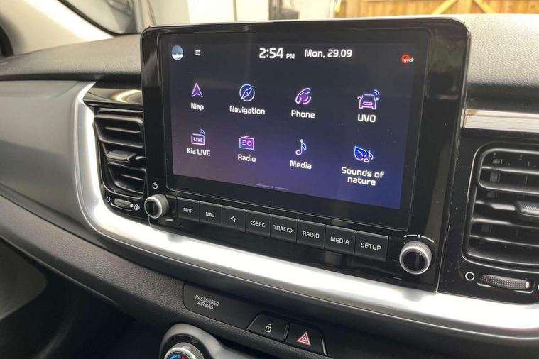 4.2" supervision colour cluster display, 8" touchscreen navigation, Apple car play/Android Auto with voice control, Cruise control + speed limiter, Drive mode selector, Electric power steering, Emergency call service, Emergency stop signalling system, External temperature display, Forward Collision-Avoidance Assist (FCA) - City/Pedestrian/Cyclist, Kia connected services featuring TomTom live, Lane keeping assist system (LKAS), Driver attention warning (DAW) and High beam assist (HBA), Rear parking sensor, Reversing camera system, Trip computer, UVO connect, Intelligent Stop and Go, Audio system with 6 speakers, Bluetooth with music streaming, Front USB port, Rear USB port, Steering wheel mounted controls, Aero blade type windshield wipers, All round electric windows with drivers auto up/down function, Auto dimming rear view mirror, Auto headlights, Automatic defog system, Automatic headlights control, Bi-function projection headlights with static bending, Black side sill, door garnish and wheel arch trims, Black/body colour bumpers, Body coloured exterior door handles, Chrome side window trim, Electrically adjustable/heated/folding door mirrors with LED indicators, Front and rear silver skid plates, Front fog lights, Halogen headlights, Headlight levelling device, Heated rear window, High gloss black and satin radiator grille, LED daytime running lights, LED position light, LED rear combination lights, Privacy glass - Rear windows and tailgate, Rain sensing front wipers, Rear fog lights, Rear side wing doors, Rear wash/wipe, Roof coloured door mirrors with matt black lower housing, Roof coloured rear spoiler with high mounted braking light, Roof rails, Shark fin antenna, Speed variable front wipers, Tinted glass, Two tone paint, Welcome and follow-me home light functionality, Windscreen Washer Level Warning, 12V power point front, 3 seat bench in 2nd row, 60/40 split folding rear seat, Air filter, All-round height adjustable headrests, Automatic air conditioning, Centre armrest storage box, Centre console with cupholders, Cloth/faux leather upholstery with grey accents, D-Cut perforated leather trimmed steering wheel, Dash illumination dimmer switch, Driver's seat height adjuster, Dual Height Luggage Area Floor, Front and centre cabin lights, Front and rear door map pockets with bottle holder, Gear shift indicator, Glovebox illumination, ISOFIX Child seat top tethers and anchor fixings outer rear seats, Leather trimmed gearshift, Luggage area light, Luggage area parcel shelf, Luggage net with hooks, Overhead console lamp, Overhead console with sunglasses cases, Passenger front seatback pockets, Satin chrome interior door handles, Single front passenger seat, Sunvisors with vanity mirror illumination (Driver and front passenger), Tilt/telescopic adjustable steering wheel, ABS with Electronic Brakeforce Distribution (EBD) and Brake Assist System (BAS), All round 3-point seatbelts, Electronic stability control (ESC) and vehicle stability management (VSM), Front passenger airbag cut-off switch, Front seatbelt pretensioners + load limiters, Height adjustable front seatbelts, Hill start assist control (HAC), Impact sensing auto door unlocking, Manual child lock in rear doors, Rear seat Occupancy alert, Seatbelt reminder warning, Twin curtain airbags, Twin front airbags, Twin front side airbags, Tyre pressure monitoring system, Alarm system, Door deadlocks, Engine immobiliser, Locking wheel nuts, Smart key with engine start/stop button, Speed sensitive auto door locking, Visible vehicle identification number, High gloss black centre fascia, 17" Alloy wheels, Tyre mobility kit,
