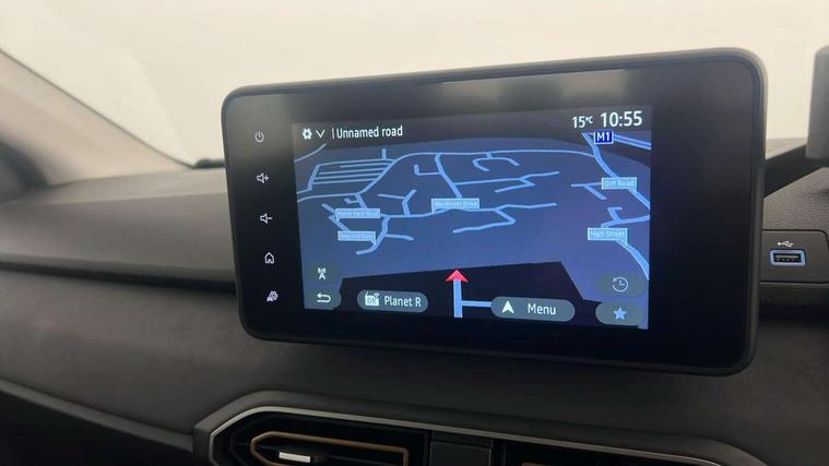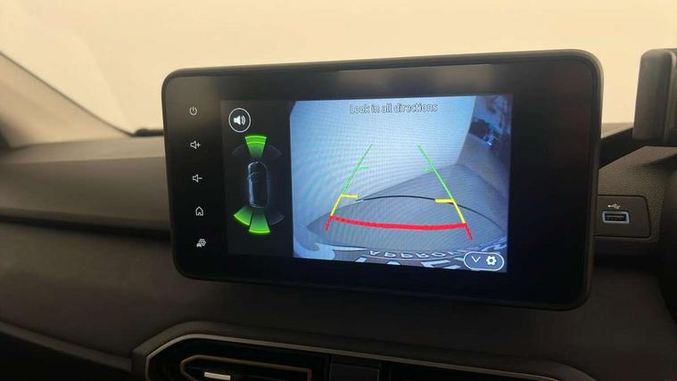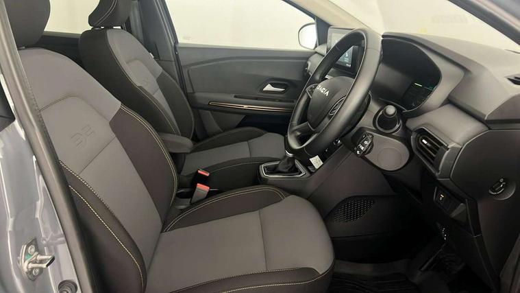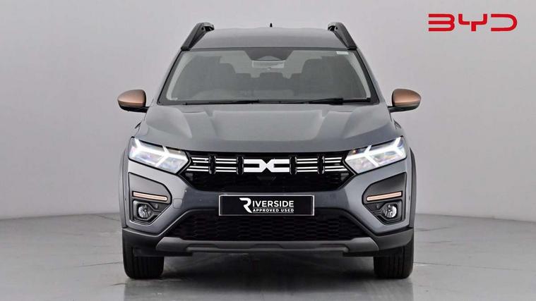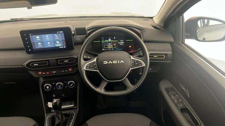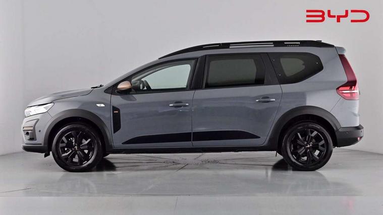 3.5" TFT instrument panel with on-board computer, 7" Color dedicated cluster, Blind spot warning, Check control system, Cruise control and speed limiter, e-Call (emergency call), Eco mode, Electric power assisted steering, Extended grip switch, Exterior temperature display, Front parking sensors, One touch indicators, Rear parking sensors, Rev counter, Reversing camera, Service interval indicator, Stop/start system, Voice control for telephone and radio, Exhaust particle filter, 8" MediaNav with DAB Radio, WIFI Smartphone replication, Bluetooth, 6 speakers with Apple Carplay/Android Auto and Extra map, USB connection for data transfer and charging, USB socket, 3 speed windscreen wipers, Auto lighting, Automatic wipers, Black longitudinal roof bars, Body coloured door handles, Body coloured front and rear bumpers, Chrome radiator grille, Copper brown "Stepway" marking on roof bar, Copper brown deco part on fog lamp area, Copper brown door mirrors, Dark glass, Door sills in topographic pattern, Drivers one touch electric windows, Electric headlight adjustment, Electrically adjustable door mirrors, Front fog lights, Front LED Indicator lights, Headlights with LED low beam illumination, Heated door mirrors, Heated rear window, High level third rear brake light, Initial anti-corrosion treatment, Lateral sticker with topographic pattern, LED automatic daytime running lights, Modular roof bars, Rear electric windows, Rear side wing doors, Rear wash/wipe, Shiny black shark antenna, Snorkel sticker with topographic pattern, Towbar preparation, Transversal emblem and white highlights on front air vent grid, Y-shaped LED lighting signature, 1/3 to 2/3 split folding 2nd row seats, 12v socket in front, 12V socket in rear of vehicle, 2 independently folding and removable 3rd row seats, 2x Rear coat hooks, 3 height adjustable rear headrests, 3 load hooks, 3 seat bench in 2nd row, 4 lashing rings, Automatic air conditioning, Boot light, Copper Brown animation on air vents, Copper brown doors deco parts, Driver and passenger vanity mirror with cover, Elastic straps, Fabric upholstery, Fixed smartphone holder on dashboard, Front and rear rubber mats with topographic pattern, Glovebox, Heated front seats, Height adjustable drivers seat with armrest, Height adjustable front headrests, Height and depth manually adjustable steering wheel, High central armrest with console storage, Isofix points for child seats in both outer rear seats, Lidded storage bin within the centre console, Micro-cloud grey fabric on dashboard, Multifunction steering wheel, Rear ceiling light, Rear door pockets, Satin chrome air vents, Satin chrome interior door handles, Single front passenger seat, Sliding tray tables, Soft feel steering wheel, Steering wheel controls, Timed interior light, Under floor storage in luggage area, 3x3 point rear seatbelts, Anti-lock braking system (ABS), Automatic Emergency Braking System (AEBS), Child locks on rear doors, Door open visual and audible warning, Driver and front passenger airbags, Driver and passenger seatbelt not fastened warning, Driver and passenger side airbags, Electronic parking brake, Electronic Stability Control (ESC), Electronic Stability Programme (ESP), Emergency Brake Assist (EBA), Front passenger airbag deactivation, Front seatbelt pretensioners, Height adjustable front seatbelts, Hill Start Assist (HSA), Side airbags (thorax and curtains - front/rear), Tyre pressure monitor, Alarm, Automatic central locking, Engine immobiliser, Keyless entry, Remote central locking, Decopart on instrument panel and door with textile, 16" Black alloy wheels with copper brown dacia logo, Tyre inflation kit,