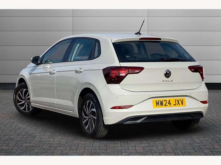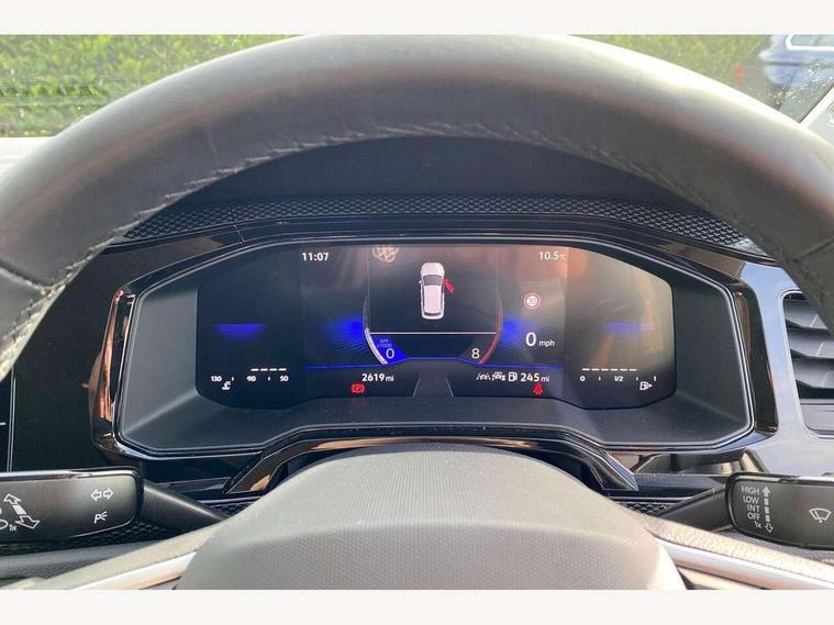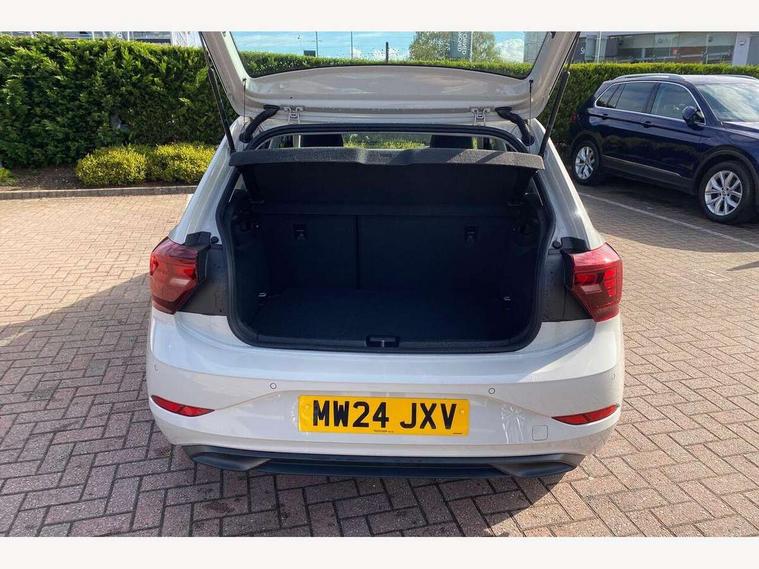 Advanced driver attention and drowsiness monitor, Bluetooth mobile phone interface, Cruise control + speed limiter, Dynamic road sign display, Emergency call service, Lane keeping system Lane Assist, Power assisted speed sensitive steering, Preparation for navigation system with media and internet package, Preparation for We connect and We connect plus, Speedo and rev counter, electronic odometer, trip, service interval display and exterior temperature gauge, Standard rear axle, Trip computer, Warning signal and warning light for front and rear seatbelts not fastened, Washer fluid level indicator, Wireless app connect, Front wheel drive, Rear shock absorpion, Start-stop system with battery regeneration (recuperation - energy recovery during braking), DAB Digital radio, Diversity antenna for FM reception, Front and rear 6 speakers, Automatic dimming interior rear view mirror, Automatic headlight control with LED separate daytime running lights with coming/leaving home function, Body colour bumpers with chrome inserts, Body colour door handles, Body colour door mirrors, Electric front windows, Engine badge deletion, Headlight range adjustment, Heat insulating and laminated safety glass windshield, Heat insulating darkened glass in side and rear windows, Heat insulating glass windscreen, LED Headlights, LED rear combination lamps, Power folding adjustable/heated exterior mirrors and front passenger exterior mirror lowering function, Rain sensor, Rear electric windows, Rear fog light, Rear side wing doors, Rear windscreen washer and wiper with interval delay, Third brake light, 12V power socket in centre console, 2 front and 2 rear reading lights with switch off delay and dimmer, 2 USB-C ports in the front, 2 USB-C charging sockets on the center console in the rear, 3 rear head restraints, 60/40 split folding rear seat and rear seat bench not split, Ceramique roof lining, Chrome plated radiator grille inserts, air vent surrounds and light switch surrounds, Door and side trim panel, Driver and front passenger seat height adjustment, Driver/passenger sunvisors with illuminated vanity mirrors, Front centre armrest, Front seat backrest storage pockets, Front standard seats, Handbrake lever handle in leather, Hartley/Thomas cloth upholstery, Headliner in recycled material, Isofix child seat preparation easy-fit (for two outer rear seats, and front passenger seat) compatible with I-size, Leather trimmed gear knob, Luggage compartment cover, Luggage compartment lighting, Removable luggage compartment floor, Single front passenger seat, Standard climatic zones, Standard pedal cluster, Three spoke leather wrapped multifunction steering wheel, Light and vision pack - Polo, 3 point height adj front seatbelts + pretensioners, 3x3 point rear seatbelts, ABS, Driver and front passenger airbag with front passenger airbag deactivation, Drivers and front passengers safety optimised head restraints, ESC (Electronic stability control) + EDL (Electronic Differntial lock) and ASR (Traction control), Extended and predictive pedestrian/ cyclist protection, Front assist with autonomous emergency braking (for Adaptive Cruise Control ACC up to 130 mph), Front curtain and side airbags with center airbag, Front disc brakes, Hill hold control, Manual child lock in rear doors, Rear drum brakes, Single tone horn, Tyre pressure loss indicator, Alarm with interior protection, Anti-theft alarm system with interior monitoring, backup horn, and towing protection, Anti-theft wheel bolts, Electronic engine immobiliser, Lava stone black gloss/matt decorative inserts in dash and front door panels, Low rolling resistance tyres,