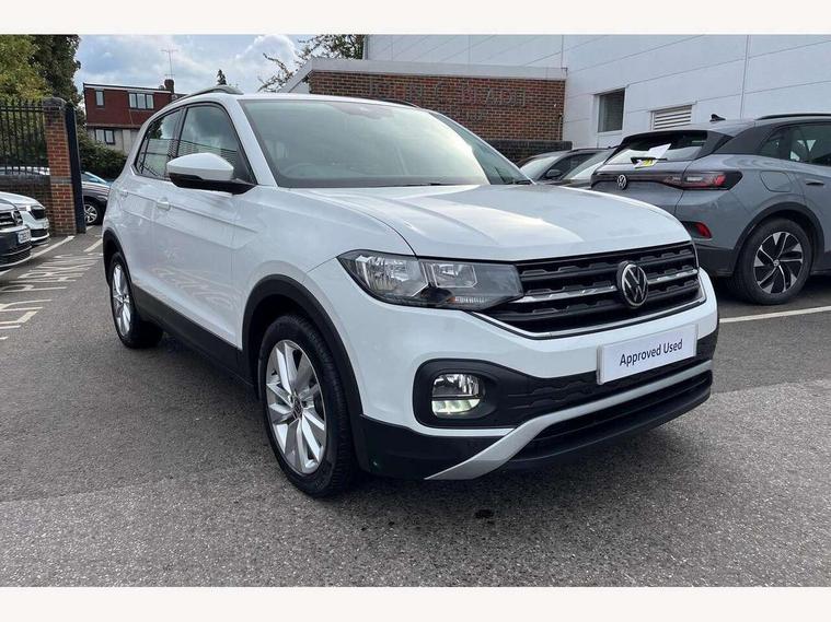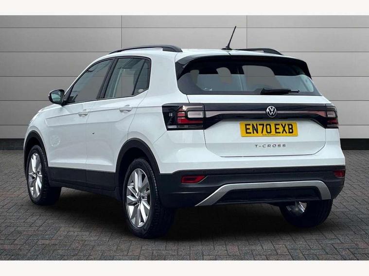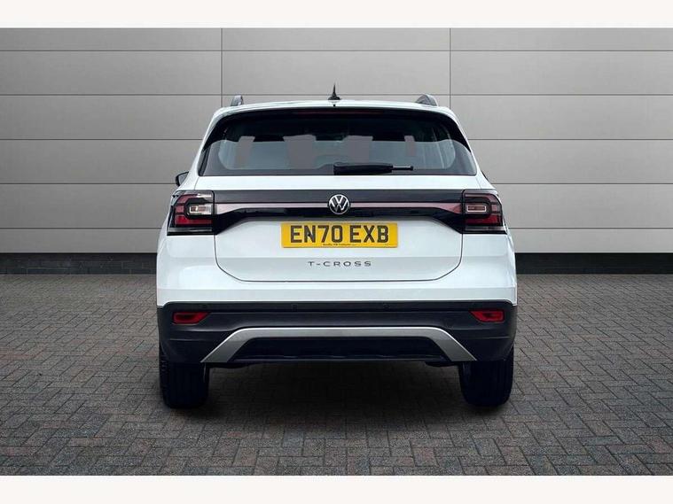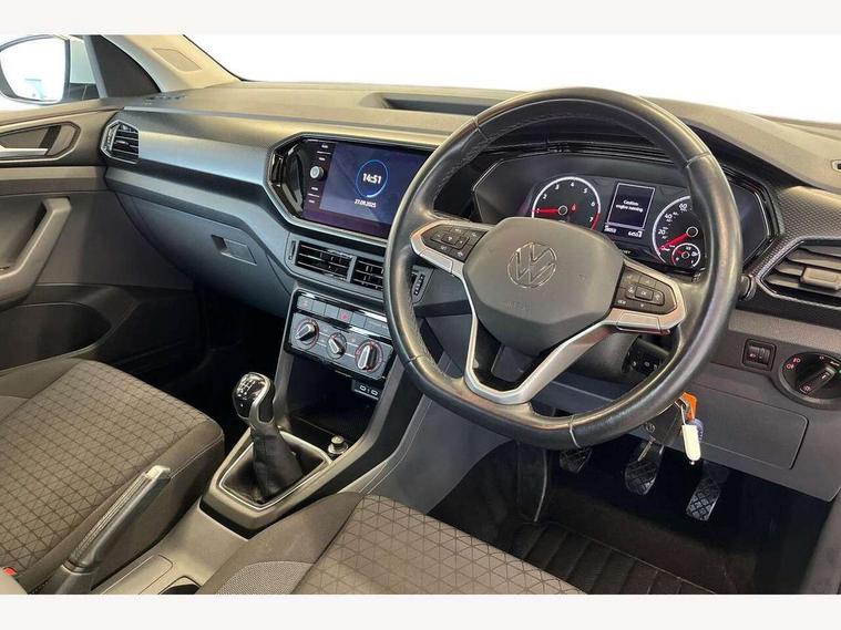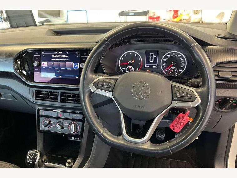'Lights On' Reminder warning buzzer, Adaptive cruise control including front assist, forward collision warning, autonomous emergency braking, speed limiter, Driver alert system, eCall emergency call system, Lane assist, Multifunction computer with visual gear change recommendation for fuel consumption, Power assisted speed sensitive steering, Speedo, rev counter, electronic odometer, trip, service interval display, exterior temperature and fuel gauge, Stop/start system, Warning sound and light for doors and tailgate open, Warning sound and light for front seatbelts unfastened, We Connect Go Dongle, Wireless Car net app connect with Apple CarPlay, combined functionality of Apple CarPlay/Android Auto and MirrorLink, Battery regeneration during braking, Misfuel prevention device, 2x USB connection with USB charging sockets and in rear centre console, Diversity antenna for FM reception, Premium USB cable for Apple or Android smartphone compatibility, Automatic dimming interior rear view mirror, Automatic hazard lights activation under emergency braking, Black roof rails, Body colour door handles, Body coloured bumpers, Dusk sensor + automatic driving lights, Front and rear electric windows, Front fog lights with static cornering function, Galvanised body, Heated rear window, High level 3rd brake light, Lower door sills and door pillars in black, Manual coming/automatic leaving home lighting function, Radiator grille with high gloss surface and chrome strip, Rain sensor, Rear lights incorporating LED technology, Rear window aerial, Rear windscreen washer and wiper with interval delay, Reflectors in all doors, Tailgate with integrated roof spoiler, Windscreen wipers/ intermittent wipe + 4 position delay, 12V Accessory socket in centre console, 3 rear head restraints and 3 rear three point seat belts, 60/40 split folding rear seat backrest, Drawer under drivers seat, Driver and front passenger sunvisor with vanity mirror, Driver's sunvisor with ticket holder, Dust and pollen filter, Front and rear reading lights X 2, Front centre armrest with storage compartment, Front seat back storage pockets, Glovebox, Heating and fresh air system with 4 stage blower, Height/reach adjust steering wheel, Instrument lighting white adjustable panel illumination, Interior light with delay, Isofix child seat preparation for 2 rear child seats, Luggage compartment cover, Luggage compartment lighting, Manual front seats with height adjustment, Moveable and foldable Rear bench seat, Storage compartment in drivers and front passengers door, Variable boot floor, Composition Media infotainment system pack - T cross, Anti-lock Braking System (ABS) with Hydraulic Brake Assist (HBA), Automatic post collision braking system, Driver and front passenger safety-optimised head restraints, Drivers and Front Passengers airbags with front passengers airbag deactivation switch, ESC with EDL, ASR, EDTC and trailer stabilisation function, Extended and proactive pedestrian protection, Front and rear curtain airbags, Front seat side impact airbags, Height adjustable 3 point automatic front seatbelts with pretensioners, Hill start assist, Pre crash preventive occupant protection, Rigid safety cell with front and rear crumple zones, Tyre pressure loss indicator, Volkswagen roadside assistance, Alarm with interior protection and deactivation via infotainment system, Child security locks in rear doors, Remote tailgate unlocking using key fob,