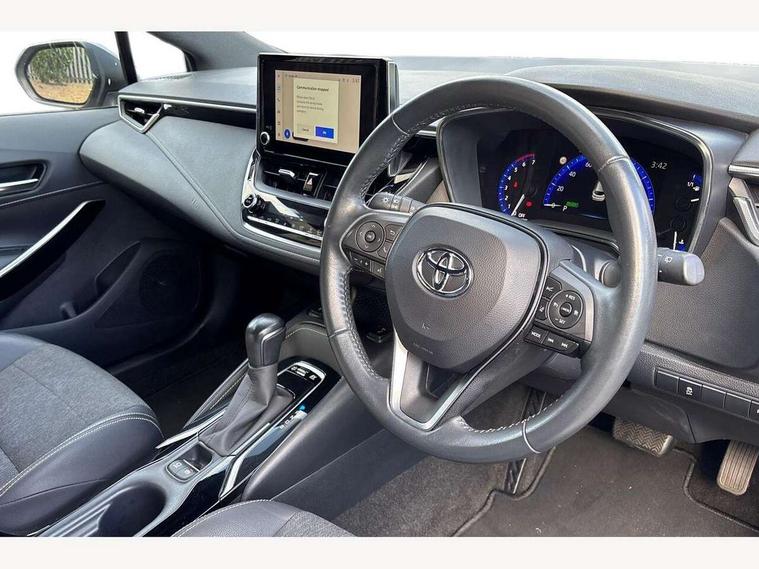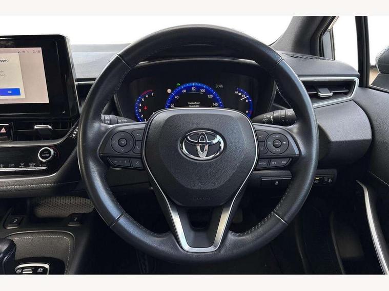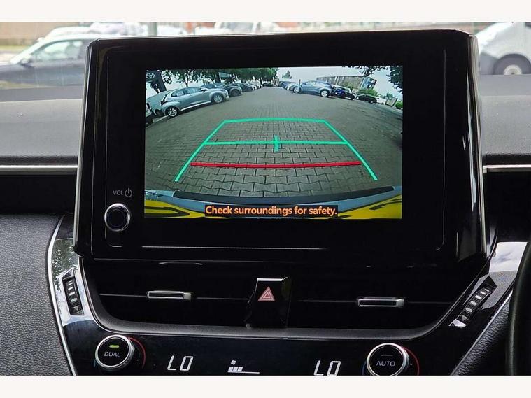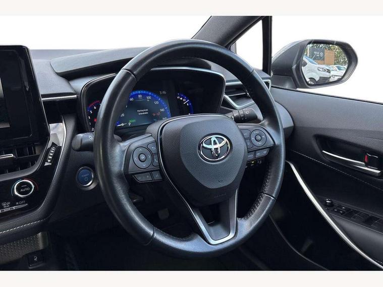 7" Multi information display screen, Bluetooth telephone connectivity, Connected car functionality upgrade, tracker, remote status and e-care, Door trim and centre console material, Dynamic radar cruise control (with RSA) including switch on steering wheel, E-call, Electrically assisted power steering, EV drive indicator, Intelligent park assist, Lane Departure Alert (LDA) switch on steering wheel, Memory on adjustable speed limiter, Push button start, Reversing camera, Smartphone integration with Apple CarPlay and Android auto, Gasoline particulate filter, Vehicle Stability Control (VSC), 6 speakers, 8" Touchscreen with MM19 Multimedia system and voice recognition, AM/FM radio, DAB Digital radio, Toyota touch 2 with go navigation system, USB and Aux in connectors + 12V front outlet, USB charging port in centre storage box, Aluminium roof rails, Anti-jam protection on power windows, Auto dimming inside rear view mirror, Auto up and down function on all power windows, Automatic folding mirrors, Automatic headlights with high beam assist, Black metallic surround on lower front grille, Black toyota logo in front, Body colour rear spoiler, Body coloured bumpers, Body coloured door mirrors, Body coloured outside door handles, Follow me home headlights, LED daytime running lights, LED front fog lights, LED Headlights, LED High mounted stop light, LED rear combi lights with LED lightguide, Noise reduction layer on front windows, Power adjustable heated door mirrors, Power front windows, Power rear windows, Privacy glass, Rain sensing wipers, Rear side wing doors, Rear window defogger, Rear window wiper, Reverse tilting door mirrors, Shark fin antenna, Time adjustment on intermittent wiper, Turning signal integrated indicators in door mirrors, Unique lower skirt, Unique side rocker with black insert, UV-filter on driver and passenger windows, 12v power outlet - luggage side, 3 rear headrests, 3 seat bench in 2nd row, 3 spoke leather steering wheel + gear knob, 60/40 split folding rear seat, Adjustable speed limiter switch on steering wheel, Audio, multimedia and telephone switches on steering wheel, Blue ambient interior illumination to centre tray, front cup holders and front door trim, Boot light, Boot underfloor storage, Clean air filter, Driver and front passenger personal light, Driver and passenger assist grip, Driver and passenger sun visor with mirror and light, Dual sided deck board in boot, Dual zone automatic air conditioning with ECO mode switch, Fabric/synthetic leather upholstery, Front and rear cup and bottle holders, Front and rear door pockets, Front head restraints, Front passenger seat, Heated driver and front passenger seats, Illuminated entry system in room lamp, ISOFIX seat fixing (2 fixings on rear outer seats), Leather gear shift with satin chrome on gear shift console, Leather style armrests, Manual height adjustable for driver and front passenger seat, Passenger seat back pocket, Pollen filter, Power adjustable lumbar support on driver seat, Power window switches with satin chrome inserts, Rear armrest with 2 cupholders, Rear passenger air vents, Rear passenger coat hooks (2), Rear passenger personal lights, Retractable tonneau cover with luggage partition net, Satin chrome inside door handles, Shopping bag hooks in luggage compartment, Side storage in boot, Sliding armrest on centre console box, Slow opening glovebox with lights, Tilt/telescopic steering column, Tonneau cover with under floor storage, Voice recognition switch on steering wheel, Whiplash Injury Lessening (WIL) feature (active headrest) for seats, Parking pack - Corolla, Toyota safety sense 2 pack - Corolla, 3x3 point rear seatbelts, Adjustable driver and front passenger seat belt extender to top anchor point, Anti lock braking system + Electronic brake force distribution, Brake assist function, Child locks on rear doors, Downhill Assist Control (DAC), Electronic parking brake, Emergency brake light signal (EBS), Front passenger airbag on/off switch, Front seatbelt reminder, HAC - Hill start assist control, Rear seat belt reminder, Seatbelt pretensioners and force limiters, Supplemental restraint system (SRS) 7 airbags - dual driver, dual side curtain, side impact and driver knee airbags, Traction control, Tyre pressure warning system, Acoustic vehicle alert system (AVAS), Alarm with motion sensor and immobilizer, Remote central locking + deadlocks, Smart entry, Satin chrome dash trim, Soft touch texture on upper dashboard, Stitching on lower dashboard, Tyre repair kit, Unique wheel finish with red wheel cap,