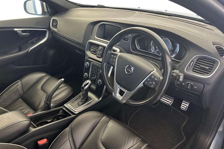 Active TFT crystal driver's instrument display, Front park assist, Information centre, Intelligent driver information system (IDIS), Rear park assist, Rear parking camera, Sensus navigation system, Service interval indicator, Speed limiter, Speed sensitive steering, Diesel particulate filter, Dynamic chassis, DAB Digital radio, Active bending LED headlights, Adaptive brake lights, Auto dimming rear view mirror, Automatic folding door mirrors with ground lights, Automatic headlights, Body colour bumpers, Body colour door handles, Dark tinted rear side windows, Dual exhaust pipes, Electrically adjustable and heated door mirrors, Frameless rear view mirror, Front and rear electric windows, Headlamp levelling, Headlight cleaning system, High level LED brake light, Home safe and approach lighting, LED daytime running lights, LED Headlights, Matt silver finish door mirrors, R Design front grille, R Design lower front nose, Rain sensor windscreen wipers, Rear diffuser, Rear tailgate emblem, Rear wiper, Roof spoiler, Silk metal window trim surround, Visible VIN plate, 12V socket in front + rear tunnel console, 3 spoke leather steering wheel with chrome trim and R design logo, 5 headrests, 60/40 split folding rear seat, A-pillar parking ticket holder, Adjustable front centre armrest, Charcoal headlining, Door sill tread plates, Electronic climate control (ECC), Folding front passenger seat with height/lumbar adjust, Footwell lights, Front cupholders, Front door step lamp, Front reading lights, Front sports seats, Front storage box, Height adjustable drivers seat with lumbar support, Height/reach adjustable steering column, Illuminated driver/passenger vanity mirrors, Illuminated gear knob, Isofix attachments on rear seats, Load cover, Lockable glovebox, Pollen filter, R Design leather sports upholstery, Rear armrest with cupholder, Rear reading lights, Rear theatre lighting, Sports floor mats, Sports pedals, Steering wheel audio controls, WHIPS - Whiplash Protection System, 5 x 3 point seatbelts, ABS+EBA, City safety braking system, Drivers knee airbag, DSTC-Dynamic Stability and Traction Control, Dual stage driver's airbag, Dual stage passenger airbag, Front/rear seatbelt pre-tensioners, Hill start assist, Inflatable curtain, Manual rear child locks, Passenger airbag cut-off device, Pedestrian airbag system, Side airbags, Side curtain airbags, Side impact protection, Tyre pressure monitor, Warning triangle, Anti-theft alarm including immobiliser/volume sensor + level sensor, Deadlocking system, Key integrated remote control central locking, Locking wheel nuts, Stealth aluminium trim, Tyre sealant kit,