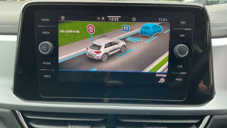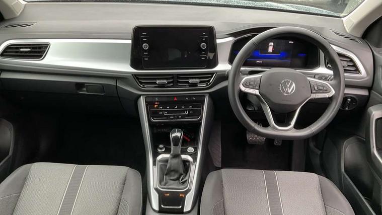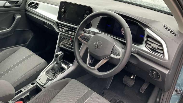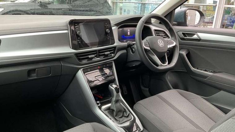 Advanced driver attention and drowsiness monitor, Dynamic road sign display, Emergency call service, Lane keeping system Lane Assist, Mobile phone interface, Modified key software - reduce switch off time for key status change to Long no motion, Online services, Park assist including front and rear parking sensors, Power assisted speed sensitive steering, Rear view camera, Service interval indicator, Tailgate/trunk lid release from outside, Think blue trainer driver tips and journey analysis, Warning sound and light for front seatbelts unfastened, Wireless app connect, Battery regeneration during braking, Front shock absorption, Rear shock absorption chassis with increased ride height, Start/stop function with battery regeneration, DAB Digital radio, Diversity antenna for FM reception, Front and rear 6 speakers, Music playback - MP3, WMA and AAC files, Premium USB cable in choice of either Apple or Android smartphone compatibility, SD card slot, Simultaneous pairing of 2 compatible mobile devices, Title and cover art display, We Connect and We Connect Plus functionality, Auto dimming interior rear view mirror, Automatic hazard lights activation under emergency braking, Automatic headlight control with LED separate daytime running lights with coming/leaving home function, Black roof rails, Body coloured bumpers and radiator grille with chrome trim and front fog lamps with chrome bezel, Body coloured exterior mirror housings and door handles, Electrically adjustable and heated door mirrors, Extended roof spoiler, Exterior mirrors aspherical on driver side, convex on front passenger side, External USB type C socket and charging sockets, Front windscreen wiper with intermittent wipe and 4 position delay, Heated rear window, LED 3rd brake light, LED rear combination lamps, LED rear number plate lights, Power windows with comfort operation and circuit breaker, Privacy glass for rear side windows and rear window, Rain sensor, Rear exhaust tailpipe, Rear fog light on one side and reversing lights on both sides, Rear side wing doors, Rear wash/wipe with intermittent wipe setting, Remote electrically foldable door mirrors, puddle lights and reverse activated passenger's door mirror, 12V power socket in centre console, 3 rear head restraints, 3 seat bench in 2nd row, 4 load lashing points in luggage compartment, Air care climatronic air conditoning system with active combination filter and 2-zone temperature control, Black stitching for floor mats, Ceramique roof liner, Cloth upholstery, Door and side trim panel in cloth, Drawer under drivers seat, Driver/front passenger seat height adjustment, Front centre armrest, Front comfort sports seats, Front cupholders x 2, Front reading light, Front seat back storage pockets, Glove compartment door with light, Instrument lighting, white adjustable panel illumination, Interior ambient lighting and surround lighting, Interior light delay, Isofix child seat preparation, Leather gearshift handle, Load-through provision with cup holder when folded down ('Unsplit rear seat bench, split folding backrest, with centre armrest), Luggage compartment lighting, Lumbar support for driver's and front passengers seat, Non-folding front passenger seat backrest, Single front passenger seat, Storage compartment in left and right luggage area, Storage compartment in rear doors, Storage compartments in driver and front passenger doors, Sunvisors with illuminated vanity mirrors, Variable boot floor, height adjustable and removable, Driver assistance pack without proactive passenger protection - T-Roc Life/Match, 3 point height adj front seatbelts + pretensioners, 3 point seatbelts in outer rear with ECE label, ABS, Child locks on rear doors, City emergency braking and pedestrian monitoring, Driver and front passenger airbag with front passenger airbag deactivation, Driver and front passenger safety-optimised head restraints, Drivers seatbelt reminder, Electronic parking brake, Electronic Stability Control (ESC) inc EDL (Electronic Differential Lock) and ASR (Traction Control), Front and rear passengers curtain airbag system including front side airbags, Front disc brakes, Hill start assist, Predictive pedestrian protection, Rear disc brakes, Two tone horn, Tyre pressure loss indicator, Volkswagen roadside assistance, Alarm with interior protection, Keyless locking and starting system keyless access with safelock, Pewter matt decorative inserts for intrument panel, centre console and door panels at the front, Trims for alloy wheels,