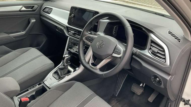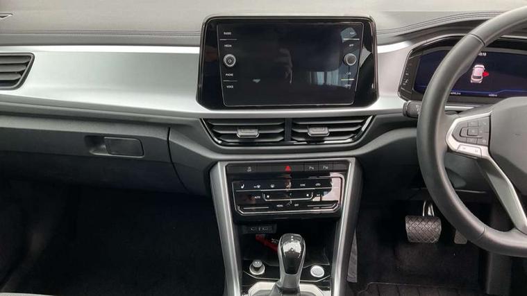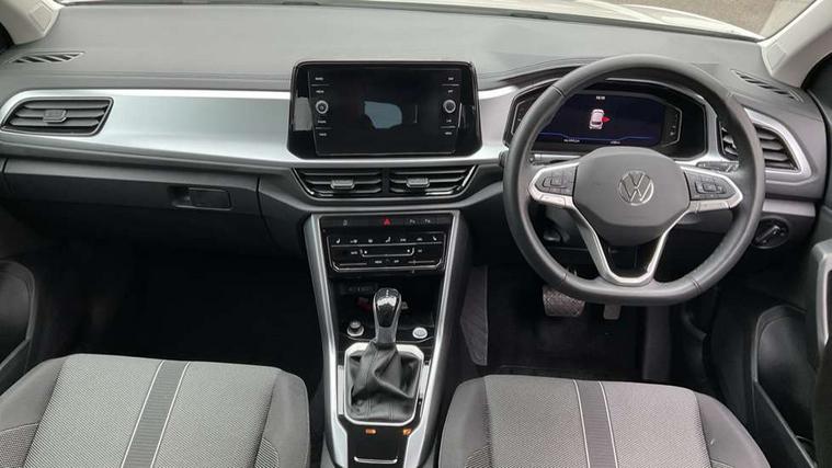 Advanced driver attention and drowsiness monitor, Dynamic road sign display, Emergency call service, Lane keeping system Lane Assist, Mobile phone interface, Modified key software - reduce switch off time for key status change to Long no motion, Online services, Park assist including front and rear parking sensors, Power assisted speed sensitive steering, Rear view camera, Service interval indicator, Tailgate/trunk lid release from outside, Think blue trainer driver tips and journey analysis, Warning sound and light for front seatbelts unfastened, Wireless app connect, Battery regeneration during braking, Front shock absorption, Rear shock absorption chassis with increased ride height, Start/stop function with battery regeneration, DAB Digital radio, Diversity antenna for FM reception, Front and rear 6 speakers, Music playback - MP3, WMA and AAC files, Premium USB cable in choice of either Apple or Android smartphone compatibility, SD card slot, Simultaneous pairing of 2 compatible mobile devices, Title and cover art display, We Connect and We Connect Plus functionality, Auto dimming interior rear view mirror, Automatic hazard lights activation under emergency braking, Automatic headlight control with LED separate daytime running lights with coming/leaving home function, Black roof rails, Body coloured bumpers and radiator grille with chrome trim and front fog lamps with chrome bezel, Body coloured exterior mirror housings and door handles, Electrically adjustable and heated door mirrors, Extended roof spoiler, Exterior mirrors aspherical on driver side, convex on front passenger side, External USB type C socket and charging sockets, Front windscreen wiper with intermittent wipe and 4 position delay, Heated rear window, LED 3rd brake light, LED rear combination lamps, LED rear number plate lights, Power windows with comfort operation and circuit breaker, Privacy glass for rear side windows and rear window, Rain sensor, Rear exhaust tailpipe, Rear fog light on one side and reversing lights on both sides, Rear side wing doors, Rear wash/wipe with intermittent wipe setting, Remote electrically foldable door mirrors, puddle lights and reverse activated passenger's door mirror, 12V power socket in centre console, 3 rear head restraints, 3 seat bench in 2nd row, 4 load lashing points in luggage compartment, Air care climatronic air conditoning system with active combination filter and 2-zone temperature control, Black stitching for floor mats, Ceramique roof liner, Cloth upholstery, Door and side trim panel in cloth, Drawer under drivers seat, Driver/front passenger seat height adjustment, Front centre armrest, Front comfort sports seats, Front cupholders x 2, Front reading light, Front seat back storage pockets, Glove compartment door with light, Instrument lighting, white adjustable panel illumination, Interior ambient lighting and surround lighting, Interior light delay, Isofix child seat preparation, Leather gearshift handle, Load-through provision with cup holder when folded down ('Unsplit rear seat bench, split folding backrest, with centre armrest), Luggage compartment lighting, Lumbar support for driver's and front passengers seat, Non-folding front passenger seat backrest, Single front passenger seat, Storage compartment in left and right luggage area, Storage compartment in rear doors, Storage compartments in driver and front passenger doors, Sunvisors with illuminated vanity mirrors, Variable boot floor, height adjustable and removable, Driver assistance pack without proactive passenger protection - T-Roc Life/Match, 3 point height adj front seatbelts + pretensioners, 3 point seatbelts in outer rear with ECE label, ABS, Child locks on rear doors, City emergency braking and pedestrian monitoring, Driver and front passenger airbag with front passenger airbag deactivation, Driver and front passenger safety-optimised head restraints, Drivers seatbelt reminder, Electronic parking brake, Electronic Stability Control (ESC) inc EDL (Electronic Differential Lock) and ASR (Traction Control), Front and rear passengers curtain airbag system including front side airbags, Front disc brakes, Hill start assist, Predictive pedestrian protection, Rear disc brakes, Two tone horn, Tyre pressure loss indicator, Volkswagen roadside assistance, Alarm with interior protection, Keyless locking and starting system keyless access with safelock, Pewter matt decorative inserts for intrument panel, centre console and door panels at the front, Trims for alloy wheels,