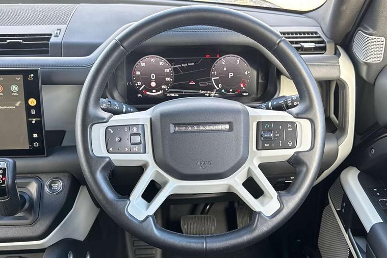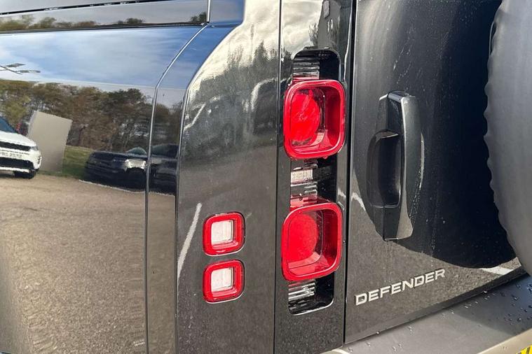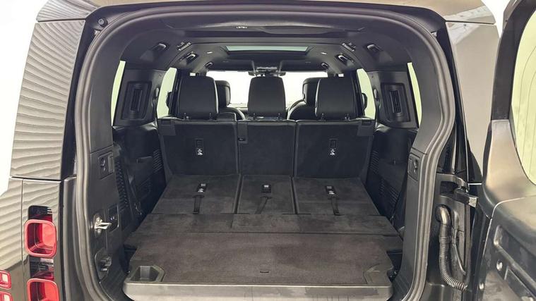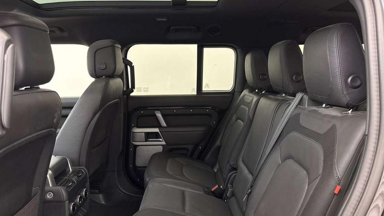 11.4" touchscreen, 360 degree parking aid, 3D Surround Camera with 360 View, 180 Rear View, Front Traffic Detection, Forward Vehicle Guidance, Tow Hitch Assist and clear sight Ground View, Adaptive cruise control, Android Auto, Apple CarPlay, Assisted tailgate with soft close, Blind spot assist, Bluetooth system, Brake pad wear indicator, Clear exit monitor, Connected navigation pro, Driver condition monitor, Electric power assisted steering (EPAS), Interactive driver display, Lane keep assist, Push button start, Rear collision monitor, Rear traffic monitor, Traffic sign recognition with adaptive speed limiter, Trip computer, Wade Sensing, 8 speed automatic transmission, Adaptive dynamics, All wheel drive system, Electronic air suspension, Twin speed transfer box, DAB Radio (Digital Audio Broadcasting), Pivi pro connected, Auto dimming interior rear view mirror, Automatic headlight levelling, Automatic headlights, Black exposed rear recovery eyes, Black roof rails, Centre high mounted stop light, Electric heated/power fold door mirrors with approach lights and auto dimming driver side, Electric windows with one touch open/close and anti-trap, Follow me home lighting, Front fog lights, Heated rear window with timer, Heated windscreen, LED tail lights, Privacy glass, Puddle lights, Rain sensing windscreen wipers, Rear fog lights, Rear side wing doors, Rear wiper, Side hinged tailgate, Sliding panoramic roof, Trailer stability assist, X-Dynamic badge, 12V power socket in loadspace, 14 way heated and cooled electric adjustable memory front seats with 4 way manual headrests, 3 seat bench in 2nd row, 3 seat bench in third row, Air quality sensor, Alpine lights, Cabin Air Purification plus, Configurable cabin lighting, Durable rubber cabin flooring, Durable rubber loadspace flooring, Electric cabin pre conditioning, Electric reach + rake adjustable steering column, Extended leather upgrade, Footwell lights, Front passenger isofix child seat attachment, Heated steering wheel, Loadspace cover, Loadspace Hook, Multifunction steering wheel, Overhead stowage for sunglasses, Premium cabin lighting, Rear headrests, Rear ISOFIX, Rear reading lights, Single front passenger seat, Storage glovebox, Sunvisors with illuminated vanity mirrors, Twin front cupholders with cover, Non-smoker package, Online pack with data plan - Defender, 5 x 3 point seatbelts, ABS, Brake hold function, Cornering brake control (CBC), Customer configurable autolock, DSC - Dynamic Stability Control, EBD - Electronic brakeforce distribution, Electric parking brake (EPB), Emergency brake assist, Emergency braking, ESP + traction control, Front airbags with passenger seat occupant detector, HDC - Hill descent control, Hill launch assist, Low traction launch, Power operated child locks, Remote for (e-Call, Optimised assistance call, InControl app, Climate, beep and flash and door), RSC - Roll stability control, Seat belt reminder, TPMS (Tyre pressure monitoring system), Alarm, Immobiliser, Intrusion sensor, Keyless entry, Locking wheel nuts, All season tyres, Body coloured spare wheel cover,