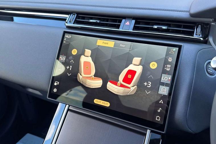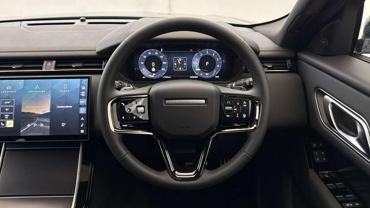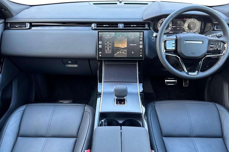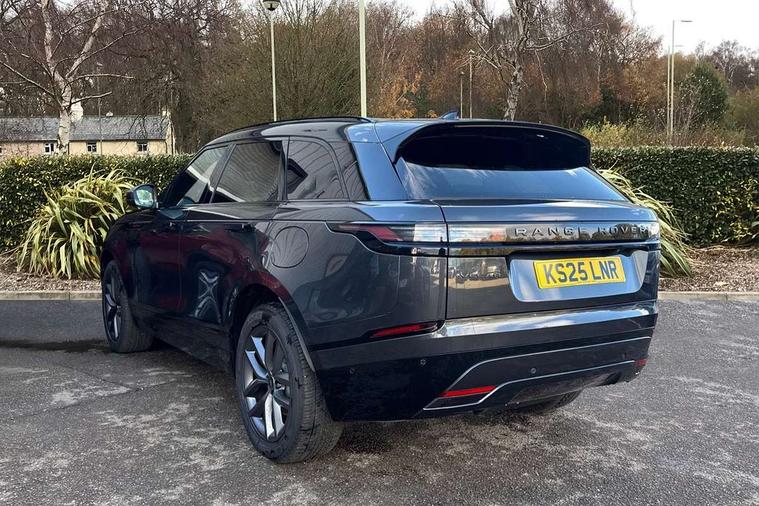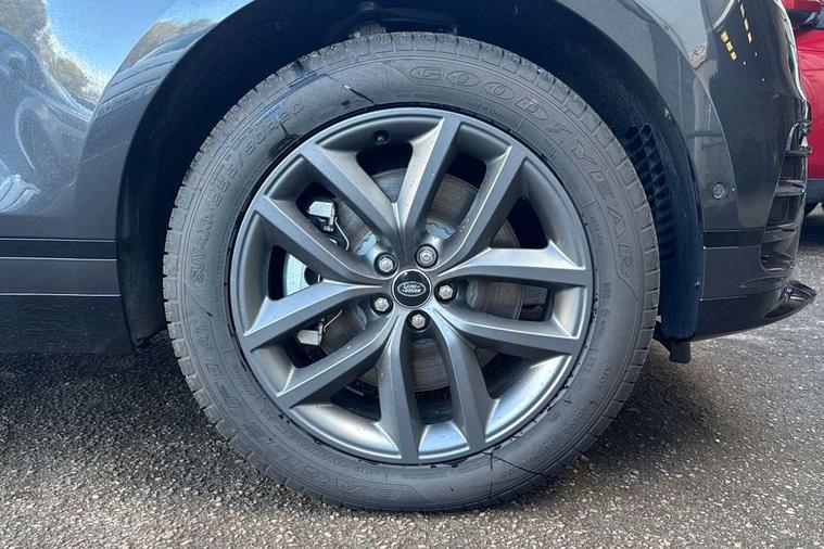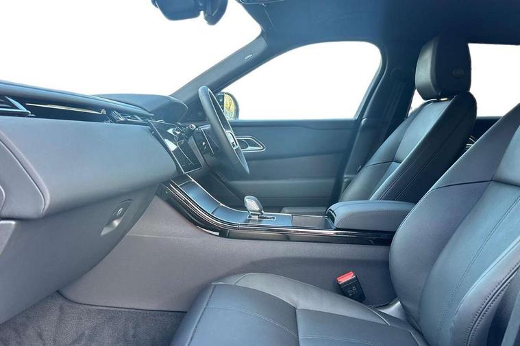 3D surround camera includes forward traffic detection and vehicle guidance, Android Auto, Apple CarPlay, Blind spot assist, Bluetooth connectivity, Brake pad wear indicator warning light, Driver condition monitor, eCall emergency call system, Front and rear parking aid, InControl remote, Land Rover InControl apps, Lane keep assist, Pivi pro with connected navigation, Rear traffic monitor, Service indicator, Speed proportional electronic power assisted steering (EPAS), Traffic sign recognition with adaptive speed limiter, Trip computer, Voice control system, Wade Sensing, Wireless device charging, 7kw on board charger, 8 speed automatic transmission, AC/DC charging, Adaptive dynamics, All terrain progress control, Coil suspension system, Home charging cable, Open differential with torque vectoring by braking, Public charging cable, Single speed transfer box, DAB radio, Steering wheel mounted controls, 3rd brake light, Acoustic laminated windscreen, Auto dimming interior rear view mirror, Auto high beam assist, Automatic headlamp levelling, Automatic headlights, Body coloured bumpers, Boot protection plate, Electric windows with one touch open/close and anti trap, Flush deployable exterior door handles, Follow me home headlights, Heated rear window with timer, Heated washer jets, Heated windscreen, LED headlights with signature DRL, Metal front tread plates, Metal load space scuff plates, Power fold, auto-dimming, heated door mirrors with memory and approach lights, Rain sensor windscreen wipers, Rear animated directional indicators, Rear fog lights, Rear side wing doors, Rear wash/wipe, Tailgate/boot lid spoiler, Trailer stability assist, Velar badge, 14 way electrically adjustable front seats with driver's memory function, 3 seat bench in 2nd row, Ambient lighting, Bright metal pedals, Carpet mats, Driver/passenger sunvisors with illuminated vanity mirrors, Ebony morzine headlining, Electrically adjustable steering column, Heated steering wheel, Isofix system on outer rear seats, Loadspace cover, Overhead lighting console, Overhead stowage for sunglasses, Passive front headrests, Rear air vents, Rear centre headrest, Single front passenger seat, Twin front cupholders, Twin sliding front centre armrest, Online pack with data plan - Velar, Power socket pack 2 - Velar, 380mm front brakes and 325mm rear brakes, 3x3 point rear seatbelts, Anti-lock braking system (ABS), Cornering brake control, Curtain airbags, Customer configurable autolock, Door side intrusion beams, Driver airbag, DSC - Dynamic Stability Control, Electronic brake force distribution, Electronic parking brake, Electronic traction control, Emergency braking, Front and rear seatbelt reminder, Hill descent control, Hill launch assist, Low traction launch, Passenger airbag, Power operated child locks, Rear airbags, Roll stability control, Side airbags, Tyre pressure monitoring system (TPMS), Global lock and unlock switch on driver door, Immobiliser, Intrusion sensor, Keyless entry, Lock only switch on front passenger door, Locking wheel nuts, Perimetric alarm, Remote central locking, All season tyres,