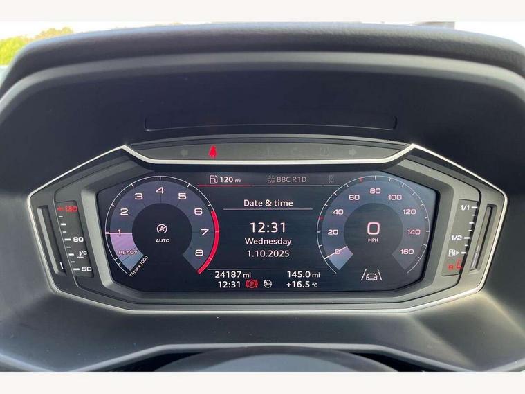 10.25" Digital instrument cluster display classis style instrument dials + speed, odometer, time, outside temperature, telephone menu + fuel level warning, Audi connect safety emergency and service including E-call, Audi drive select - power steering assistance + engine, Audi smartphone interface with connect compatible smartphone via USB directly MMI display + Nav, music, third party apps controlled via MMI controller, Automatic start/stop system, Bluetooth interface, Cruise control, Driver's information system, Electromechanical power steering, Lane departure warning system, Rear parking sensor, Service interval indicator, Speed limiter, Voice control system, Washer fluid level indicator, Dynamic suspension, 1 x SDXC card reader, 1 x USB type C and 1 USB type A charging points, DAB Digital radio, MMI radio plus with 8.8" colour MMI display screen and MMI touch, Auto dimming rear view mirror, Body coloured bumpers, Body coloured door mirrors, Electric front and rear windows, Electrically adjustable, heated, folding door mirrors with integrated LED side indicator, Front side air inlets in grained matt black and C frame in titanium black, Heat insulating glass windscreen and side windows, Heated rear windscreen, LED headlights with LED rear lights + dynamic rear indicators + headlight adjustment and high beam, turning light + LED daytime running lights, Radiator grille and rear diffuser in matt titanium black, Radiator protective grille frame in matt aluminium silver, Rain and light sensors, Rear fog lights, Rear wiper, Scandium grey tailpipe trim, Side front spoiler lips in grained matt black, 12V socket in centre console with two cup holders, 3 rear seats with headrests, 40:60 Split folding rear seat or folded fully, Door sill trims with aluminium inlay, Driver and passenger seat with manual height adjust with forward and backwards adjustment, Front head restraints, Front/rear floor mats, Height and reach adjustable steering wheel, ISOFIX child seat mounting for front passenger and outer rear seats including top tether attachment point of outer rear seats, Leather gear knob with aluminium trim, Leatherette handbrake grip, Luggage compartment light with front and rear reading lights, Manually adjustable lumbar support in front seats, Novum cloth upholstery with front sport seats, Titanium grey cloth headlining, Luggage compartment pack - A1, 3x3 point rear seatbelts, Audi pre-sense front with pedestrain and cyclist recognition, Brake assist function, Driver and front passenger airbag with front side and head airbags, Electronic Stability Control including ABS, EBD, ASR and EDL, Front and rear seatbelt reminder, Front passenger airbag deactivation switch, Hill hold assist, Seatbelt height adjustment for front seats, Seatbelt monitoring, Tyre pressure warning light, Warning triangle and first aid kit, Anti theft alarm, Anti theft wheel bolts and loose wheel warning, Immobiliser, Remote central locking with 2 foldaway keys, Aluminium trim for control switches, air vents and digital instrument cluster, Silver grey accent areas including air vents, door handle recesses and centre console in diamond paint finish, Slate grey inlays polygon structure in fine paint finish,