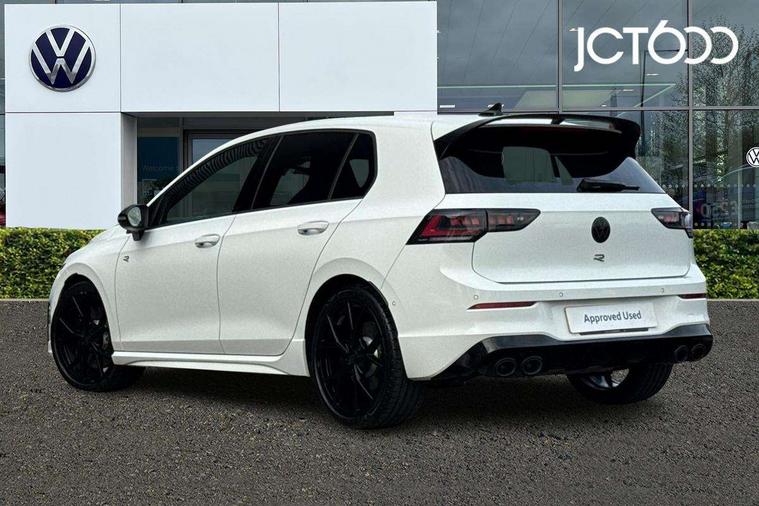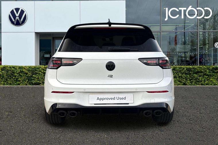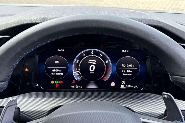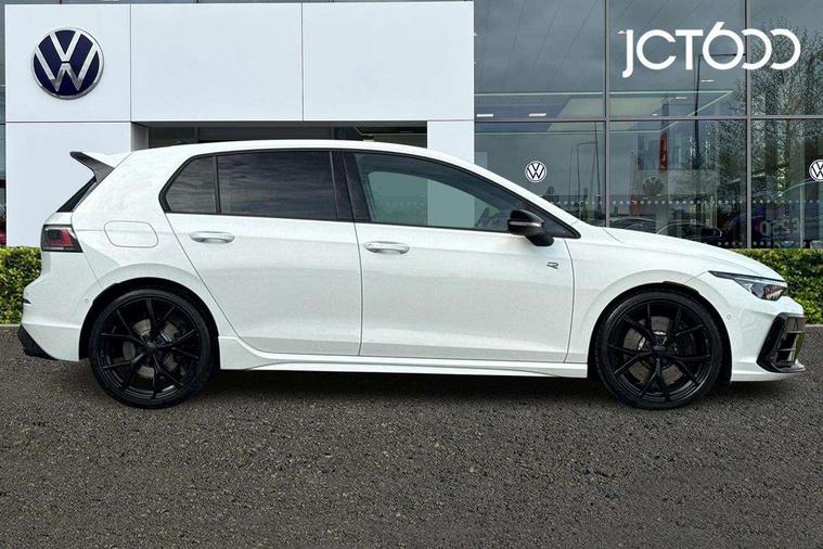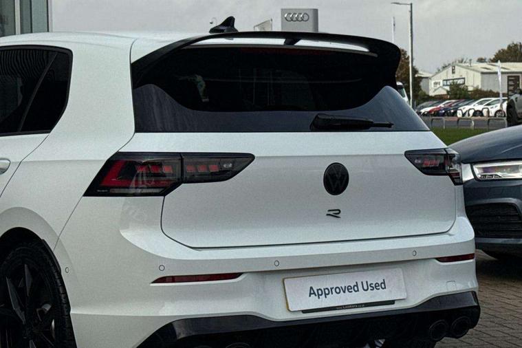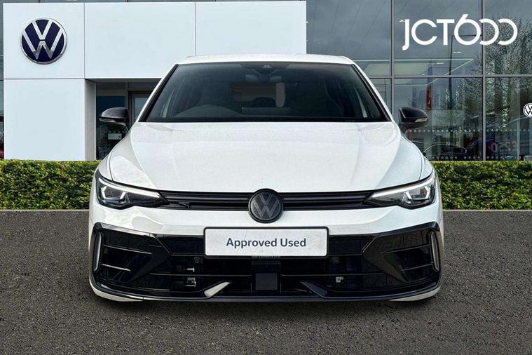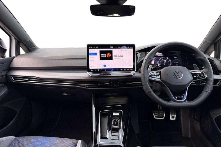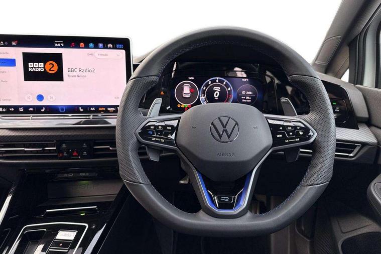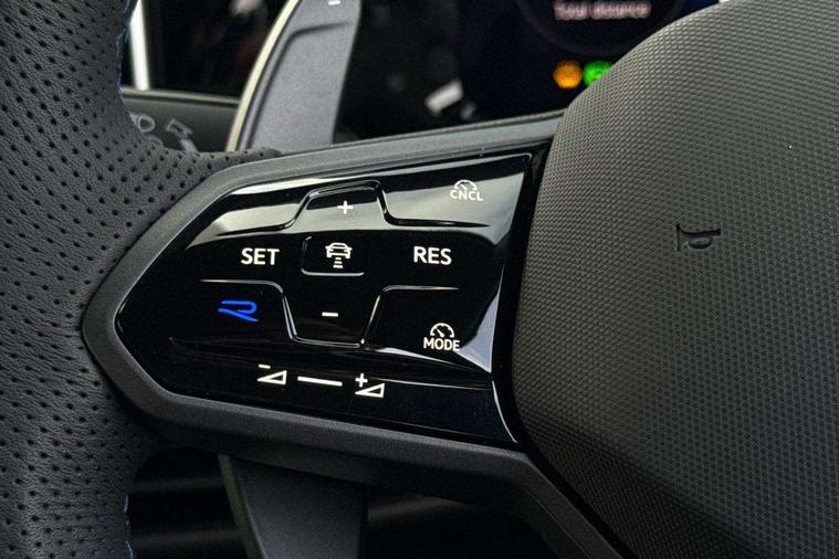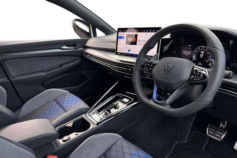 Activated carbon canister, Adaptive cruise control (ACC), Advanced driver attention and drowsiness monitor, Dynamic road sign display, E-Sim card for online connectivity, eCall emergency call system, Electronic maximum speed limit increased to 270 km/h, includes driving Modes 'drift' and 'special', larger roof spolier and GPS laptimer + G-Meter, Multi-color Digital cockpit pro, selection of different info profile possible, Multifunction front facing camera for distance control, Navigation system, Oncoming vehicle braking when turning including swerve support, Preparation for light assist system, Progressive steering, Side assist blind spot lane change system, rear traffic alert and exit warning system, Speed limiter, Speedo, rev counter, electronic odometer, trip, service interval display, exterior temperature and fuel gauge, Traffic jam assist, Voice enhancer and voice control, Warning signal and warning light for front and rear seatbelts not fastened, We connect plus preparation, We connect preparation, Wireless app connect, All wheel drive - 4Motion, Petrol Particulate Filter, Sports suspension, Start-stop system with battery regeneration (recuperation - energy recovery during braking), XDS electronic differential lock for improved traction and handling, 2 USB C ports in front, 2 USB charging sockets on the centre console in the rear charging capacity upto 45W, Comfort telephony + wireless charging, without wireless aerial connection, Digital radio reception (DAB), Diversity antenna for FM reception, Gaming platform via car app, Infotainment system with 12.9" display, Mobile phone interface with inductive charging feature, 3rd brake light, Auto dimming rear view mirror, Auto headlights, Automatic headlamp activation with Coming home and Leaving home feature, Black badge on B-pillar, Black mirror caps, Black strips on radiator grille and headlights, Body colour door handles, Darkened headlights, Darkened R Logos and VW logos in front, rear and on fender, Exhaust system with black tailpipe, Exterior ambient lighting with illuminated lighting animation and wake up/goodbye scenario, Exterior mirrors convex on the left and aspherical on the right, Front and rear electric windows, Front fog lamps and cornering light, Heat insulating windshield made of laminated glass, LED daytime running lights, LED matrix headlights with ambient light V2, advanced high beam, dynamic range contol with cornering, LED rear lamp with indicator, poor weather, R name plate, Rain sensor, Rear fog light on one side and reversing lights on both sides, Rear side wing doors, Rear tinted glass 65% light absorbing from B pillar backwards, Rear windscreen washer and wiper with interval delay, Remote electrically foldable door mirrors, puddle lights and reverse activated passenger's door mirror, Welcome light with surround lighting, 12V socket in front centre console, 12V socket in luggage compartment, 3 rear head restraints, 3 seat bench in 2nd row, 30 colour ambient lighting, illuminated center console storage compartment in front, Air care climatronic 3 Zone automatic climate control with rear air conditioning control panel, Aluminium gearshift handle, Brushed stainless steel pedals, Carpet mats, front and rear, Front centre armrest, Integrated front head restraints, ISOFIX anchors for child seats on outer rear bench seats and on front passanger seat compatible for i-Size, Luggage compartment lighting, Rear cupholder and loadthough, Single front passenger seat, Soul black instrument panel, Split folding backrest with centre armrest and unsplit rear seat bench, Storm grey roof lining, Sun visors with illuminated vanity mirrors, Driver assistance pack - Golf DSG Estate/Hatchback, R styling pack - Golf, Technology park and comfort pro package - Golf Hatchback, 3 point height adj front seatbelts + pretensioners, 3 rear three point seatbelts, ABS, Autonomous emergency braking front assist with pedestrian and cyclist monitoring, Child locks on rear doors, Disc brakes in rear incl. brake calipers in black with darkened R-logo, Driver and front passenger airbag with front passenger airbag deactivation, Electronic parking brake with auto hold, ESC (Electronic Stability Control), Extended pedestrian protection measures, Hill start assist, Two tone horn, Tyre pressure loss indicator, Volkswagen roadside assistance, Anti theft wheel bolts, Preparation for alcohol interlock, Wheel hub cover with darkened R-logo,