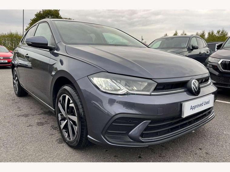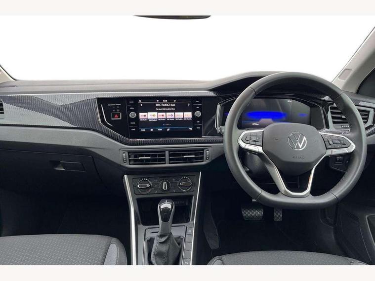 Advanced driver attention and drowsiness monitor, Bluetooth mobile phone interface, Dynamic road sign display, Emergency call service, Multifunction front facing camera for distance control, Park distance control, Power assisted speed sensitive steering, Predictive adaptive cruise control without follow-to-stop and speed limiter, Preparation for navigation system with media and internet package, Preparation for We connect and We connect plus, Rear view camera, Speedo and rev counter, electronic odometer, trip, service interval display and exterior temperature gauge, Standard rear axle, Travel Assist - Lane keeping system and traffic jam assist, Travel assist including emergency assist, Trip computer, Warning signal and warning light for front and rear seatbelts not fastened, Washer fluid level indicator, Wireless app connect, Front wheel drive, Rear shock absorpion, Start-stop system with battery regeneration (recuperation - energy recovery during braking), DAB Digital radio, Diversity antenna for FM reception, Front and rear 6 speakers, Automatic dimming interior rear view mirror, Automatic headlight control with LED separate daytime running lights with coming/leaving home function, Body colour bumpers with chrome inserts, Body colour door handles, Body colour door mirrors, Electric front windows, Engine badge deletion, Headlight range adjustment, Heat insulating and laminated safety glass windshield, LED Headlights, LED rear combination lamps, Power folding adjustable/heated exterior mirrors and front passenger exterior mirror lowering function, Rain sensor, Rear electric windows, Rear fog light, Rear side wing doors, Rear tinted glass from B-pillar backwards approx 65% tinted, Rear windscreen washer and wiper with interval delay, Third brake light, 12V power socket in centre console, 2 front and 2 rear reading lights with switch off delay and dimmer, 2 USB-C ports in the front, 2 USB-C charging sockets on the center console in the rear, 3 rear head restraints, 60/40 split folding rear seat and rear seat bench not split, Ceramique roof lining, Chrome plated radiator grille inserts, air vent surrounds and light switch surrounds, Door and side trim panel, Driver and front passenger seat height adjustment, Driver/passenger sunvisors with illuminated vanity mirrors, Front centre armrest, Front seat backrest storage pockets, Front standard seats, Handbrake lever handle in leather, Hartley/Thomas cloth upholstery, Headliner in recycled material, Isofix child seat preparation easy-fit (for two outer rear seats, and front passenger seat) compatible with I-size, Leather trimmed gear knob, Luggage compartment cover, Luggage compartment lighting, Removable luggage compartment floor, Single front passenger seat, Standard climatic zones, Standard pedal cluster, Three spoke leather wrapped multifunction steering wheel with shifting paddles, Light and vision pack - Polo, 3 point height adj front seatbelts + pretensioners, 3 point seat belt for centre rear seat, 3 point seatbelts, outer rear with ECE lable, ABS, Driver and front passenger airbag with front passenger airbag deactivation, Drivers and front passengers safety optimised head restraints, ESC (Electronic stability control) + EDL (Electronic Differntial lock) and ASR (Traction control), Extended and predictive pedestrian/ cyclist protection, Front assist with autonomous emergency braking (for Adaptive Cruise Control ACC up to 130 mph), Front curtain and side airbags with center airbag, Front disc brakes, Hill hold control, Manual child lock in rear doors, Rear drum brakes, Single tone horn, Tyre pressure loss indicator, Alarm with interior protection, Anti-theft alarm system with interior monitoring, backup horn, and towing protection, Anti-theft wheel bolts, Electronic engine immobiliser, Lava stone black gloss/matt decorative inserts in dash and front door panels, 16" Torsby alloy wheels, Low rolling resistance tyres,