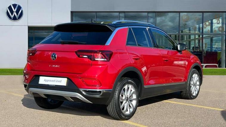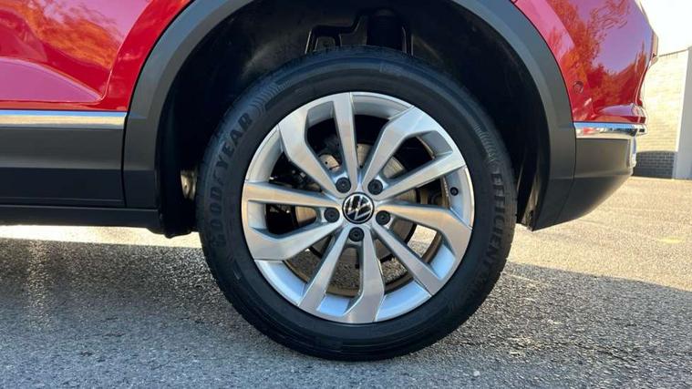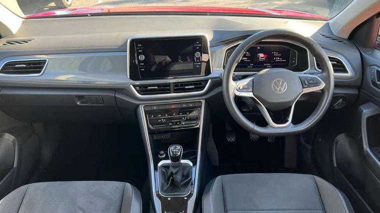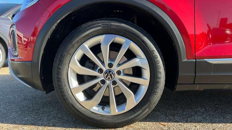 10.25" Digital cockpit pro, Bluetooth mobile phone interface, Driver alert system with fatigue detection, Driver tips and journey analysis, Dynamic road sign display, Emergency call service, Lane keeping system Lane Assist, Modified key software - reduce switch off time for key status change to Long no motion, Online services, Park assist including front and rear parking sensors, Power assisted speed sensitive steering, Service interval indicator, Tailgate/trunk lid release from outside, Think blue trainer driver tips and journey analysis, Warning sound and light for front seatbelts unfastened, Wireless app connect, Battery regeneration during braking, Front shock absorption, Rear shock absorption chassis with increased ride height, Start/stop function with battery regeneration, Diversity antenna for FM reception, Front and rear 6 speakers, Music playback - MP3, WMA and AAC files, Premium USB cable in choice of either Apple or Android smartphone compatibility, SD card slot, Simultaneous pairing of 2 compatible mobile devices, Title and cover art display, We Connect and We Connect Plus functionality, 3rd brake light, Auto dimming interior rear view mirror, Automatic hazard lights activation under emergency braking, Automatic headlight control with LED separate daytime running lights with coming/leaving home function, Body colour sports bumpers with silver metallic underbody fascia, Dynamic headlight range control with self adjusting whilst driving, Extended roof spoiler, Exterior mirrors aspherical on driver side, convex on front passenger side, External USB type C socket and charging sockets, Front windscreen wiper with intermittent wipe and 4 position delay, Heated rear window, LED Plus headlamps, LED rear combination lamps, LED rear number plate lights, LED tail lamp rear comination lamps, Light mode for poor weather, rain, fog or snow, Power windows with comfort operation and circuit breaker, Rain sensor, Rear exhaust tailpipe, Rear fog light on one side and reversing lights on both sides, Rear side wing doors, Rear wash/wipe with intermittent wipe setting, Remote electrically foldable door mirrors, puddle lights and reverse activated passenger's door mirror, 12V power socket in centre console, 3 rear head restraints, 3 seat bench in 2nd row, 4 load lashing points in luggage compartment, Air care climatronic air conditoning system with active combination filter and 2-zone temperature control, Chrome plated radiator grille inserts, air vent surrounds and light switch surrounds, Door and side trim panel with leatherette insert, Drawer under drivers seat, Front + rear carpet mats, Front centre armrest, Front comfort sports seats, Front cupholders x 2, Front footwell illumination, Instrument lighting, white adjustable panel illumination, Interior ambient lighting and surround lighting, Interior light delay, Isofix child seat preparation, Leather gearshift handle, LED interior light with switch off delay/dimmer and 2 front/rear LED reading lights, Load-through provision with cup holder when folded down ('Unsplit rear seat bench, split folding backrest, with centre armrest), Luggage compartment lighting, Non-folding front passenger seat backrest, Single front passenger seat, Storage compartment in left and right luggage area, Storage compartment in rear doors, Storage compartments in driver and front passenger doors, Sunvisors with illuminated vanity mirrors, Variable boot floor, height adjustable and removable, Driver assistance pack without proactive passenger protection - T-Roc, 3 point height adj front seatbelts + pretensioners, 3 point seatbelts in outer rear with ECE label, ABS, Child locks on rear doors, Driver and front passenger airbag with front passenger airbag deactivation, Driver and front passenger safety-optimised head restraints, Drivers seatbelt reminder, Electronic parking brake, Electronic Stability Control (ESC) inc EDL (Electronic Differential Lock) and ASR (Traction Control), Front and rear passengers curtain airbag system including front side airbags, Front assist with city emergency braking and pedestrian monitoring, Front disc brakes, Front seat side impact airbags, Predictive pedestrian protection, Rear disc brakes, Single tone horn, Tyre pressure loss indicator, Volkswagen roadside assistance, Alarm with interior protection, Anti-theft alarm system with interior monitoring, backup horn, and towing protection, Remote central locking with SAFELOCK, radio remote control with 2 remote control folding keys, Trims for alloy wheels,