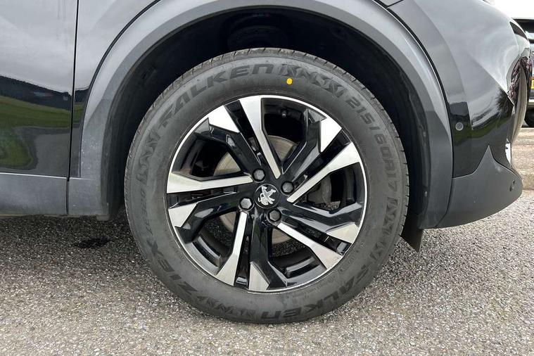 Blind spot monitoring, Bluetooth telephone facility, Connected 3D navigation, Driver attention warning, Exterior temperature indicator with ice warning, Front and rear parking sensors, Lane keep assist, Mirror screen with mirror link, apple carplay and android auto, Multi function trip computer, PEUGEOT i-Cockpit with 10" capacitive colour touchscreen, PEUGEOT i-Cockpit with compact steering wheel, PEUGEOT i-Cockpit with configurable 3D headup instrument panel, PEUGEOT SOS and assistance, Smart phone docking station, Smartphone charging plate, Speed limit recognition and recommendation, Visio Park 1 with 180 degree Colour reversing camera, 2 front USB socket with USB-C, 2 USB sockets in rear, DAB Radio (Digital Audio Broadcasting), Voice recognition for radio, navigation and telephony features, 2 X Rear number plate lights, Automatic front windscreen wipers, Automatic hazard light activation upon heavy brake application, Black diamond roof, Black front wing trim with gloss black detail and GT badging, Body coloured exterior door handles, Chrome Lion Badge front and rear, Dark tinted rear side and tailgate windows, Diamond black mirror shells, Diamond black rear spoiler (roof), Electric, heated, and power folding door mirrors, Frameless electrochrome interior rear view mirror, Front bumper - Silver lower trim, Full LED headlights with smartbeam assist, Gloss black finish on B pillar, Gloss black longitudinal roof rails, Gloss black rear cluster connecting strip, Gloss black roof bars, Gloss black window surround, GT model designation badging on tailgate, Headlights left on audible warning, LED daytime running lights with 3 claw headlight with distinctive tooth design, LED side indicator lights integrated into door mirrors, LED third brake light, Model designation badges front and rear, One touch electric front/rear windows with pinch protection, Radiator grille - Dark chrome chequered and gloss black edge trim, Radiator grille - gloss black top edge trim, Rear full LED 3D peugeot signature claw effect lights with daylight function, Rear reversing lights, Rear side wing doors, Rear windscreen wiper triggered automatically in reverse gear, Stainless steel door sill scuff plates, Tailgate with heated rear windscreen and wiper blade, Twin chromed exhaust pipes, Welcome lighting, Wheel arch extensions, 1/3 to 2/3 split folding rear seats, 12V socket, 3 seat bench in 2nd row, 8 Colour personalisable ambient lighting, Aluminium pedals, Automatic air conditioning with pollen and active carbon filter, Central front armrest with storage compartment, Cobra drive selector, Driver and front passenger sport seats, Electric power steering with reach and rake adjustable steering column, Front and rear carpet mats in black with lime green stitch detail, Front LED interior light with 2 reading spotlights and rear interior light with timer, Front passenger seat manual adjustment - height, longitudinal and back rest angle, Heated front seats, High centre console, ISOFIX child seat mounting points on passenger seat, Lime green contrast stitching to front centre console, door panels and dashboard facia, Mistral full-grain perforated leather steering wheel with Lime Green stitch detail and satin chrome 'GT' emblem, Modular boot floor, Piano keys: Gloss black and chrome toggle switches to access main functions of the vehicle and touchscreen functions, Roof lining - Mistral black, Seatbelt unfastened on the move audible and visual alert for front and rear seats, Single front passenger seat, Switch for Push Button Start finished in black with chrome surround, Visibility pack - 2008, 2x 2nd row ISOFIX child seat mountings, ABS (Anti-lock Braking System) with EBD (Electronic Brakeforce Distribution) and EBA (Emergency Braking Assistance), Acoustic vehicle alerting system, Active safety brake with night function/cyclists/pedestrians, Adaptive driver and front passenger airbags with passenger airbag deactivation function, Child locking functionality on rear doors, Driver/front passenger side airbags, Electric parking brake, ESP (Electronic Stability Program) + Hill Start Assist, Front and rear curtain airbags, Front and rear disc brakes, Front and rear three-point retractable seatbelts, with force limiters, Front optimised safety headrests and rear retractable headrests (x3), height adjustable, Tyre pressure sensor, Alarm system with anti-lift sensor, Automatic door locking when moving off, Deadlocks, Electronic code immobiliser, Exterior door lock x1 (Left-hand or passenger’s side), Carbon effect Dashboard, front and rear door panel finish, 17" Salamanca diamond cut alloy wheels,