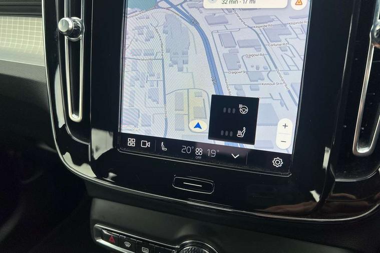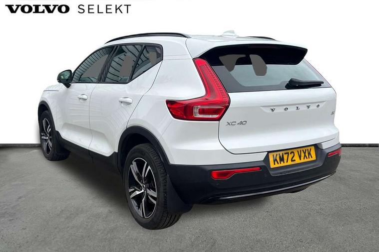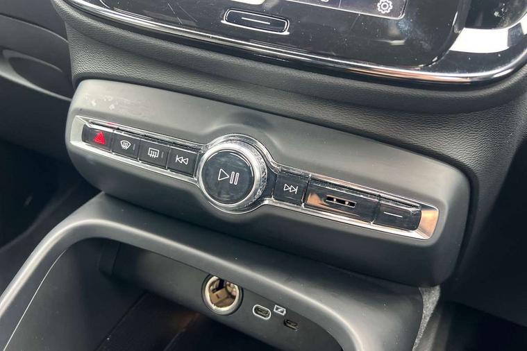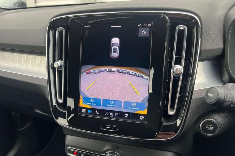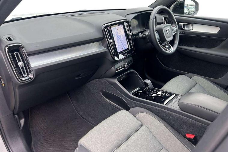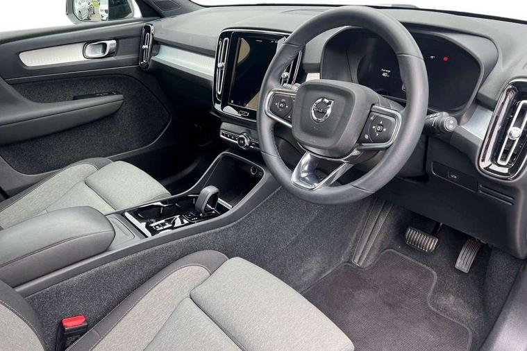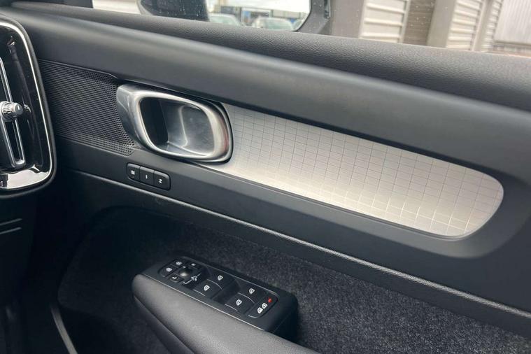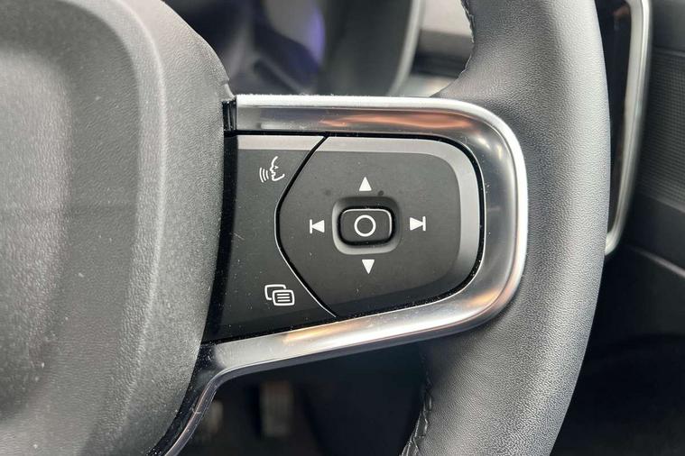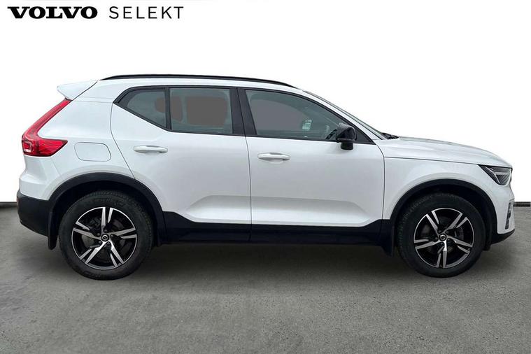 12.3" Progressive Driver Display, 9" centre console portrait touch screen, Adjustable steering wheel force, Bluetooth hands free telephone kit, Cruise control, Driver awareness - blind spot information system with steer assist, cross traffic alert with autobrake, rear collision warning and migitation, E-call, Front park assist, Google automatic services - Nav with google maps, apple carplay/android auto, voice recognition with google assistant, Hands free power tailgate, Lane keep assist with driver alert control, Oncoming Lane Mitigation, Rear park assist, Rear park assist camera, Speed limiter, Speed sensitive steering, Wireless/Inductive Mobile Phone Charging, Dynamic chassis, DAB Digital radio, High performance sound, 8 speakers/250W, front USB and 2 rear type C USB, Steering wheel mounted remote controls, Adaptive brake lights with high level LED brake lights, Auto dimming feature for exterior door mirrors, Auto dimming interior mirror, Automatic headlamp levelling, Automatic LED Headlights + Active high beam incorporating daytime running lights, Front aluminium tread plates, Front and rear electric windows, High gloss black front and rear skid plate, High gloss black mesh front grille with high gloss black surround, High gloss black window trim, Home safe and approach lighting, Integrated roof rails in high gloss black, LED front fog lights, Puddle lights, Rain sensor with automatic windscreen wiper activation, Rear side wing doors, Rear wiper, Roof antenna, Roof spoiler, Visible VIN plate, 12V socket in front tunnel console and luggage compartment, 2-Zone electronic climate control with CleanZone air quality system and pollen filter, 3 seat bench in 2nd row, 3 Spoke tailored steering wheel with chrome trim, 60/40 versatile split folding rear seat, A-pillar parking ticket holder, Ambient front door and instrumental panel lighting, Centre console cupholders and storage, Flexible load floor and grocery bag holder, Floor mats, Front door pocket and front cupholder illumination, Front footwell illumination, Front headrests, Front reading light and theatre lighting, Front seat cushion extensions, Front tunnel pocket, Glovebox bag hook, Heated front seats, Height adjustable passenger seat, Height/reach adjustable steering column, High gloss centre tunnel deco, Illuminated glovebox, Illuminated luggage compartment, Illuminated tailgate, Illuminated vanity mirrors, Integrated waste bin, Isofix attachments on outer rear seats, Load protection net, Multi directional lumbar support, Power driver seat with memory + exterior mirrors memory, Rear armrest / integral cup holders / storage tray, Rear headrests, Rear reading and courtesy lights, Single front passenger seat, Underfloor cargo storage, Climate pack without heated front seats - XC40, 3x3 point rear seatbelts, City safety with steering support with Pedestrian + cyclist + front collision warning with full auto brake and rear auto brake, Drivers knee airbag, Dual stage driver/passenger airbags, Electronic parking brake with auto hold, First aid kit, Front and outer rear seatbelt reminder and pretensioners, Front seats SIPS airbags, Hill descent control, Hill start assist, Inflatable curtain, Passenger airbag cut-off device, Power child locks on rear doors, Road sign information display, Run off Road Mitigation, Run off Road Protection, SIPS (Side Impact Protection System), Slippery road and hazard light alert, Stability and Traction Control with Spin control, Engine Drag Control and Corner Traction Control, Tyre pressure monitoring system, Vehicle deceleration control with Anti-lock Brake System, Electronic Brake Distribution and Emergency Brake Assist, Warning triangle, WHIPS whiplash protection system - front, Anti-theft alarm including immobiliser/volume sensor + level sensor, Key integrated remote control central locking + fuel flap with deadlocking system and auto open/close power windows, Keyless drive includes keyless entry and keyless start, Locking wheel nuts,