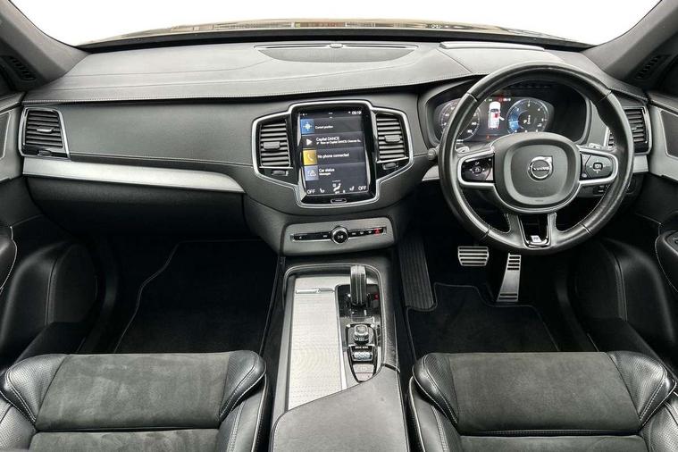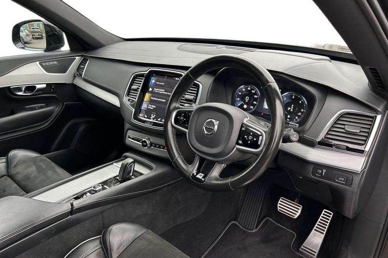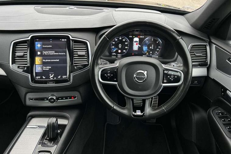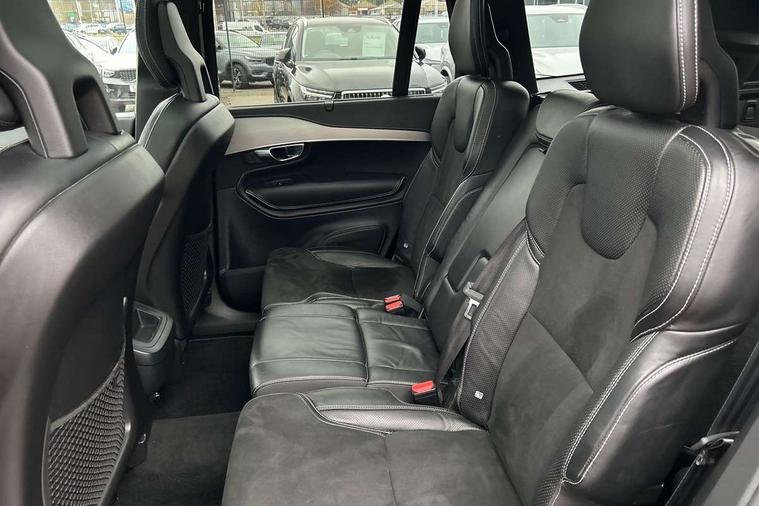 12.3" Active TFT crystal driver's instrument display, 9" centre console portrait touch screen, Adjustable steering wheel force, Bluetooth hands free telephone connection, Drive mode settings, Driver alert control with lane keeping aid, Front and rear park assist, Handsfree power tailgate opening and closing, Intellisafe assist - Adaptive cruise control with pilot assist, Oncoming Lane Mitigation, Sensus navigation with European mapping and traffic information, Service interval indicator, Speed limiter, Speed sensitive steering, Trip computer, Voice activated control for key functions, Volvo on call, Wireless internet connection, 8 speed automatic transmission with start/stop + manual change functions, Active four C chassis - four corner adaptive dampers with electronic air suspension, All wheel drive system, Touring chassis, DAB Radio (Digital Audio Broadcasting), Steering wheel audio controls, Steering wheel remote infotainment controls, Active bending headlights with adaptive shadow technology, Adaptive brake lights with high level LED brake lights, Auto dimming interior + exterior mirrors, Automatic headlight levelling system, Automatic LED Headlights + Active high beam incorporating daytime running lights, Body colour bumpers, Colour coordinated auto folding and heated power door mirrors, Dark tinted windows for rear side windows and cargo area, Dual integrated exhaust pipes with high gloss black surround, Front and rear power windows, Front LED fog lights with cornering function, High gloss black Deco lower front bumper, High gloss black door mirrors, High gloss black mesh front grille with silk metal surround, High gloss black window surround, Home safe and approach lighting, Integrated roof rails in high gloss black, Puddle lights, Rain sensor with automatic windscreen wiper activation, Rear wash/wipe with intermittent wipe setting, Roof antenna, Roof spoiler, Visible VIN plate, 2nd Row centre armrest with storage and cupholders, 3 spoke leather steering wheel and illuminated gear knob with chrome trim, A-pillar parking ticket holder, B Pillar ventilation, Bright metal luggage threshold, Cargo divider with grocery bag holder, Centre console cupholders and storage, Driver's side lower dashboard storage compartment, Front and rear door pocket and front cupholder illumination, Front footwell and side step illumination, Front headrests, Front seat cushion extensions, Heated front seats, Height/reach adjustable steering column, Illuminated front and rear R-Design tread plates, Illuminated luggage compartment, Illuminated tailgate, Illuminated vanity mirrors + ticket holder, Illumination lockable glovebox compartment, Load protection net, Multicolour theatre lighting, Nappa Leather Key Integrated Remote, Outboard armrest with cupholder and storage for third row passengers, Passenger seat electric height adjuster, Passenger seat lumbar support, Power driver seat with multi directional lumbar support and memory for seat and exterior mirrors, Rear footwell and side step illumination, Rear headrests, Semi automatic load cover, Sports floor mats, Sports leather gear knob, Sports pedals, Sports steering wheel with gear shift paddles, Three 2nd row individual folding passenger seats with fore/aft adjustment, Two 3rd row individual folding passenger seats, Underfloor cargo storage, 7 three point seatbelts, City safety includes pedestrian, cyclist and large animal detection and front collision warning with full auto brake, Drivers knee airbag, Dual stage driver/passenger airbags, First aid kit, Front and rear curtain airbags, Front seat side impact airbags, Front seats SIPS airbags, Hill descent control, Hill start assist, IC (Inflatable Curtains) - Full Length, Passenger airbag cut-off switch, Power parking brake with auto hold function, Run off Road Mitigation, Run off Road Protection, Seatbelt reminder and pretensioners for all seats, SIPS (Side Impact Protection System), Slippery road and hazard light alert, Stability and Traction Control with Spin control, Engine Drag Control and Corner Traction Control, Tyre pressure monitoring system, Vehicle deceleration control with Anti-lock Brake System, Electronic Brake Distribution and Emergency Brake Assist, Warning triangle, WHIPS whiplash protection system - front, Anti-theft alarm including immobiliser/volume sensor + level sensor, Key integrated remote control central locking + fuel flap with deadlocking system and auto open/close power windows, Keyless drive (includes keyless entry and keyless start) with remote tag, Locking wheel nuts, Private locking for glovebox and tailgate, Tailored Instrument Panel and Door Tops with Contrast Stitching, Tempa spare wheel and jack,