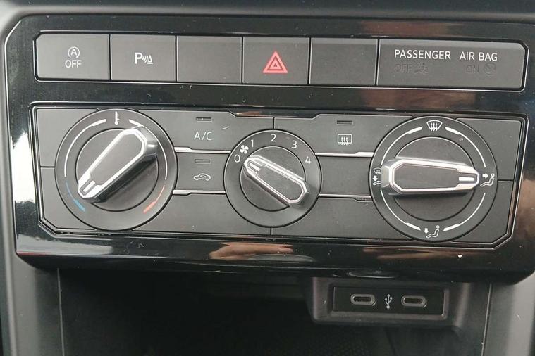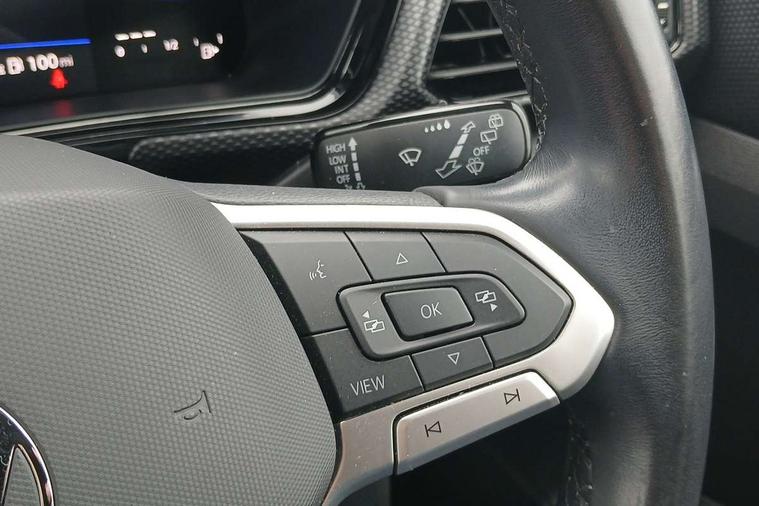'Lights On' Reminder warning buzzer, Adaptive cruise control including front assist, forward collision warning, autonomous emergency braking, speed limiter, Blind spot monitoring, Bluetooth telephone and audio connection for compatible devices, Car information display, Digital cockpit, Driver alert system, eCall emergency call system, Lane assist, Low washer fluid warning light, Multifunction computer with visual gear change recommendation for fuel consumption, Operating permit alteration, Power assisted speed sensitive steering, Speedo, rev counter, electronic odometer, trip, service interval display, exterior temperature and fuel gauge, Stop/start system, Warning sound and light for doors and tailgate open, Warning sound and light for front seatbelts unfastened, We Connect Go Dongle, Wireless Car net app connect with Apple CarPlay, combined functionality of Apple CarPlay/Android Auto and MirrorLink, Battery regeneration during braking, Misfuel prevention device, 2x USB connection with USB charging sockets and in rear centre console, DAB Digital radio receiver, Diversity antenna for FM reception, Multi device interface (MDI) with USB connection, Music playback - MP3, WMA and AAC files, Premium USB cable for Apple or Android smartphone compatibility, Simultaneous pairing of 2 compatible mobile devices, Title and cover art display, Automatic hazard lights activation under emergency braking, Black roof rails, Body colour door handles, Body colour door mirrors with integrated indicators, Body coloured bumpers, Dusk sensor + automatic driving lights, Electrically foldable, adjustable and heated door mirrors with reverse activated kerb view adjustment on passenger's side, Front and rear electric windows, Front fog lights with static cornering function, Galvanised body, Heated rear window, LED third brake light, Lower door sills and door pillars in black, Radiator grille with high gloss surface and chrome strip, Rear fog light on one side, reversing light on both sides, Rear lights incorporating LED technology, Rear side wing doors, Rear window aerial, Rear windscreen washer and wiper with interval delay, Reflectors in all doors, Tailgate with integrated roof spoiler, Windscreen wipers/ intermittent wipe + 4 position delay, 12V Accessory socket in centre console, 3 rear head restraints and 3 rear three point seat belts with ECE label, 3 seat bench in 2nd row, 60/40 split folding rear seat backrest, Drawer under drivers seat, Driver and front passenger sunvisor with vanity mirror, Driver's sunvisor with ticket holder, Dust and pollen filter, Front and rear reading lights X 2, Front centre armrest with storage compartment, Front seat back storage pockets, Front seats with adjustable lumbar support, Glovebox, Heating and fresh air system with 4 stage blower, Height/reach adjust steering wheel, Instrument lighting white adjustable panel illumination, Interior light with delay, Isofix child seat preparation for 2 rear child seats, Luggage compartment cover, Luggage compartment lighting, Manual air conditioning, Manual front seats with height adjustment, Moveable and foldable Rear bench seat, Single front passenger seat, Storage compartment in drivers and front passengers door, Three spoke multi-function leather trimmed steering wheel and gearknob, Triangle ties/pearl cloth upholstery, Variable boot floor, Anti-lock Braking System (ABS) with Hydraulic Brake Assist (HBA), Automatic post collision braking system, Driver and front passenger safety-optimised head restraints, Drivers and Front Passengers airbags with front passengers airbag deactivation switch, ESC with EDL, ASR, EDTC and trailer stabilisation function, Front and rear curtain airbags, Front disc brakes and rear drum brakes, Front seat side impact airbags, Height-adjustable front three-point seat belts with tensioners, Hill start assist, Pre crash preventive occupant protection, Rear door child safety locks, Rigid safety cell with front and rear crumple zones, Single torn horn, Tyre pressure loss indicator, Volkswagen roadside assistance, Alarm with interior protection and deactivation via infotainment system, Child security locks in rear doors, Electronic engine immobiliser, Remote tailgate unlocking using key fob, Pineapple decorative inserts in dash and doors, 17" Clayton alloy wheels + anti theft wheel bolts, Breakdown kit,