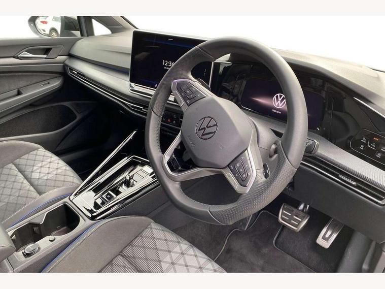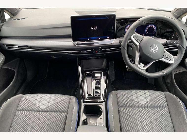 Activated carbon canister, Adaptive cruise control (ACC), Advanced driver attention and drowsiness monitor, Dynamic road sign display, Dynamic steering, E-Sim card for online connectivity, eCall emergency call system, Emergency assist, Lane keeping system Lane Assist, Multi-color Digital cockpit pro, selection of different info profile possible, Multifunction front facing camera for distance control, Navigation system, Oncoming vehicle braking when turning including swerve support, Preparation for light assist system, Speed limiter, Speedo, rev counter, electronic odometer, trip, service interval display, exterior temperature and fuel gauge, Traffic jam assist, Voice enhancer and voice control, Warning signal and warning light for front and rear seatbelts not fastened, We connect plus preparation, We connect preparation, Wireless app connect, Hybrid propulsion system, Petrol Particulate Filter, Start-stop system with battery regeneration (recuperation - energy recovery during braking), XDS electronic differential lock for improved traction and handling, 2 USB C ports in front, 2 USB charging sockets on the centre console in the rear charging capacity upto 45W, Comfort telephony + wireless charging, without wireless aerial connection, Digital radio reception (DAB), Diversity antenna for FM reception, Gaming platform via car app, Infotainment system with 12.9" display, Mobile phone interface with inductive charging feature, 3rd brake light, Auto dimming rear view mirror, Auto headlights, Automatic headlamp activation with Coming home and Leaving home feature, Body colored bumpers in R-Line style, Body colour door handles, Exterior mirrors convex on the left and aspherical on the right, Front and rear electric windows, Heat insulating windshield made of laminated glass, LED daytime running lights, Rain sensor, Rear exhaust tailpipe, Rear fog light on one side and reversing lights on both sides, Rear side wing doors, Rear windscreen washer and wiper with interval delay, Remote electrically foldable door mirrors, puddle lights and reverse activated passenger's door mirror, Volkswagen logo in front, illuminated lighting animation with wake up/goodbye scenario and illuminated door handles, Welcome light with surround lighting, 12V socket in front centre console, 12V socket in luggage compartment, 3 rear head restraints, 3 seat bench in 2nd row, Ambient lighting with 30 colour including LED light unit in front footwell with selectable light colour, Brushed stainless steel pedals, Carpet mats, front and rear, Chrome plated radiator grille inserts, air vent surrounds and light switch surrounds, Front centre armrest, Front seat lumbar support adjuster, Heated front seats, Integrated front head restraints, ISOFIX anchors for child seats on outer rear bench seats and on front passanger seat compatible for i-Size, Luggage compartment lighting, Manual height adjustable front seats, Plastic gear knob, Premium sports seats in front, Rear cupholder and loadthough, Sardegna cloth upholstery with front and outer rear seats Art Velour inner sides of bolsters, Single front passenger seat, Soul black instrument panel, Split folding backrest with centre armrest and unsplit rear seat bench, Storm grey roof lining, Sun visors with illuminated vanity mirrors, Black exterior Styling package with Matrix LED headlights - Golf, Winter package - Golf DSG Estate/Hatchback, 3 point height adj front seatbelts + pretensioners, 3 rear three point seatbelts, ABS, Autonomous emergency braking front assist with pedestrian and cyclist monitoring, Child locks on rear doors, Driver and front passenger airbag with front passenger airbag deactivation, Electronic parking brake with auto hold, ESC (Electronic Stability Control), Extended pedestrian protection measures, Hill start assist, Rear disc brakes, Two tone horn, Tyre pressure loss indicator, Volkswagen roadside assistance, Anti theft wheel bolts, Preparation for alcohol interlock, Decorative inserts carbon grey for dashboard and front door trim panels, 18" Leeds alloy wheels,